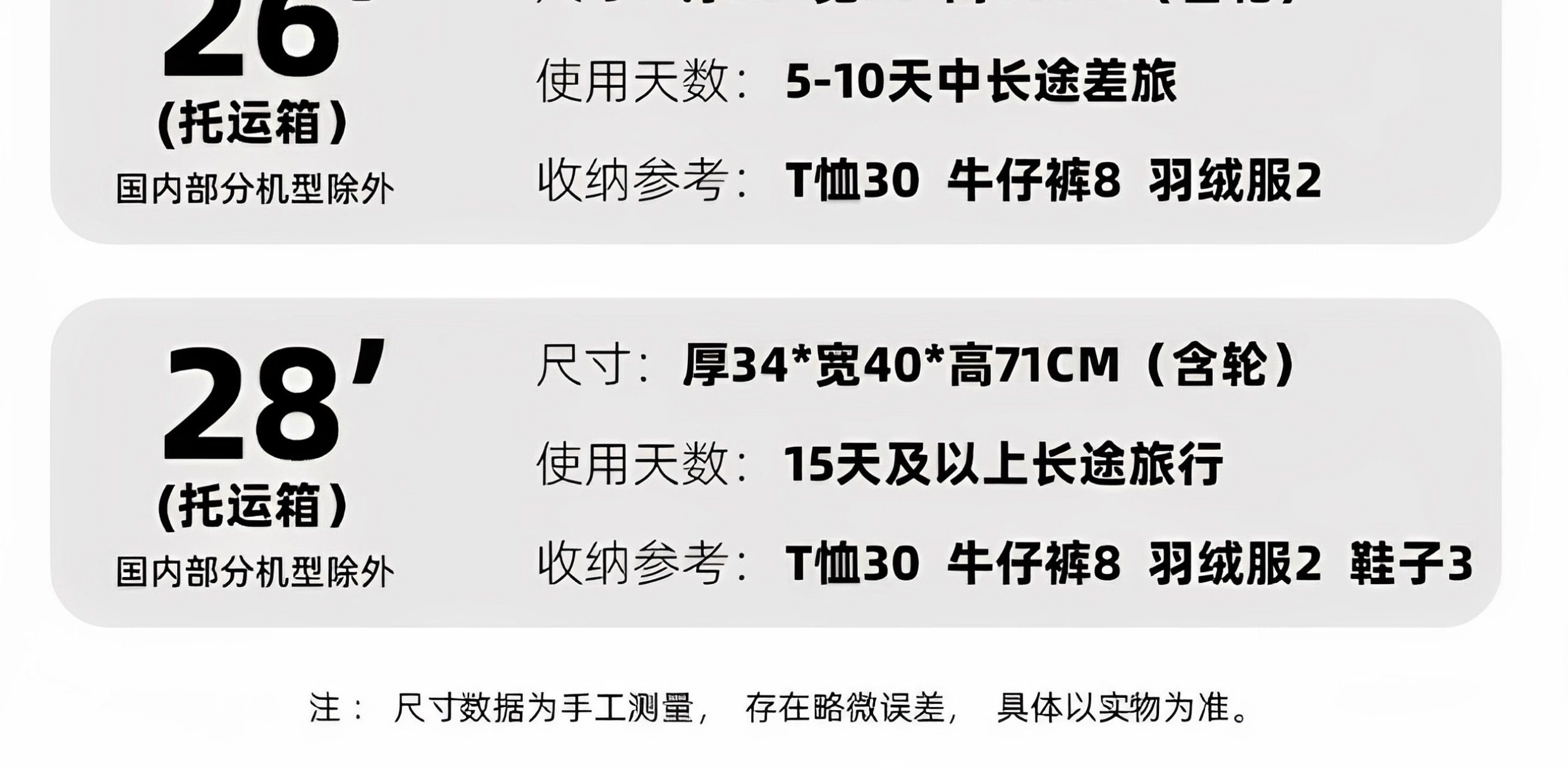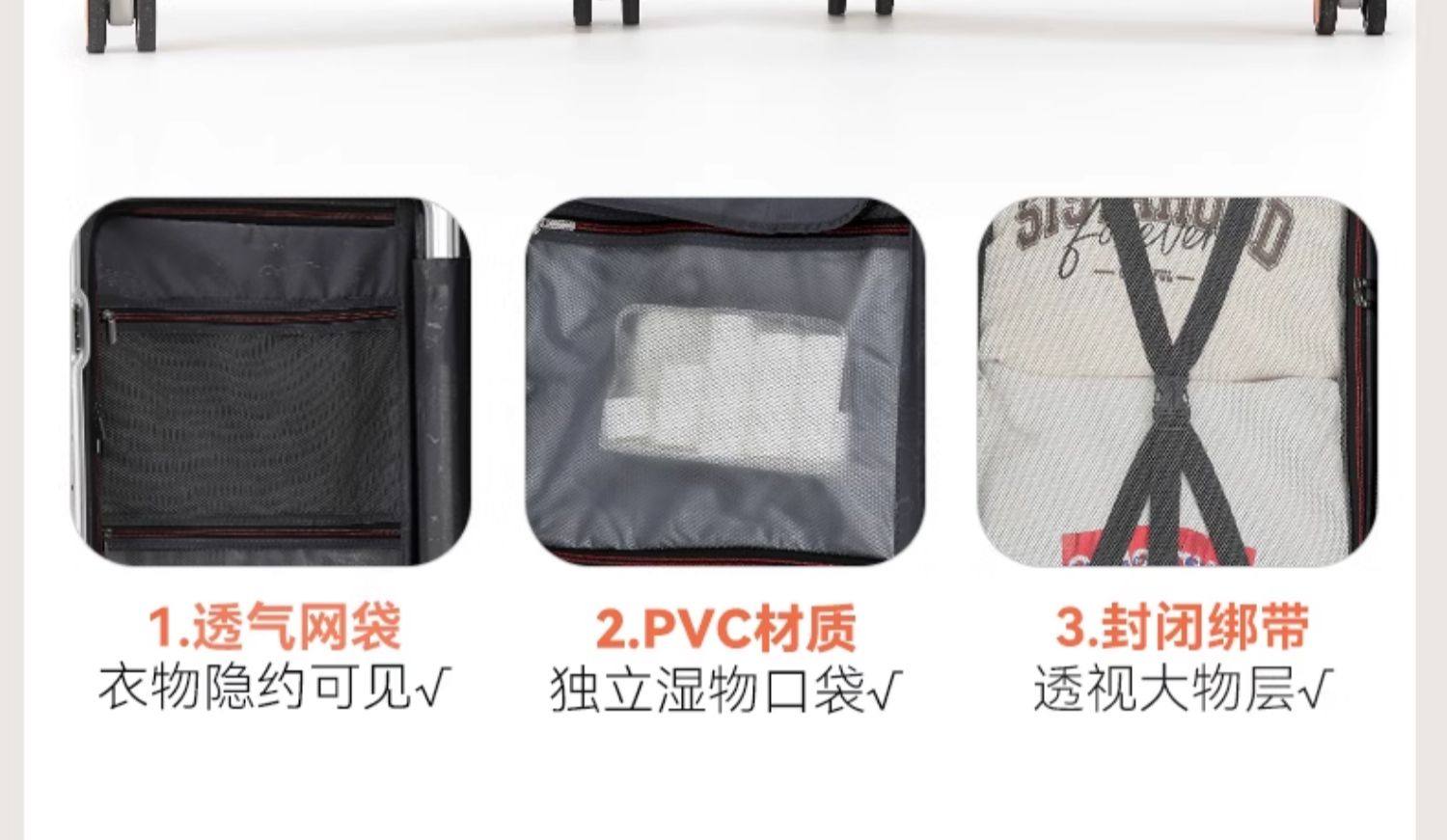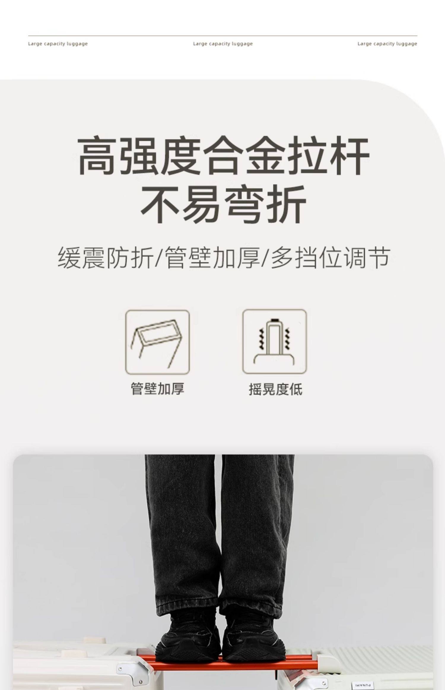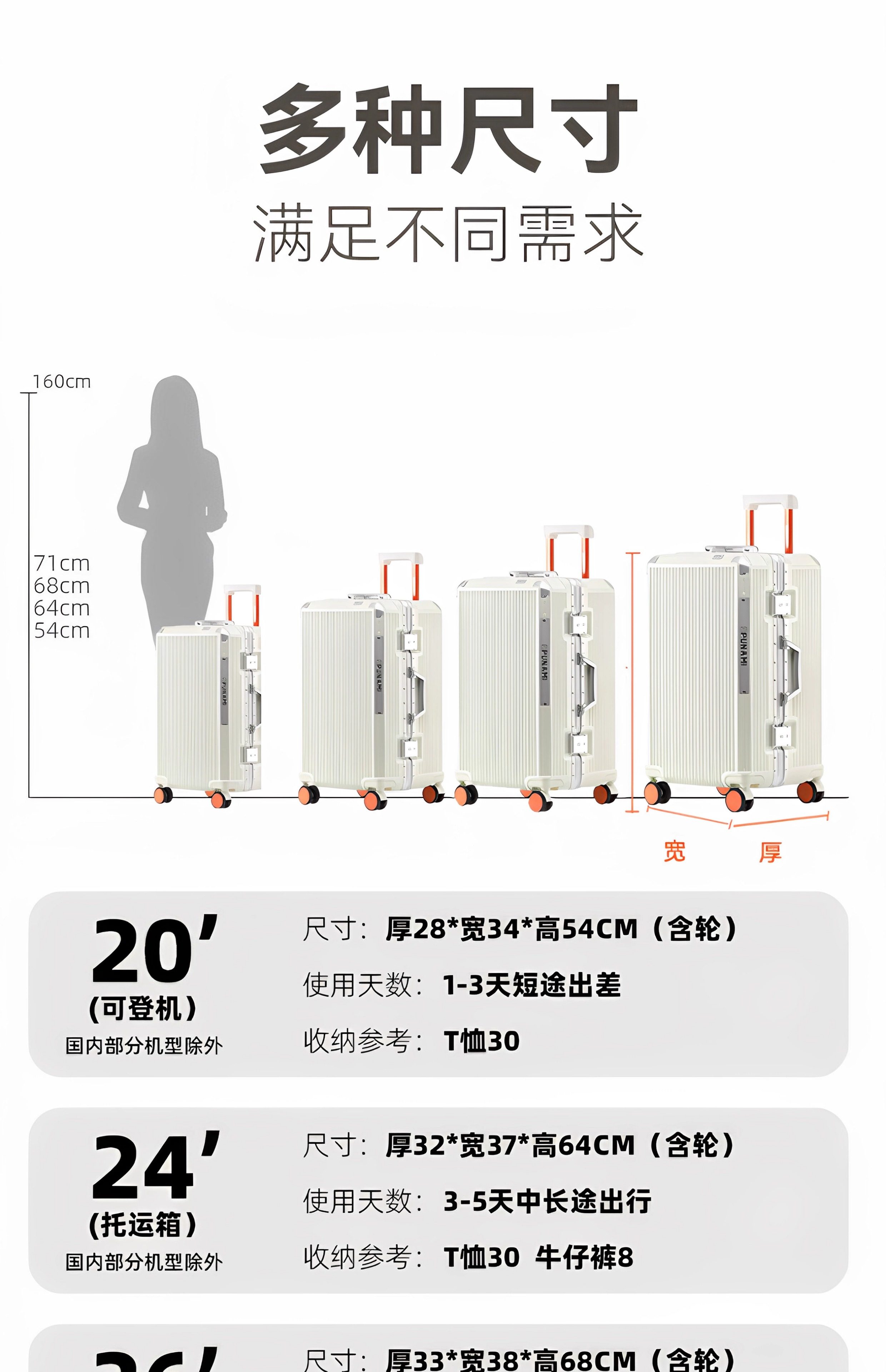 Größe 20 Zoll, 55 Punkte, verdicktes und tiefes Fach für bessere Beladung,24 Zoll, 37 Punkte, verdicktes und tiefes Fach für bessere Beladung,26 Zoll, 37 Punkte, verdicktes und tiefes Fach für bessere Beladung