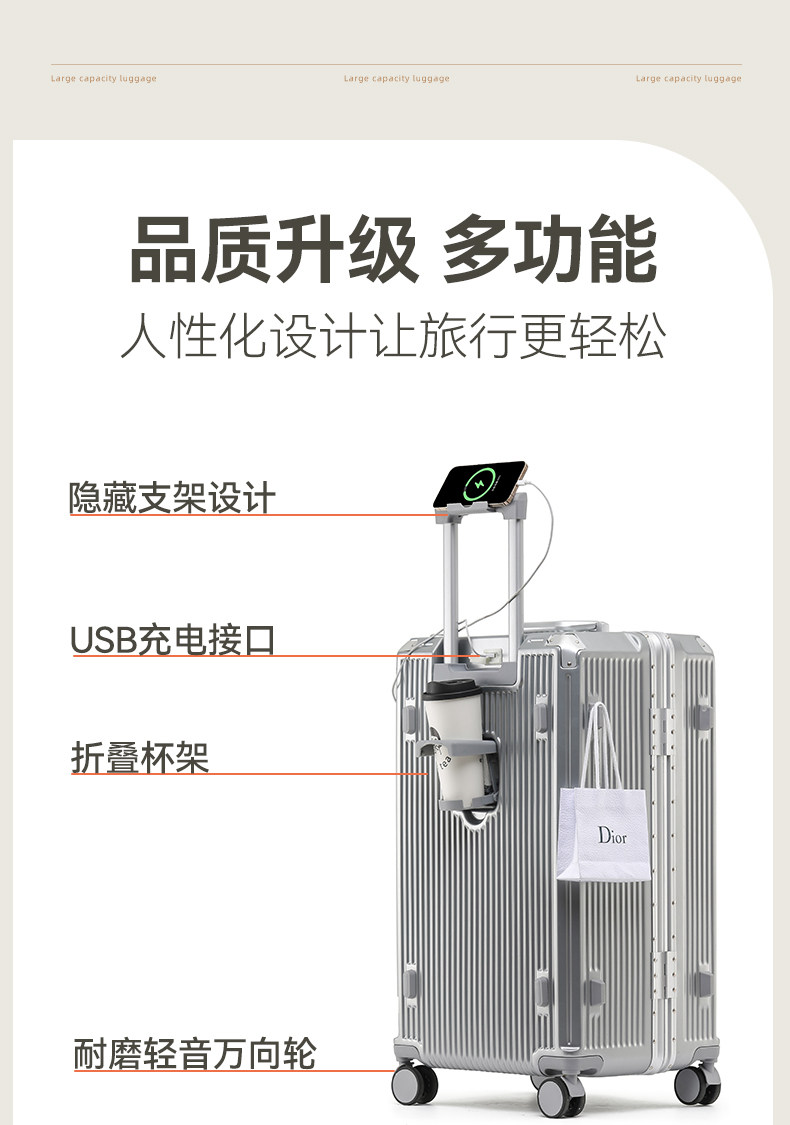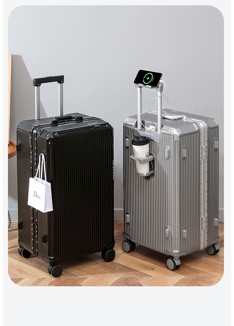 Aluminiumrahmen-Koffer Damen 2025 neuer multifunktionaler 37-Punkt-Koffer, stark und langlebig, Erwachsene können auf dem Trolley-Koffer sitzen