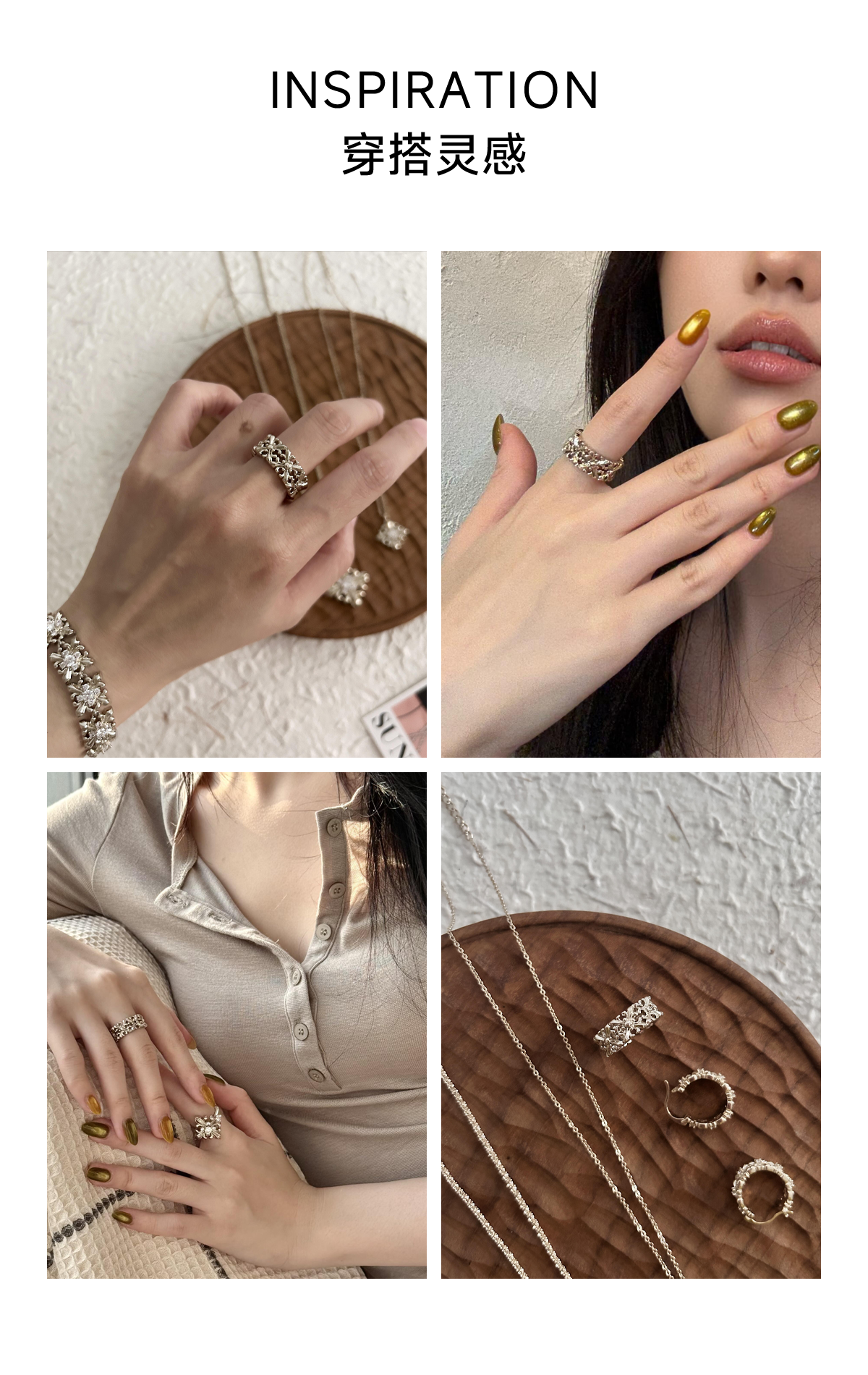 三横SUN HUNTER原创鸢尾花满圈戒指开口复古轻奢美拉德饰品小众女