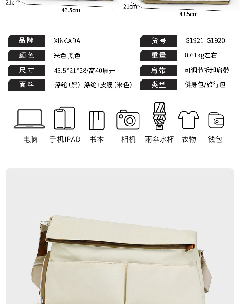 XINCADA Umhängetasche für Damen und Herren, tragbarer Kurzstrecken-Fitness-Rucksack, Trocken- und Nasstrennung, Sporttraining, Umhängetasche