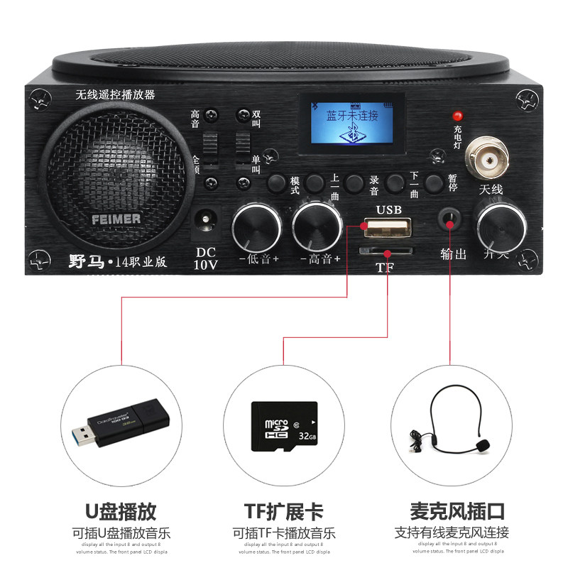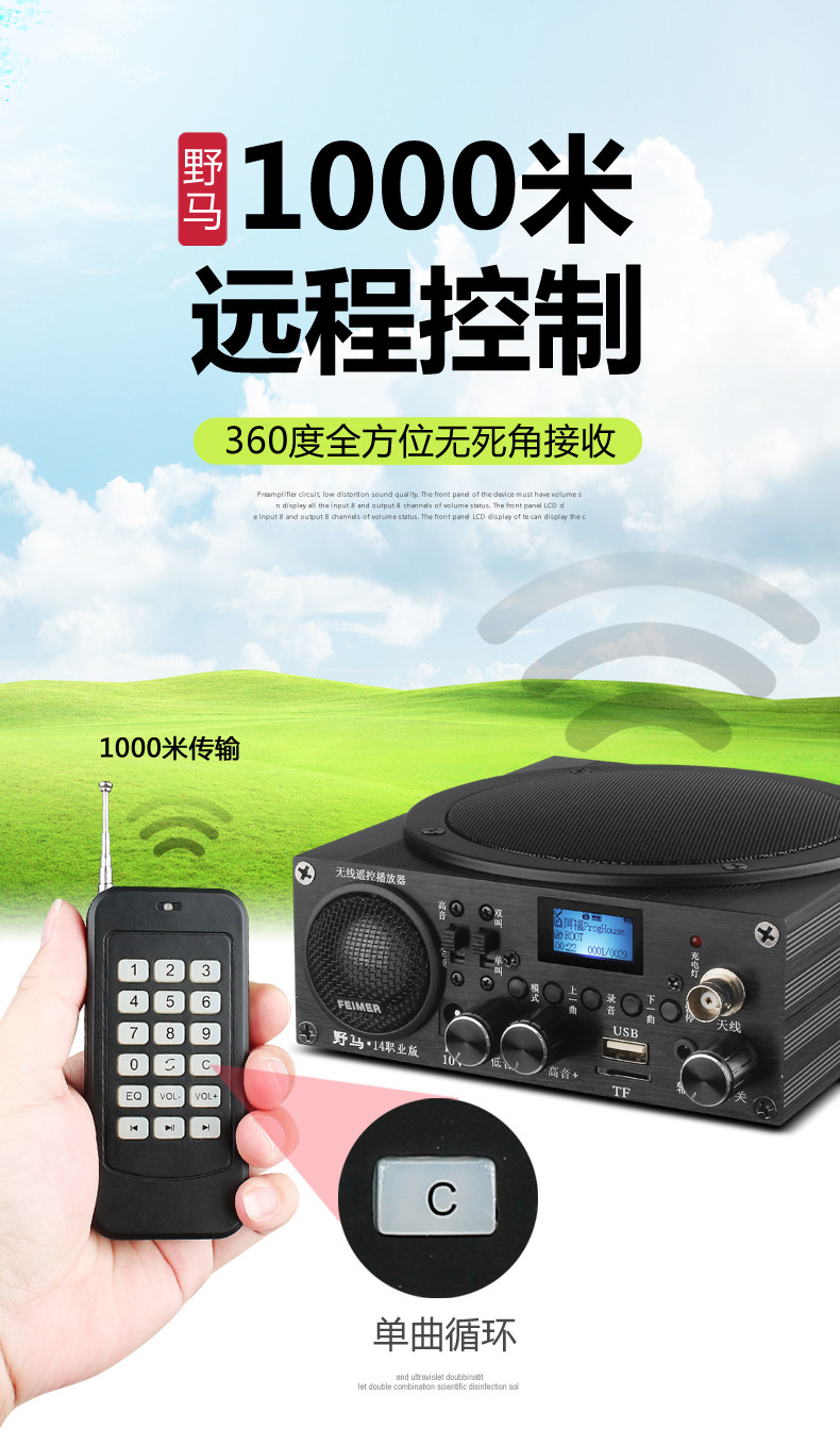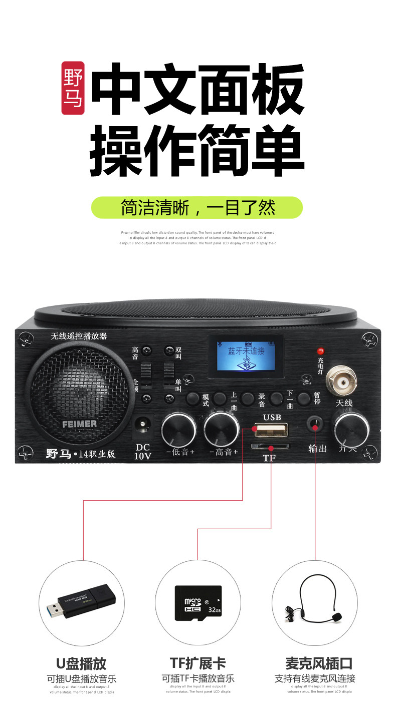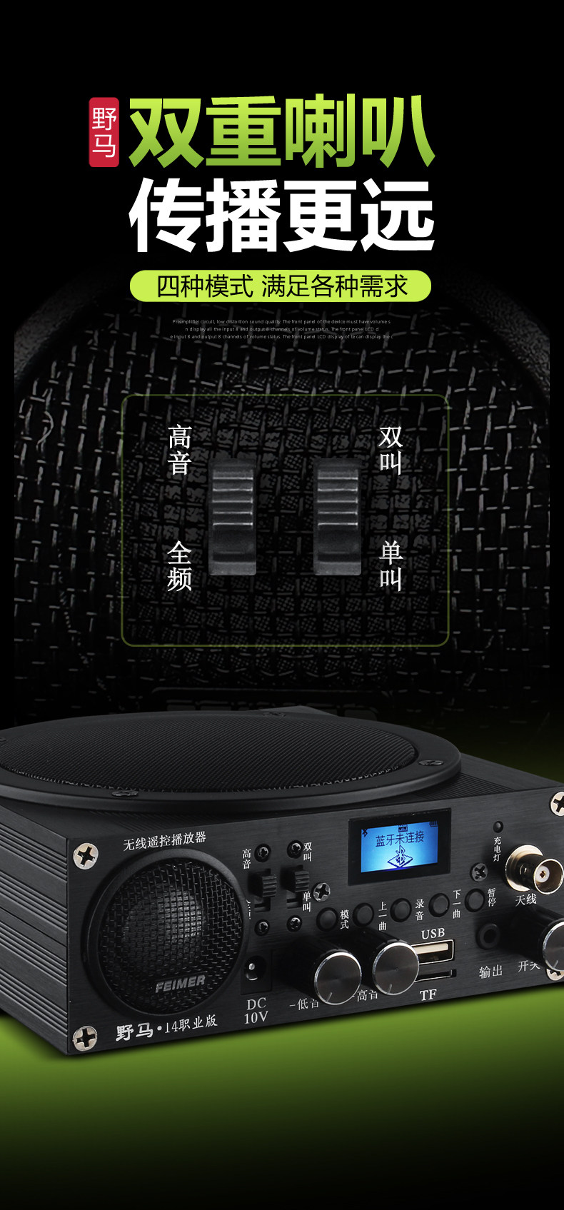 Mustang 14. generation lautsprecher für den außenbereich, hohe lautstärke, kleine stahlkanone, kabellose fernbedienung, 19 a spottdrosselspieler