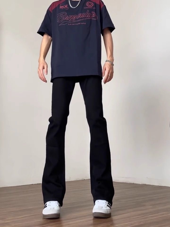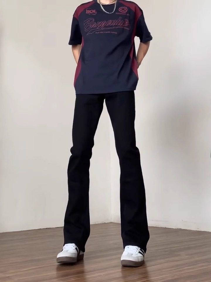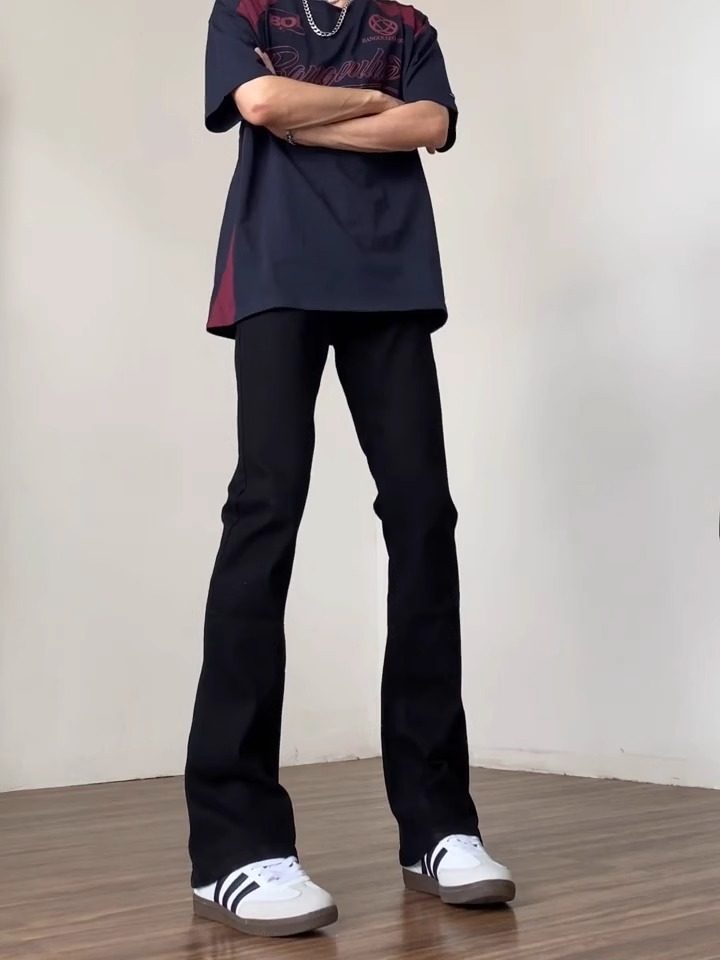 柳叶弯刀牛仔裤男秋冬加绒直筒窄版裤子cleanfit美式显腿长微喇裤