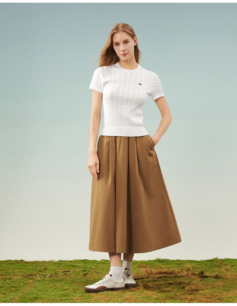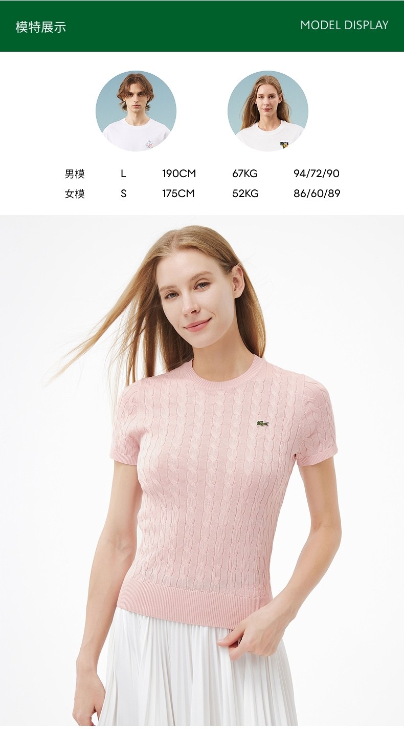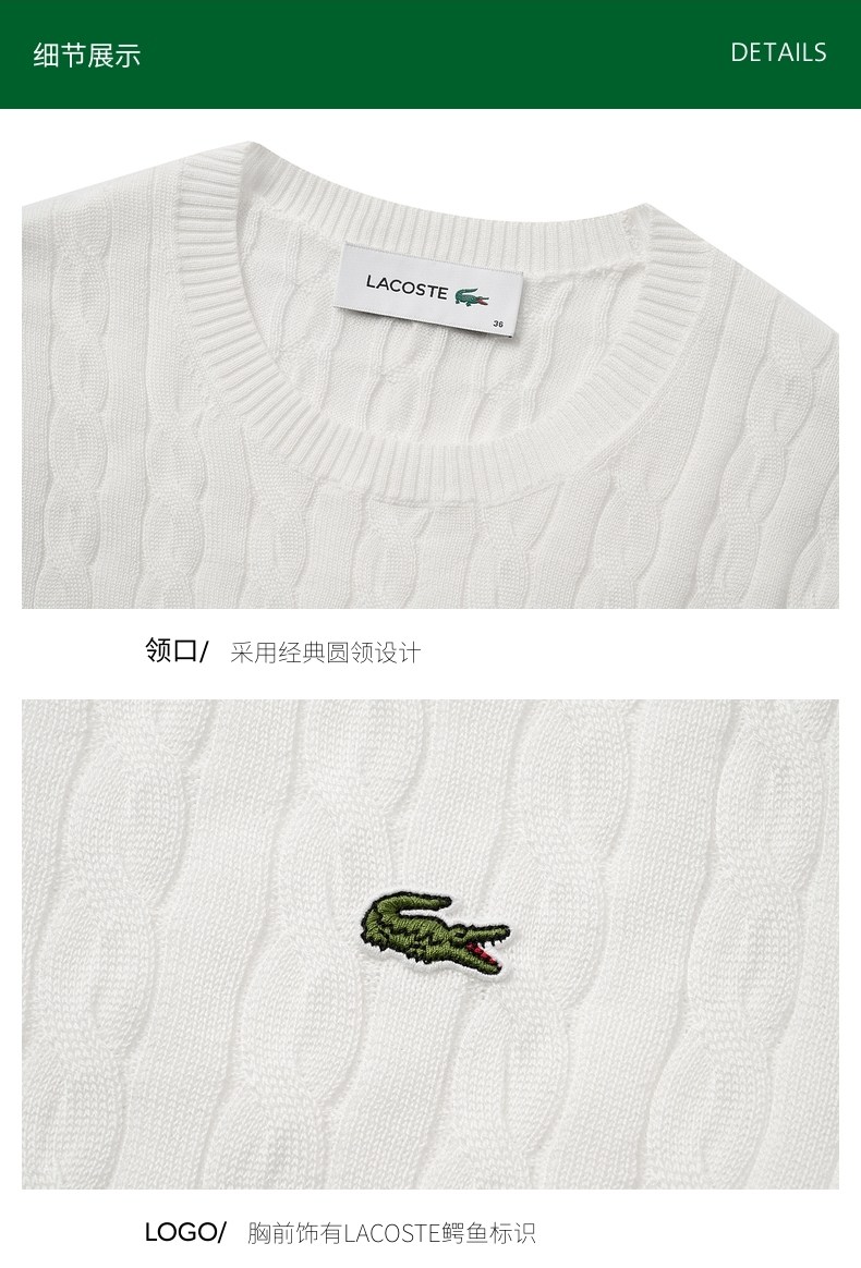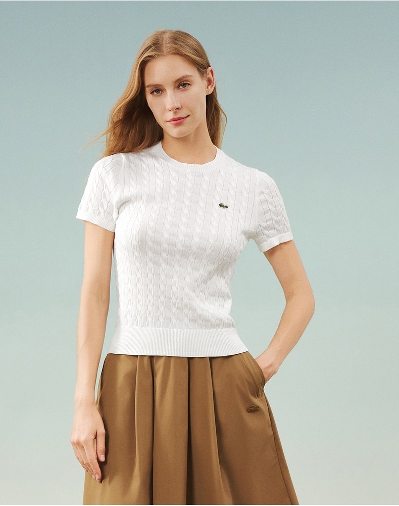 Lacoste French Crocodile Women's Clothing 25 Spring and Summer New Fashion Cable Knit Short-Sleeved Pullover Pure Cotton Sweater | Af7214