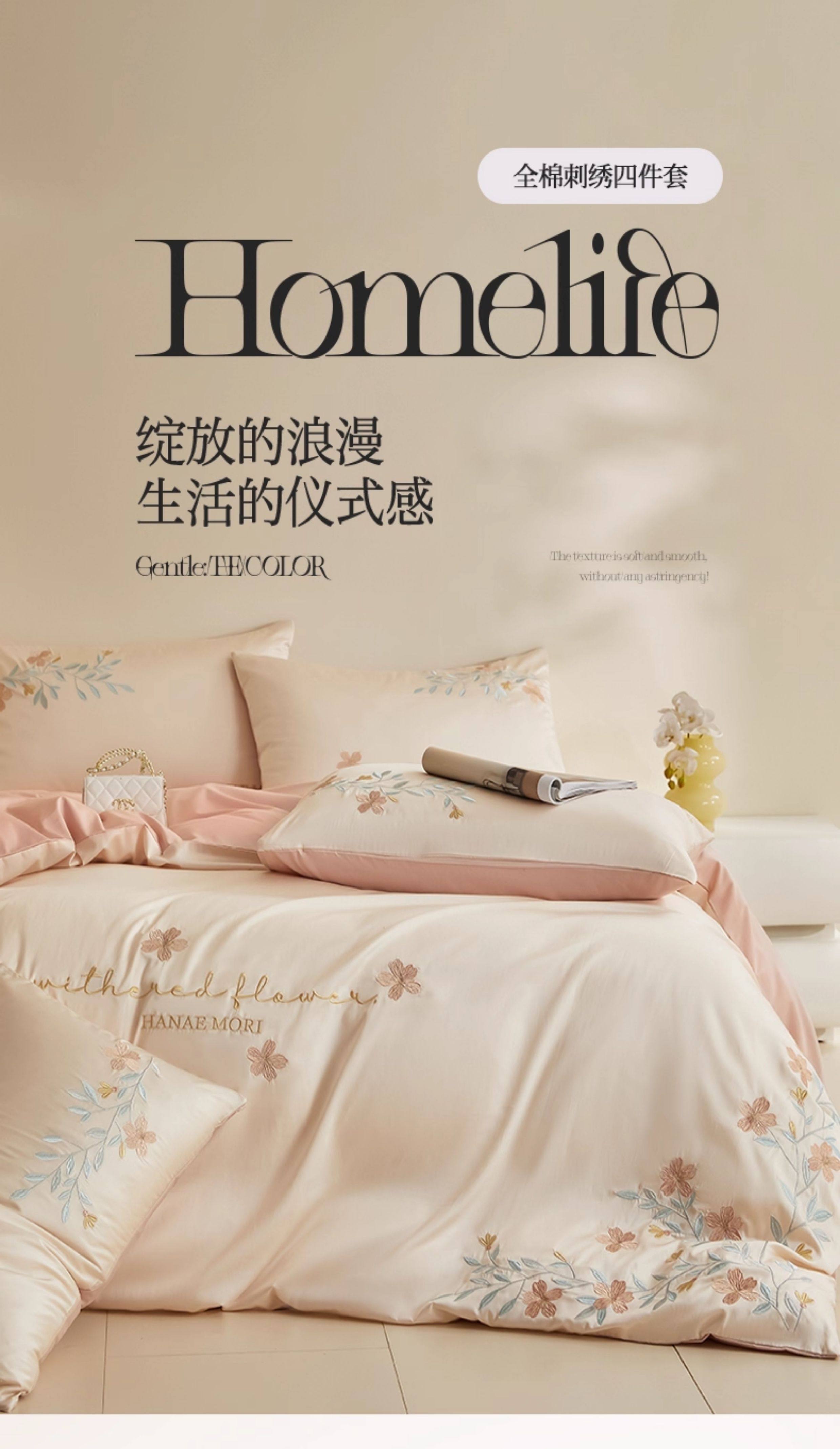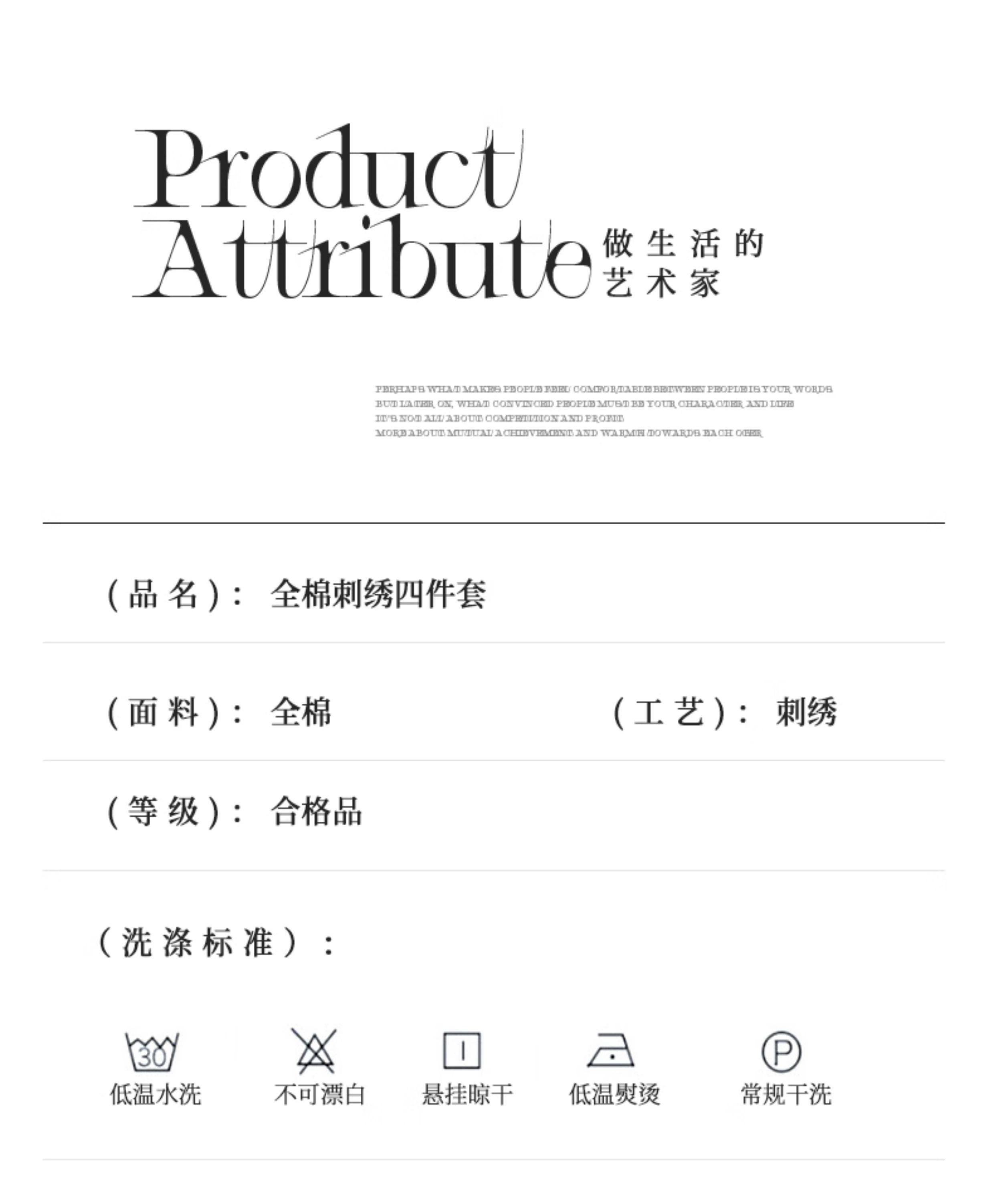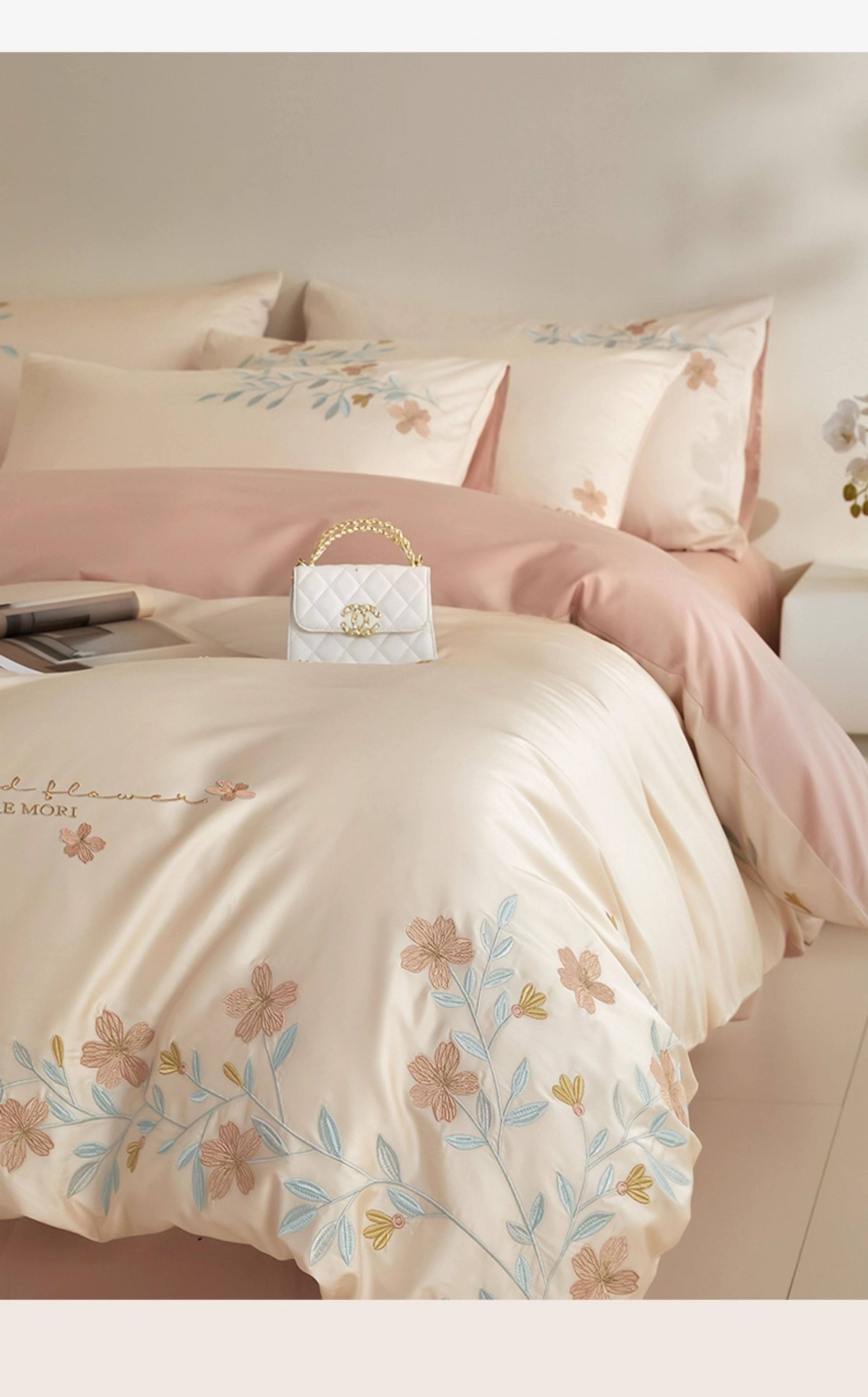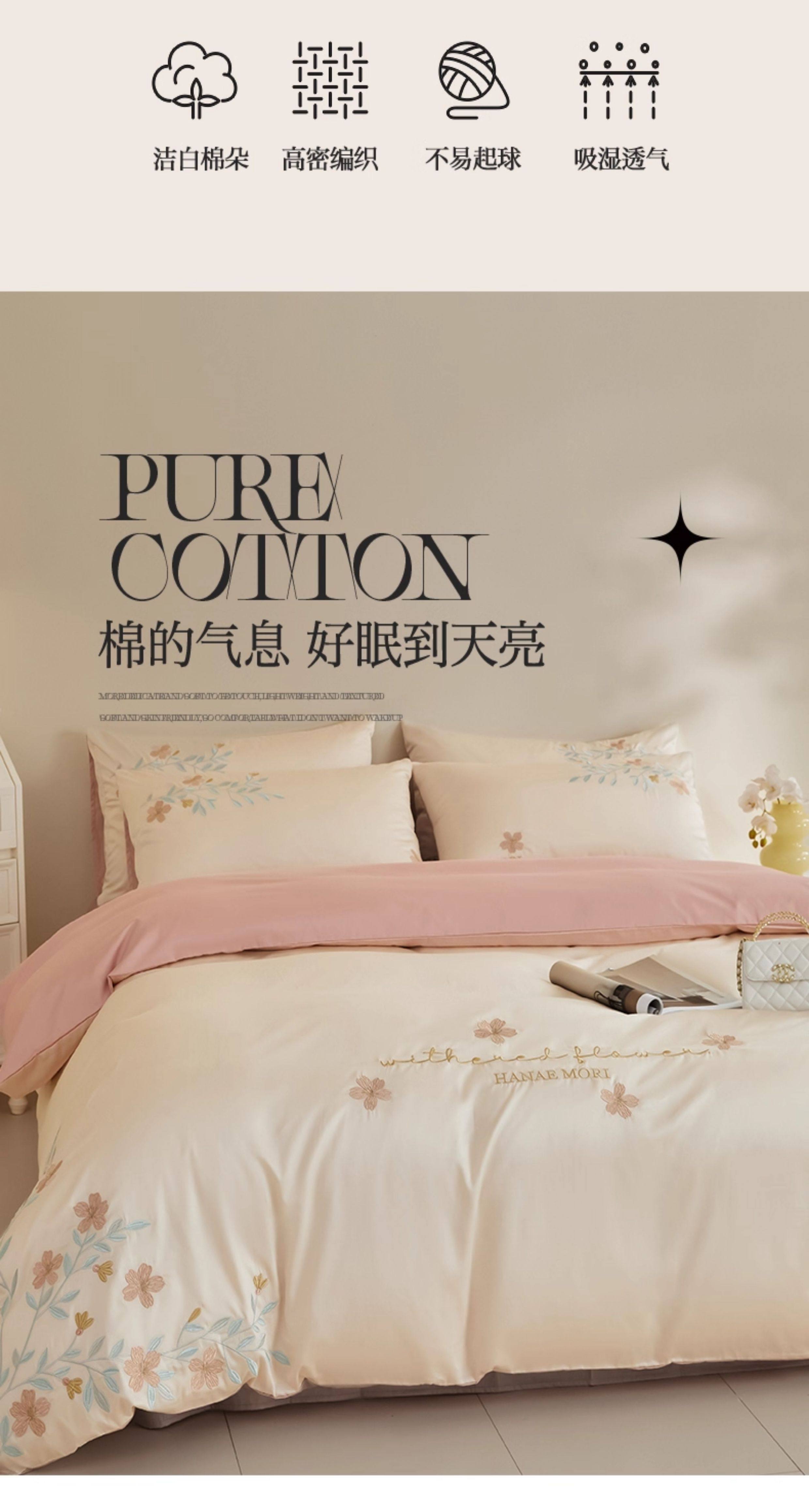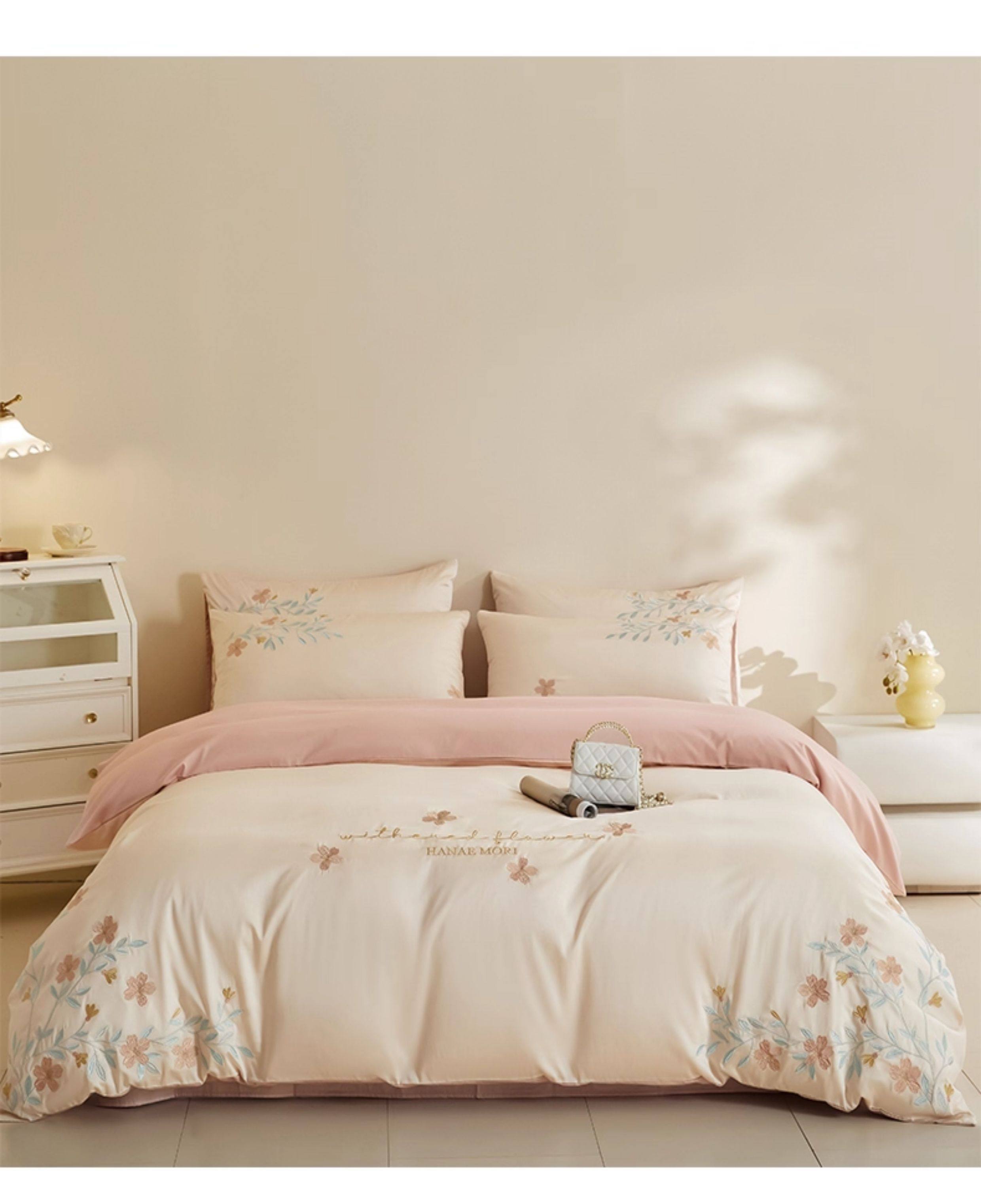 Juego de cuatro piezas de cama de algodón de grapa larga de lujo ligero MUJI, edredón bordado de algodón puro, sábanas, juego de cama de alta gama