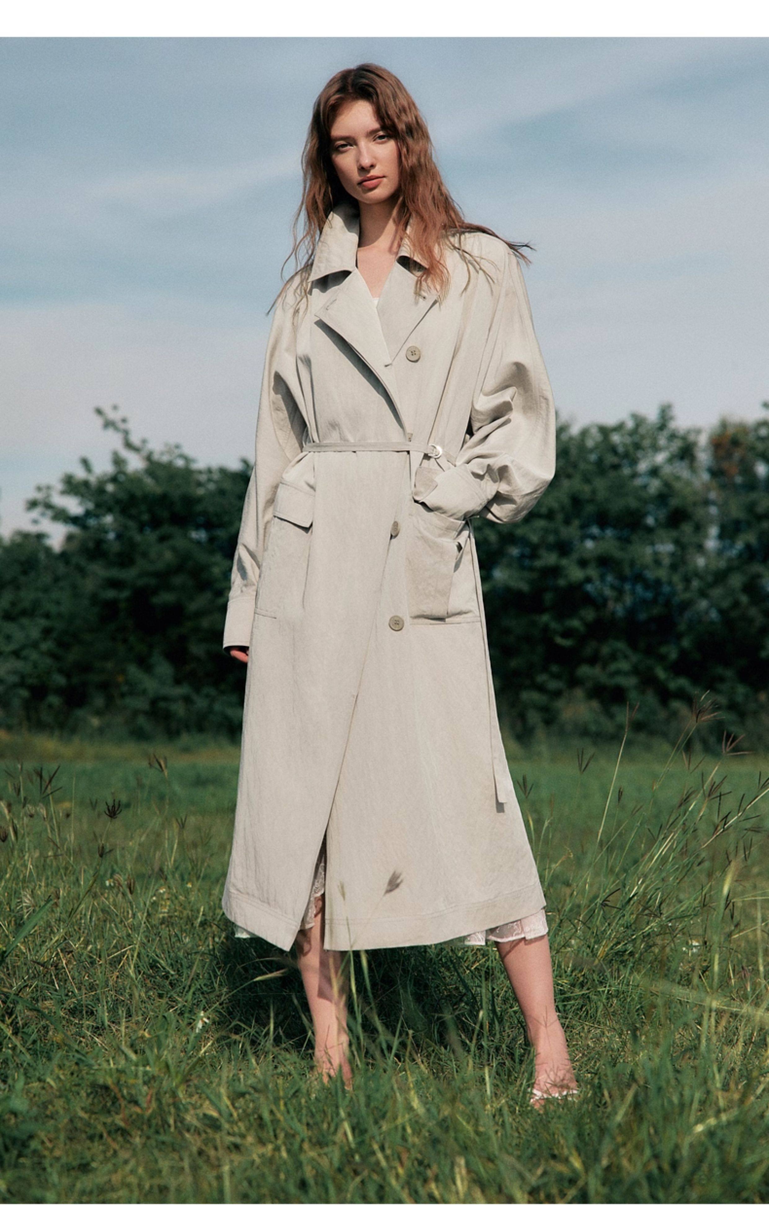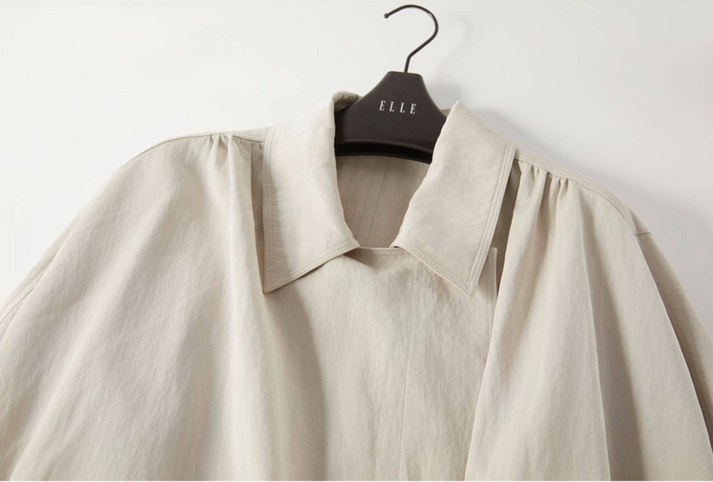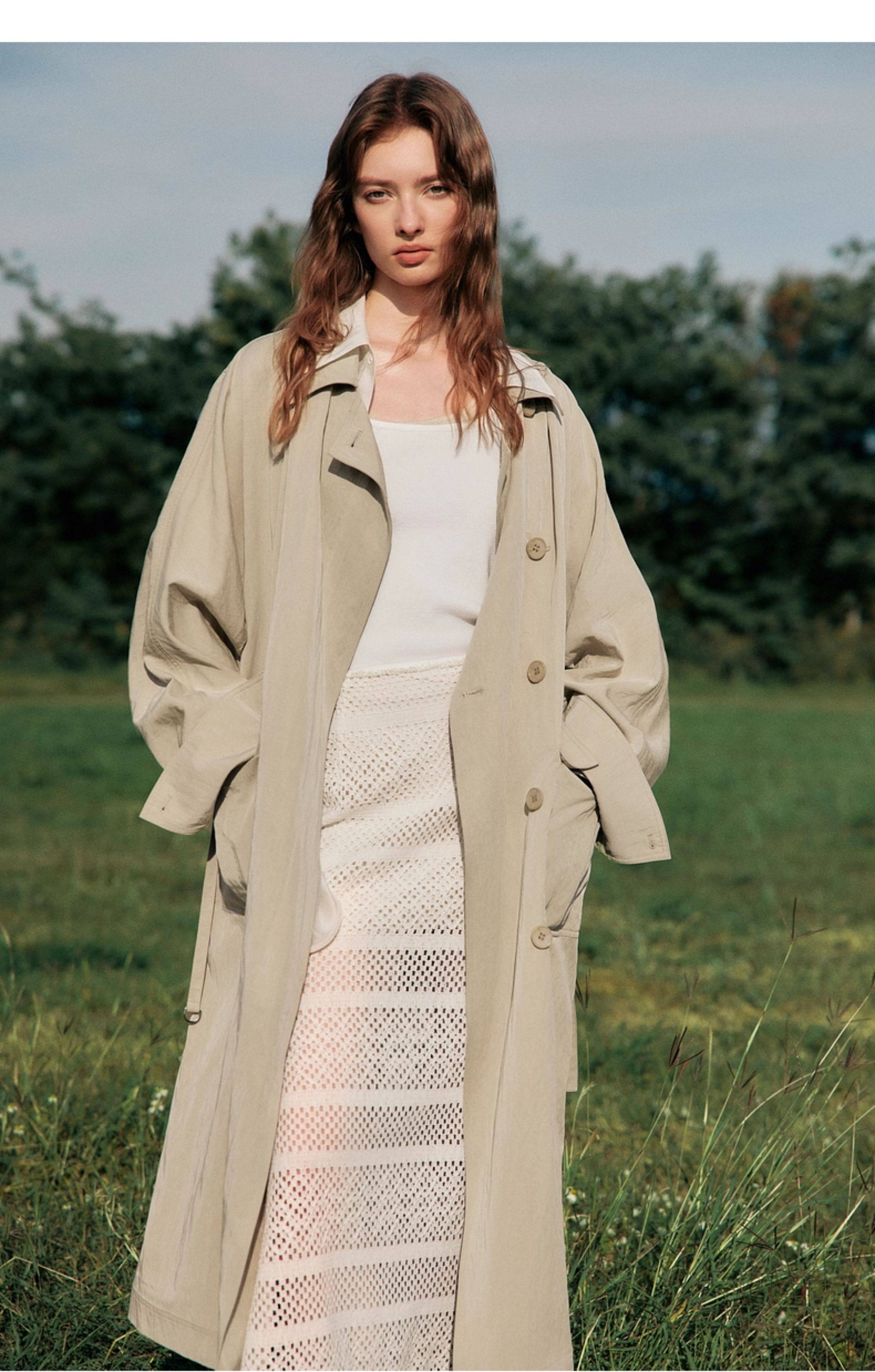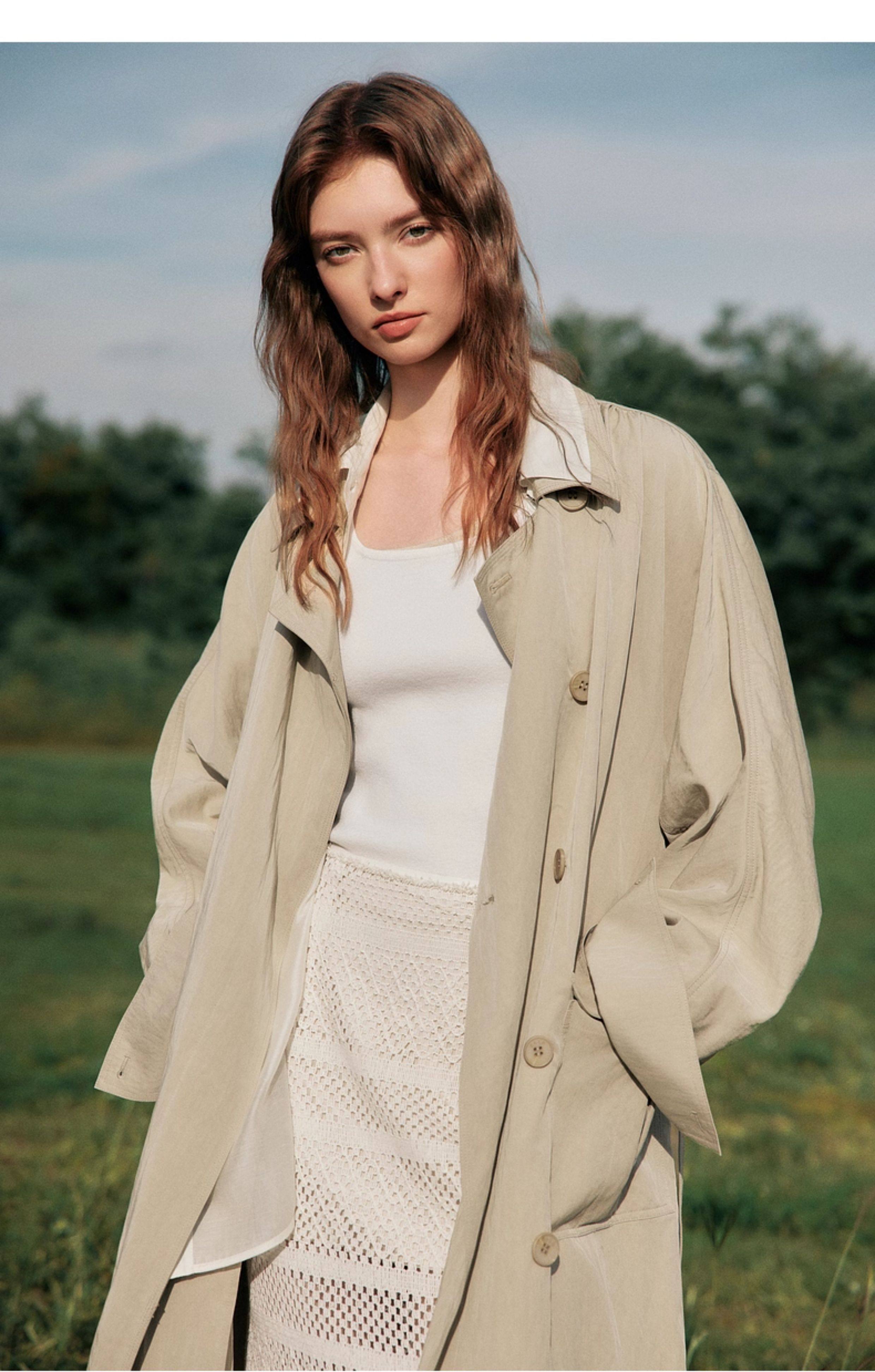 ELLE Lyocell Tencel manga de murciélago cortavientos de solapa larga para mujer 2025 otoño nueva chaqueta de nicho de temperamento Simple
