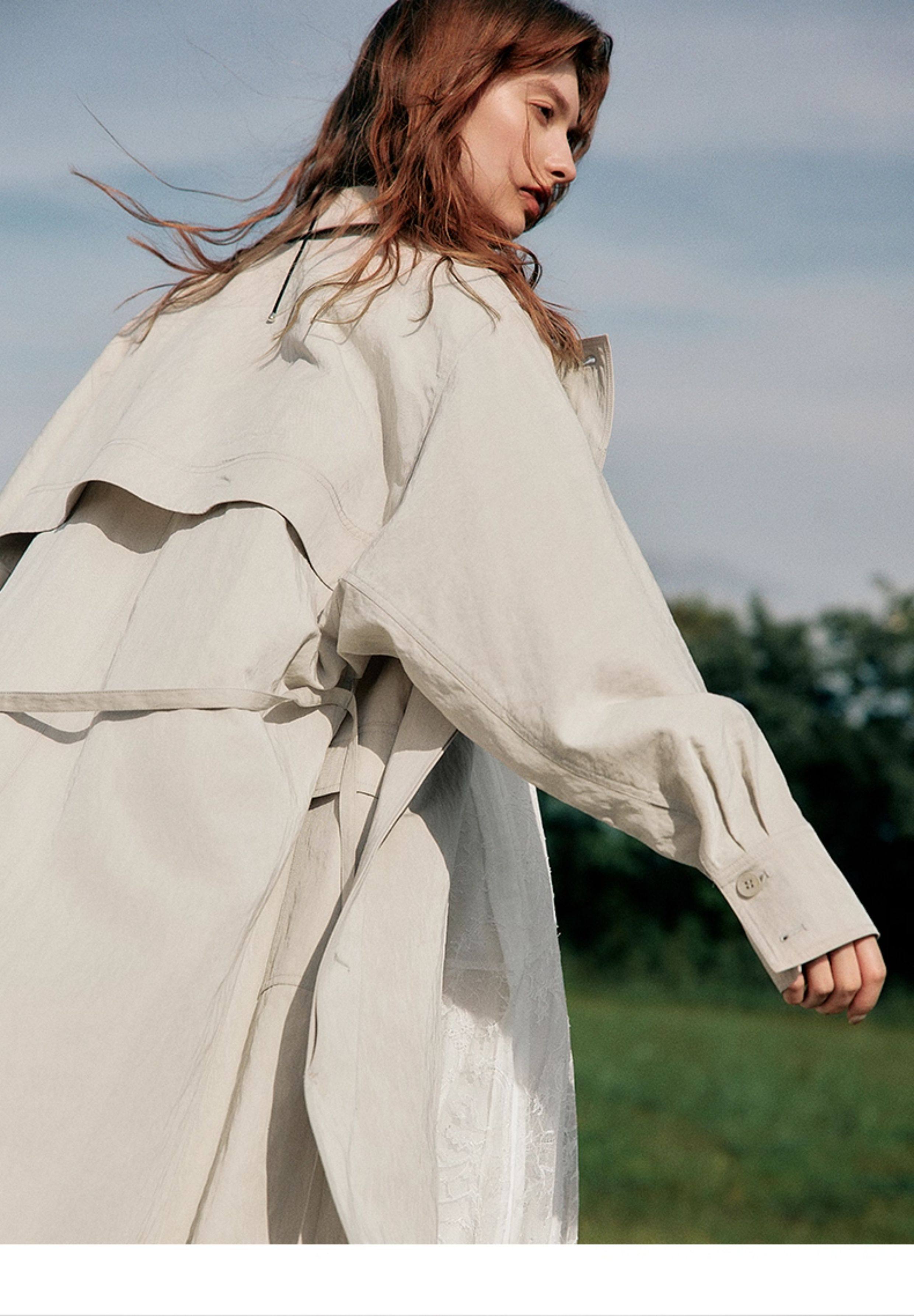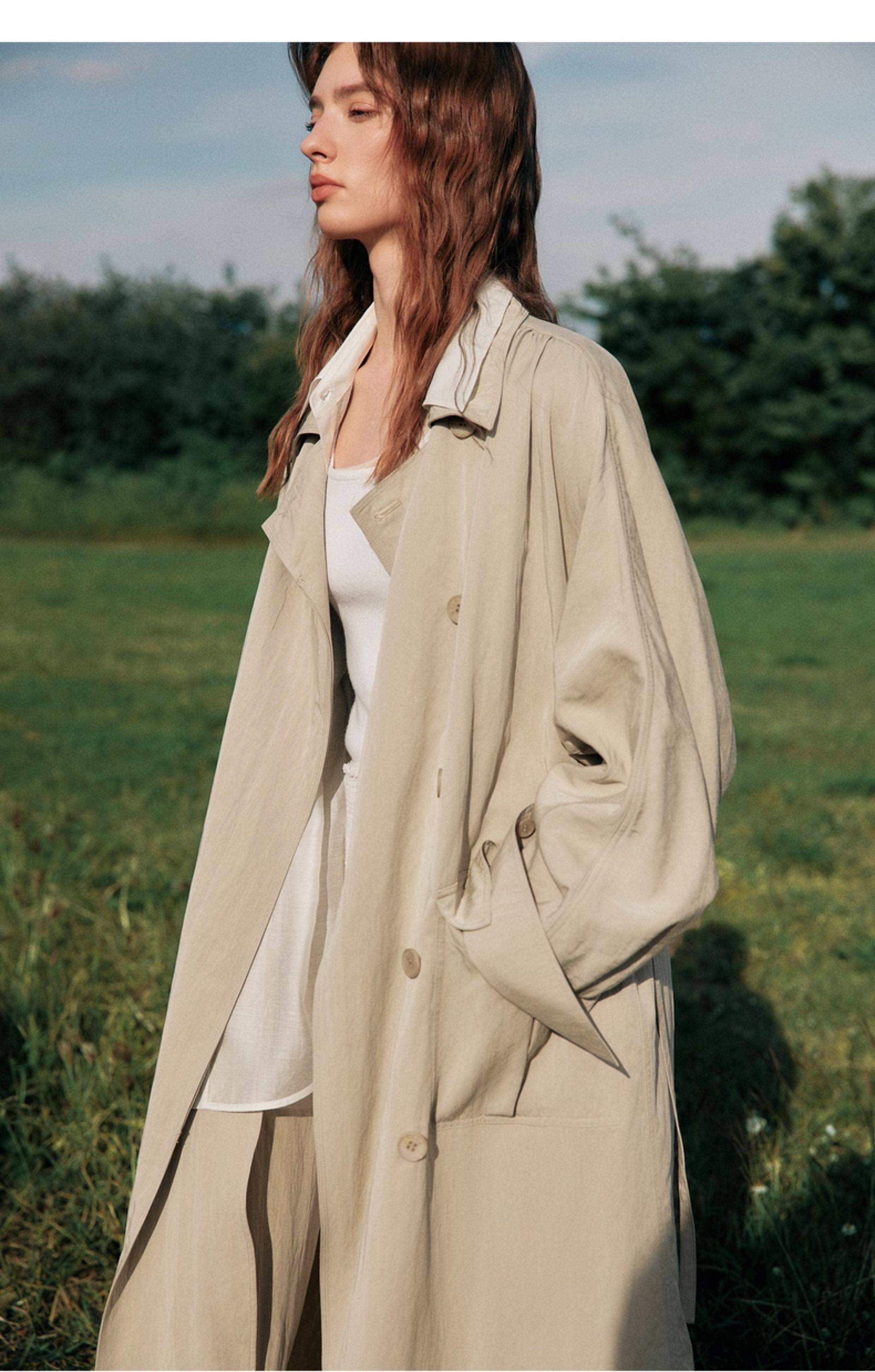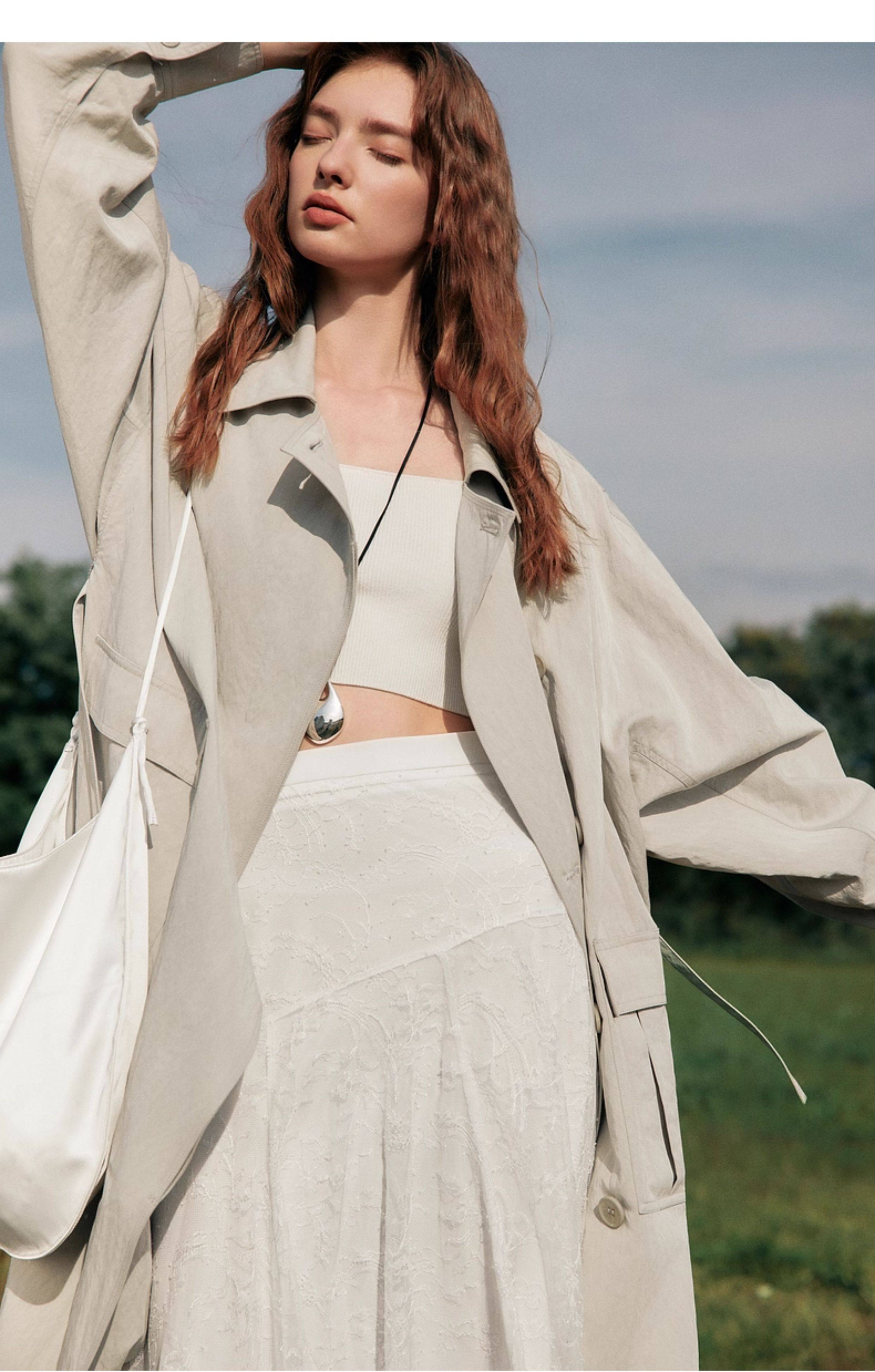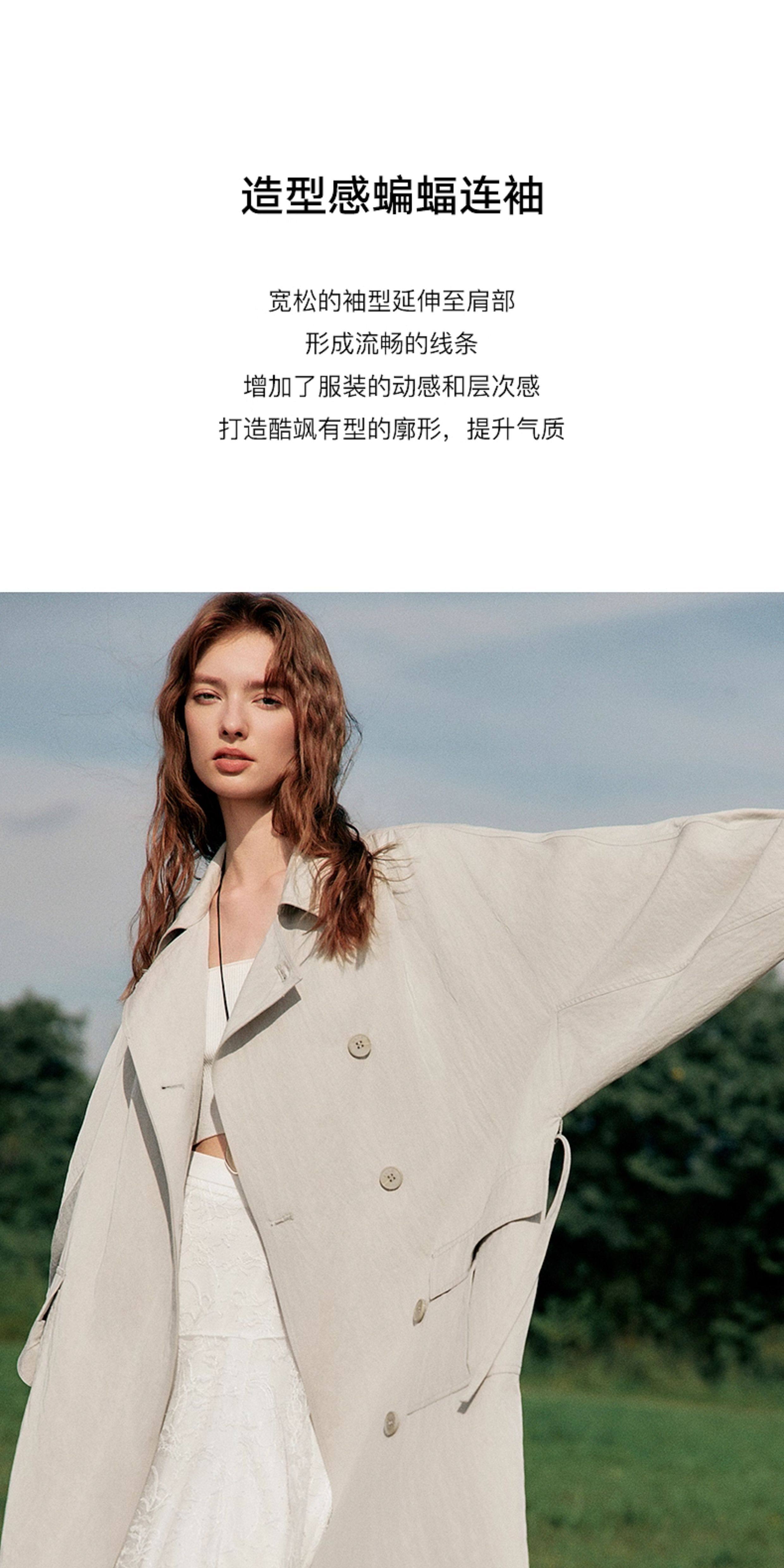 ELLE Lyocell Tencel manga de murciélago cortavientos de solapa larga para mujer 2025 otoño nueva chaqueta de nicho de temperamento Simple