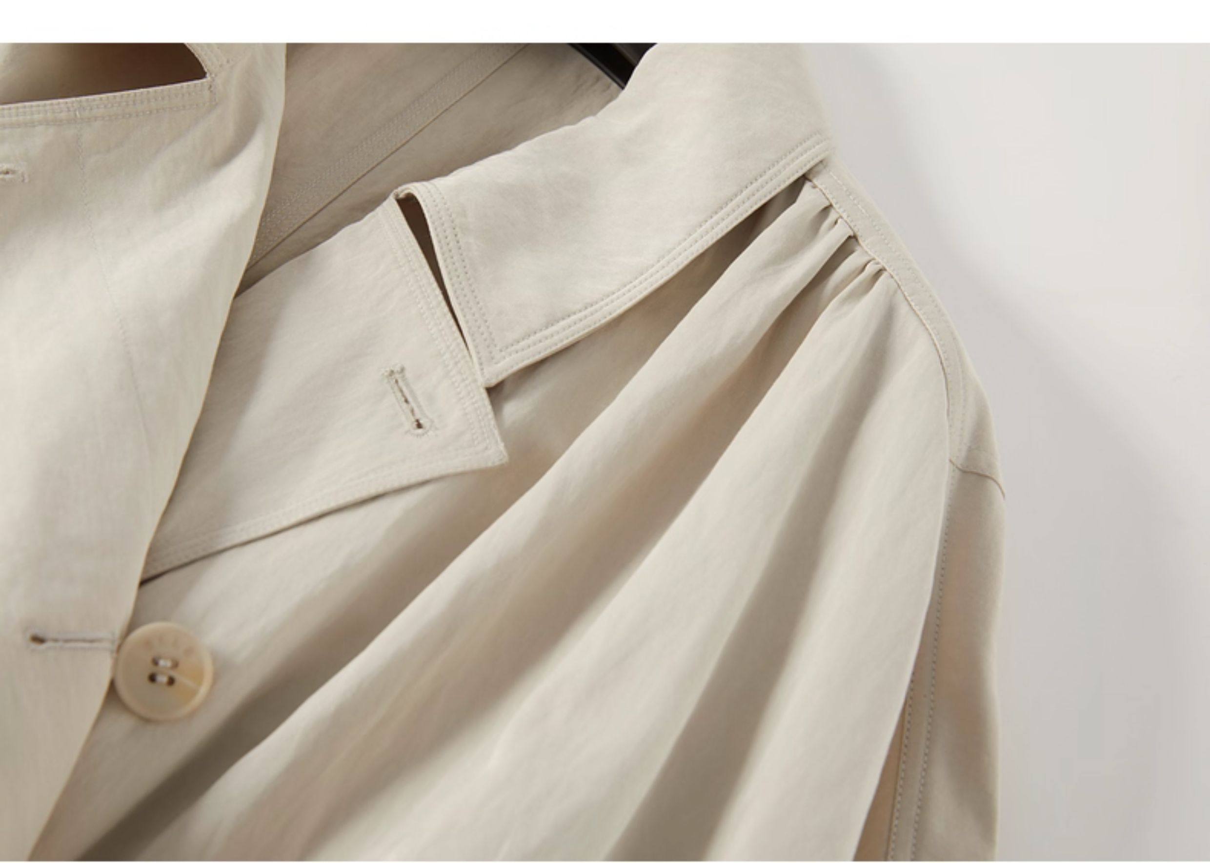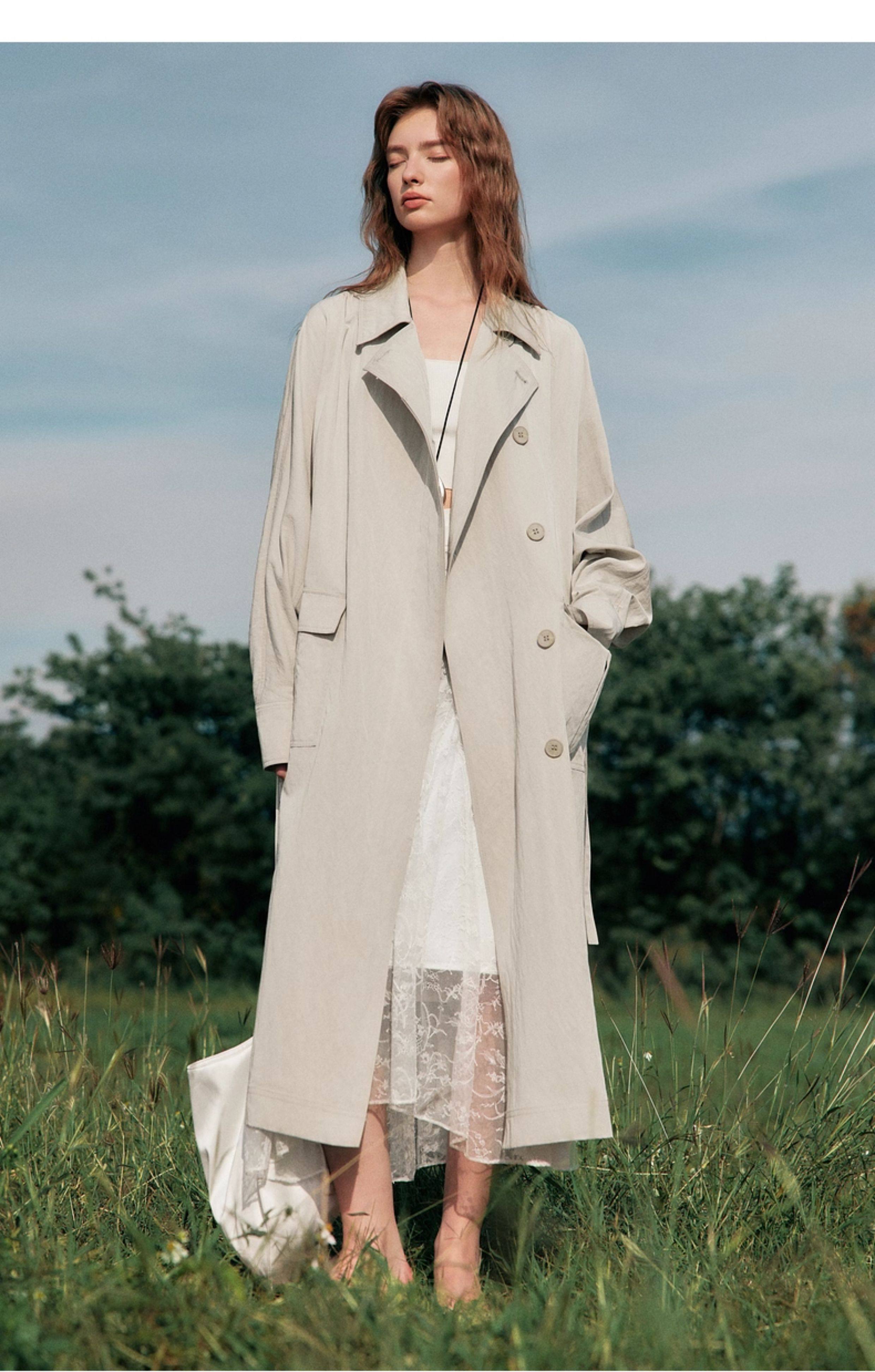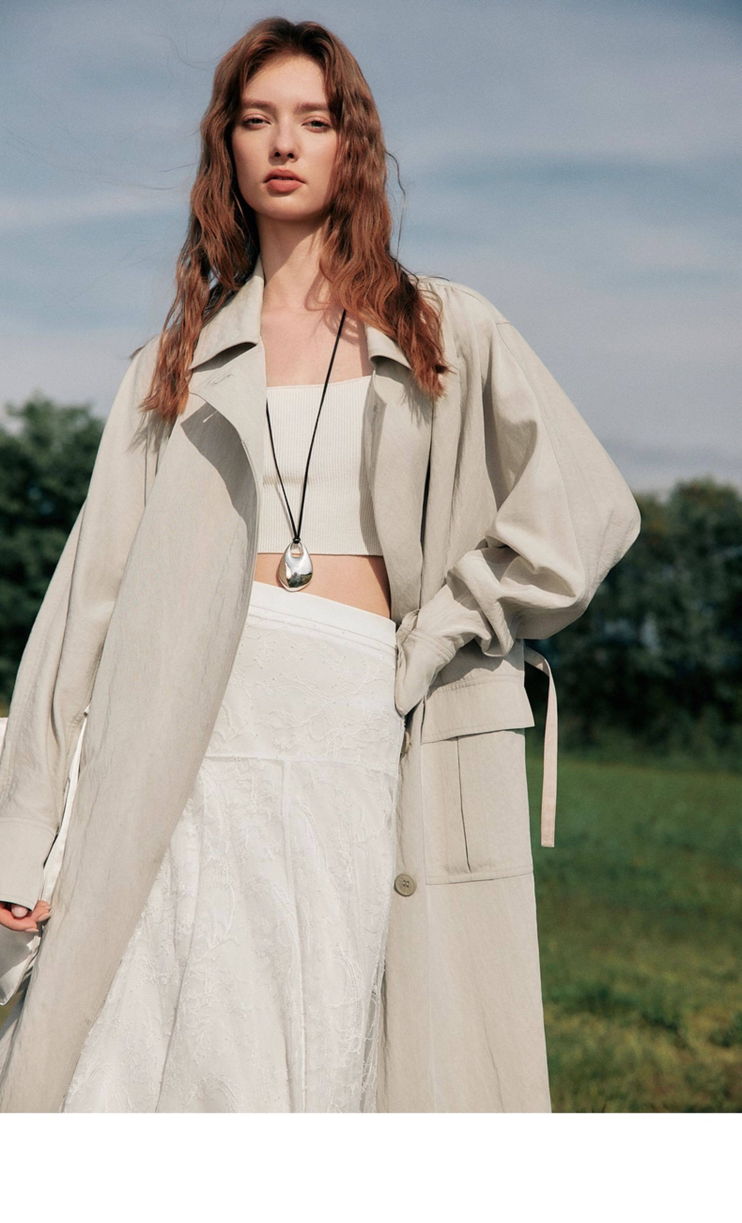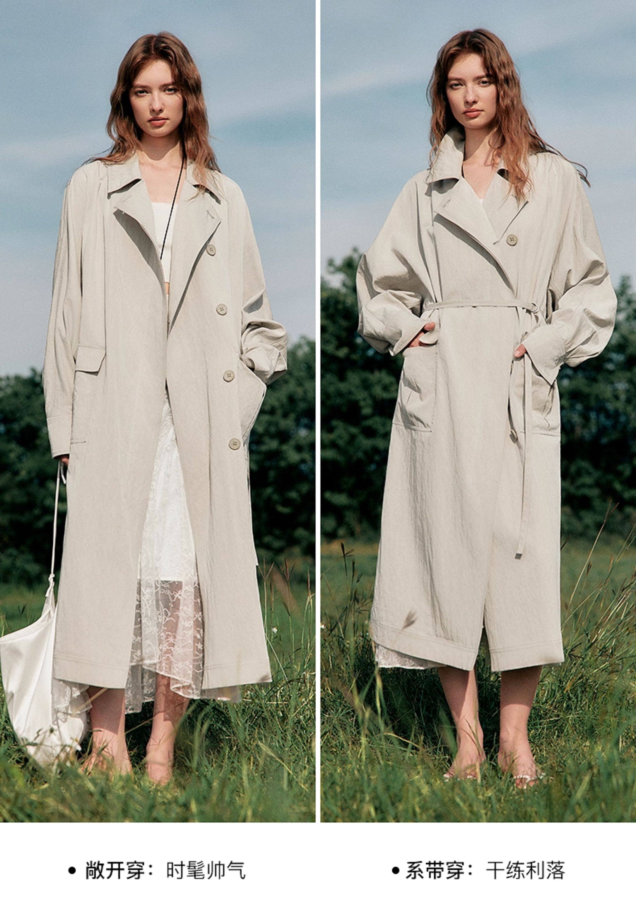 ELLE Lyocell Tencel manga de murciélago cortavientos de solapa larga para mujer 2025 otoño nueva chaqueta de nicho de temperamento Simple