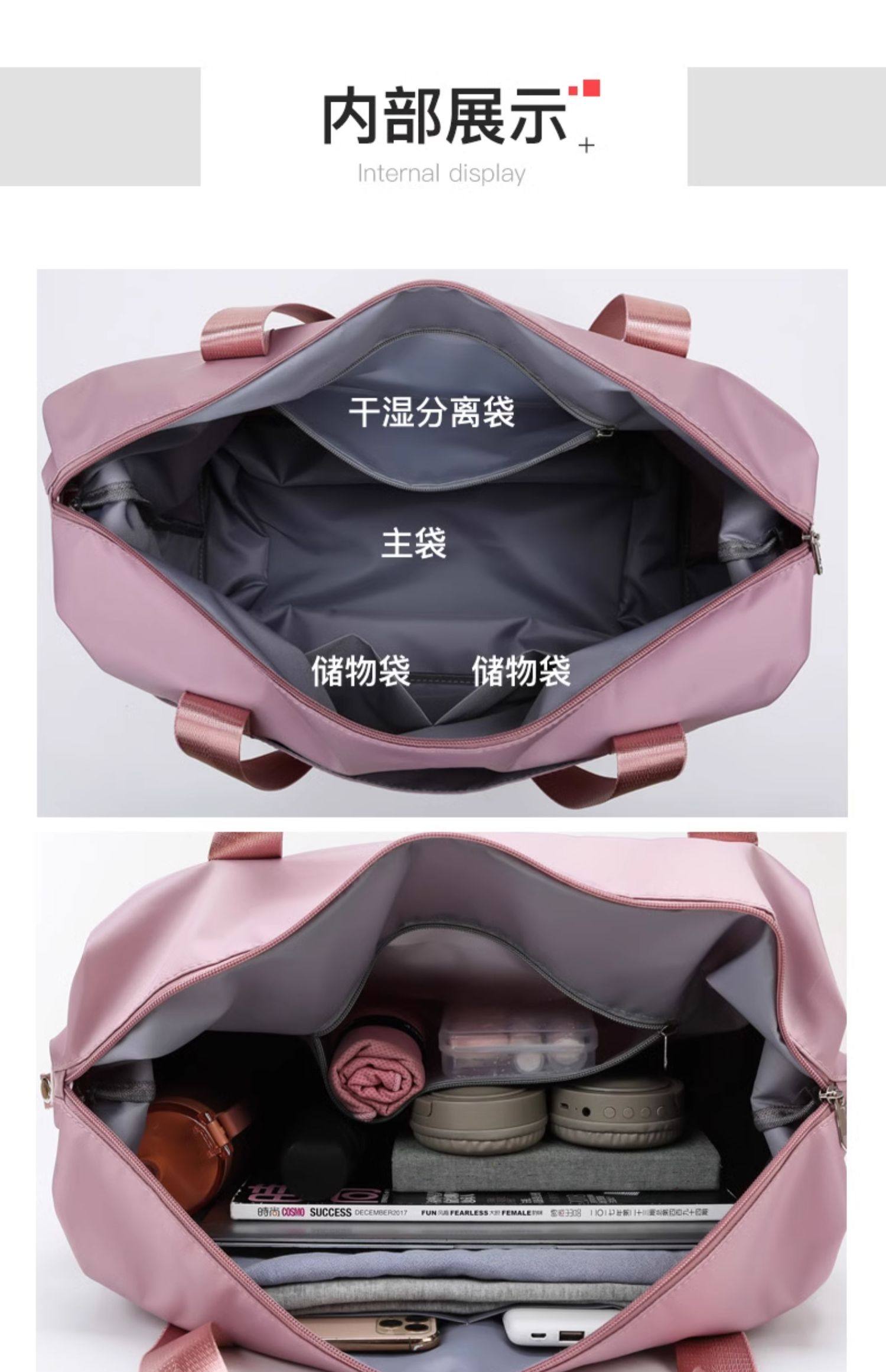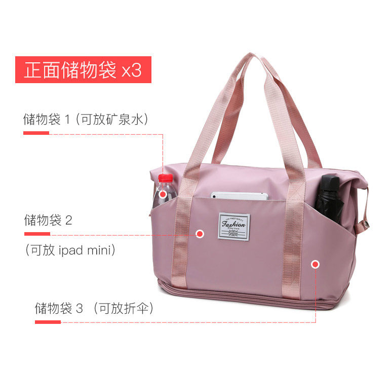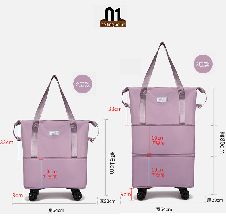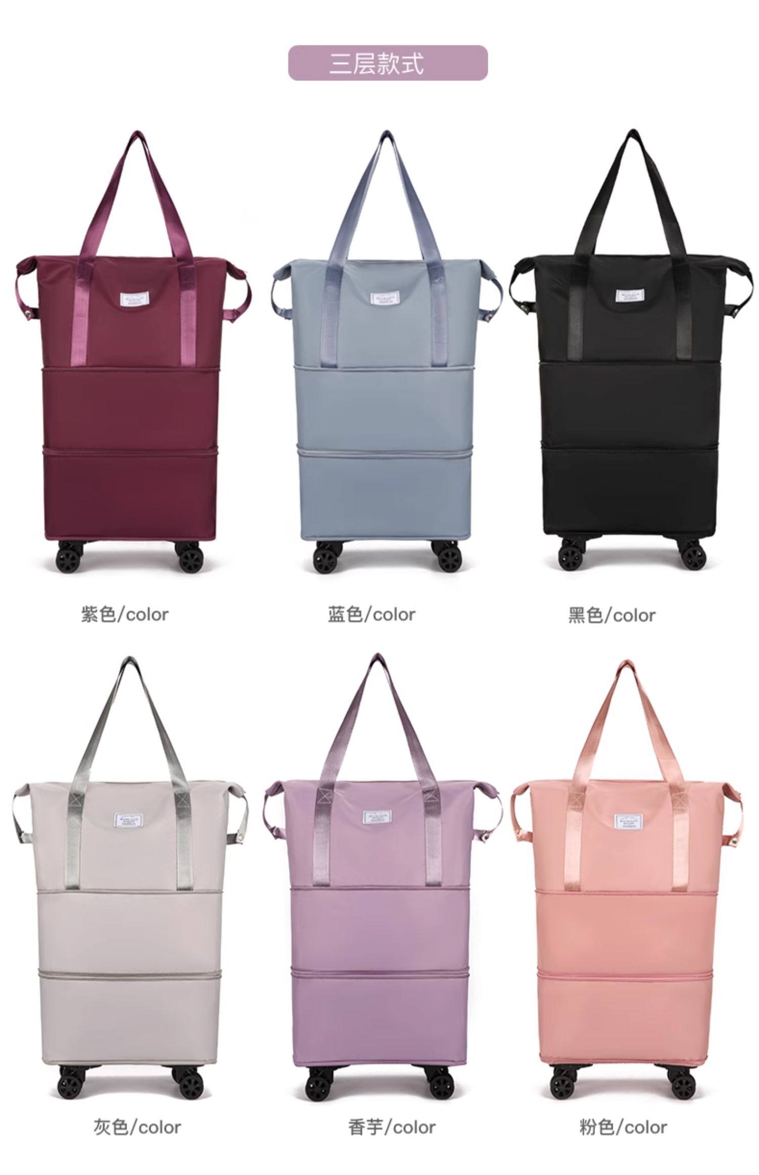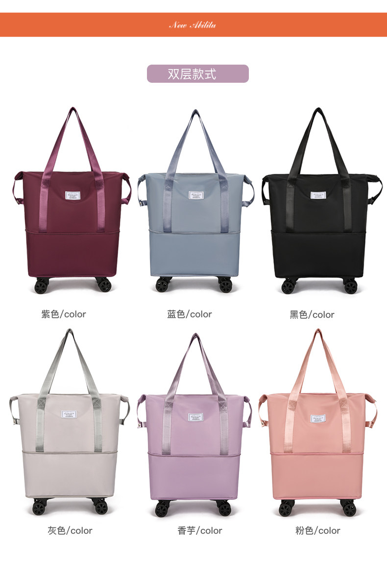 La bolsa de viaje se puede colocar en la bolsa de almacenamiento adicional situada en la barra del carro. Bolsa de equipaje portátil ligera de gran capacidad para corta distancia para mujer