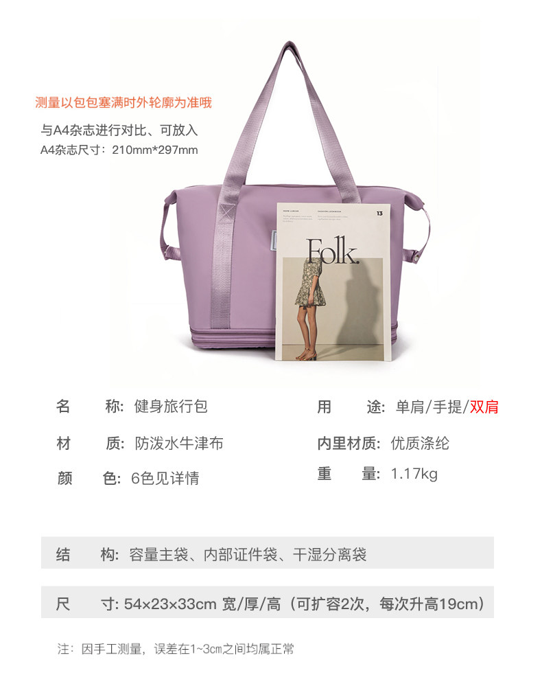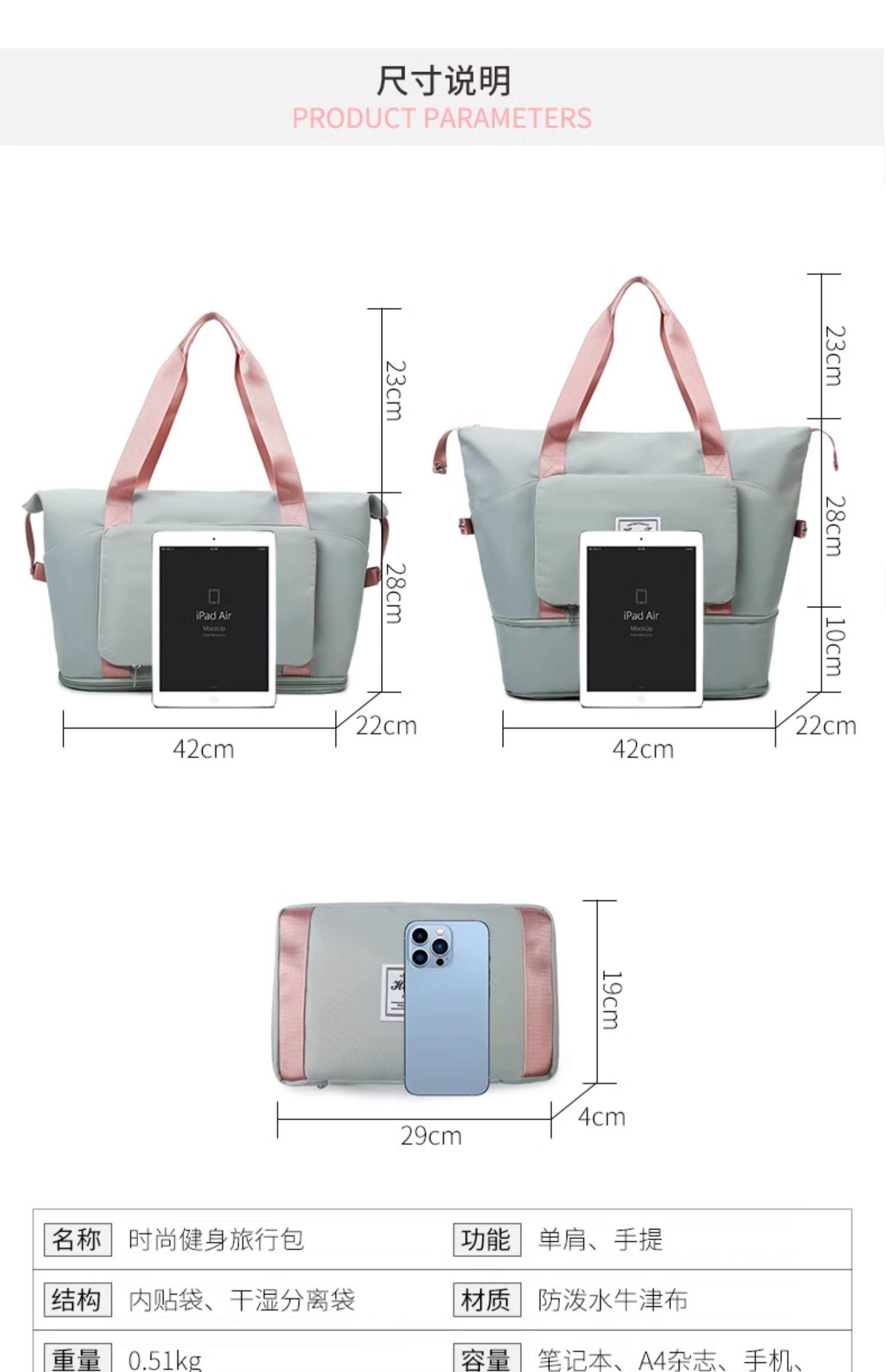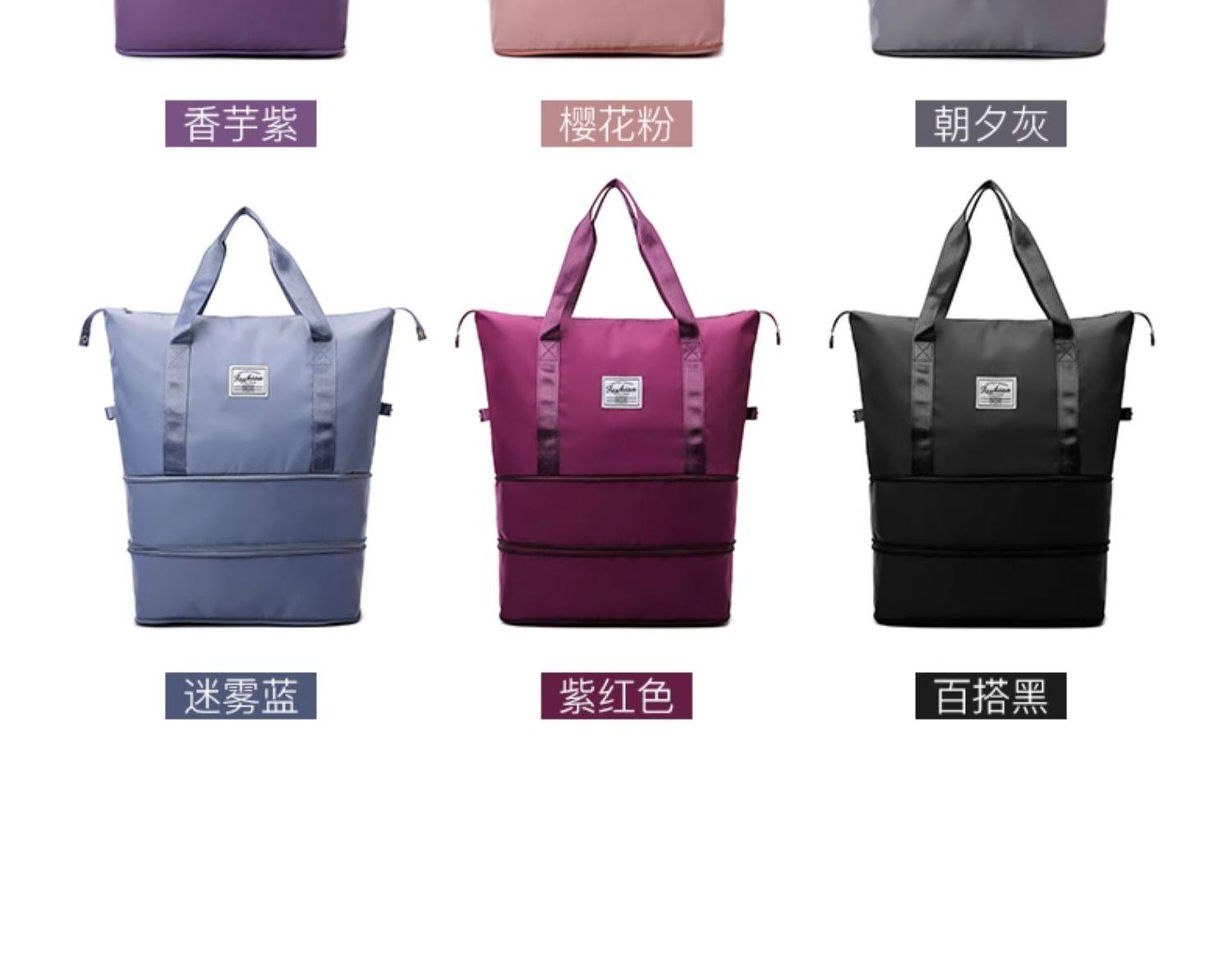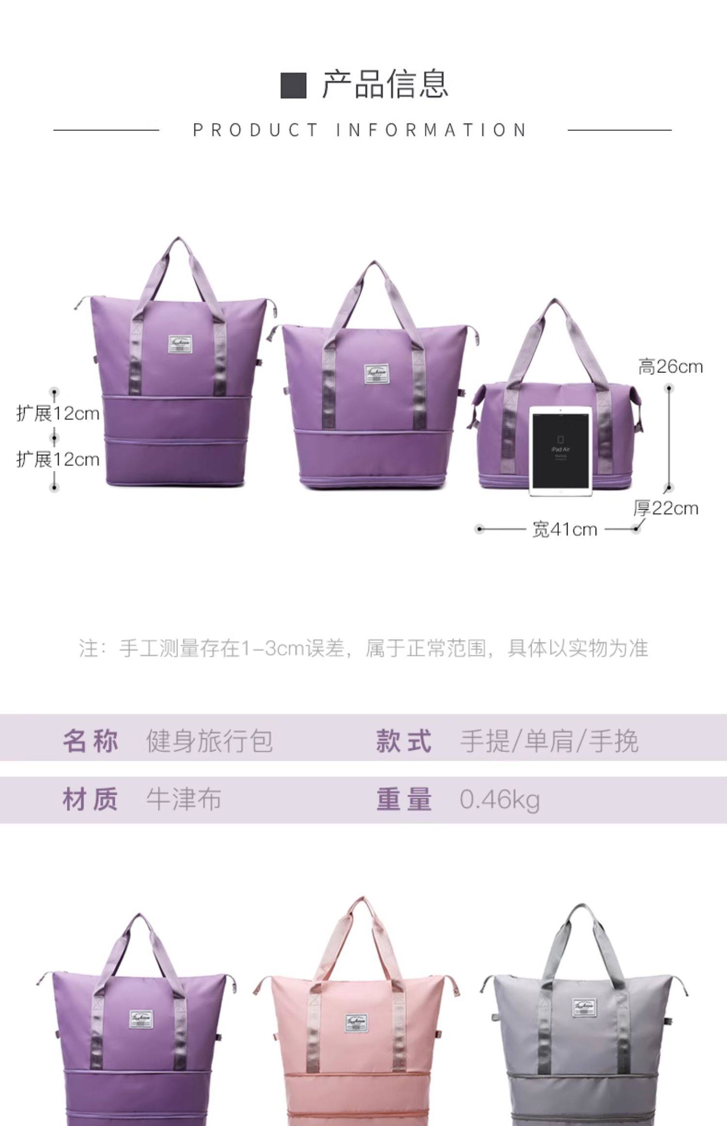 La bolsa de viaje se puede colocar en la bolsa de almacenamiento adicional situada en la barra del carro. Bolsa de equipaje portátil ligera de gran capacidad para corta distancia para mujer