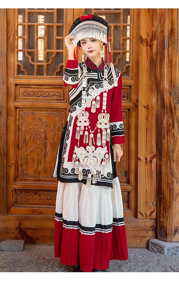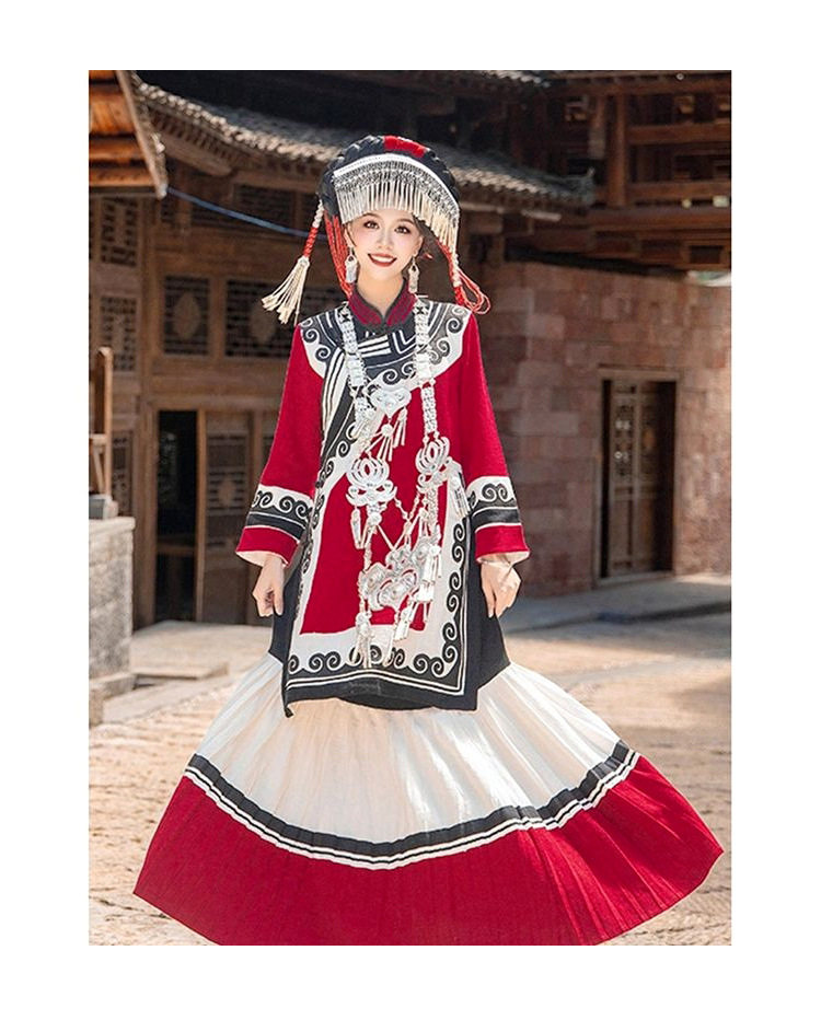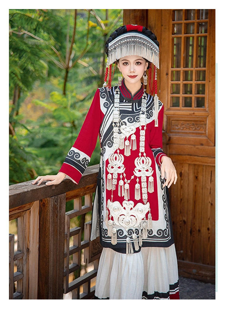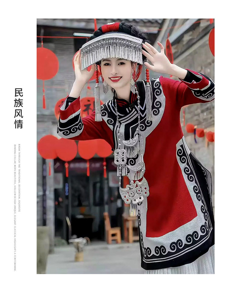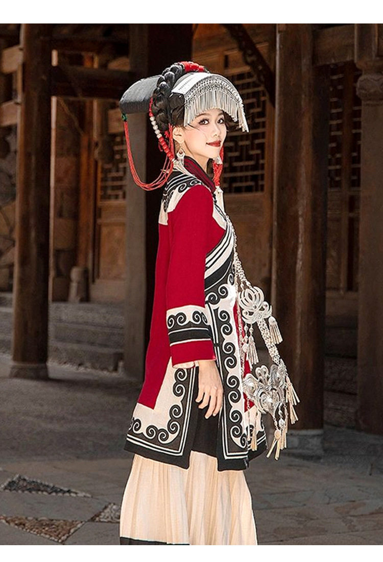 Yi Ethnic Clothing, Ethnic Style Suit, New Style, Minority Miao and Hui Girls' Travel Photography, Red Dance Costume, Retro