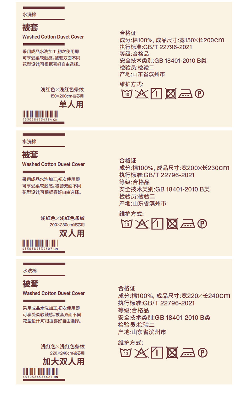 尺寸 单人用150×200cm被芯用,双人用200×230cm被芯用,加大双人用220×240cm被芯用