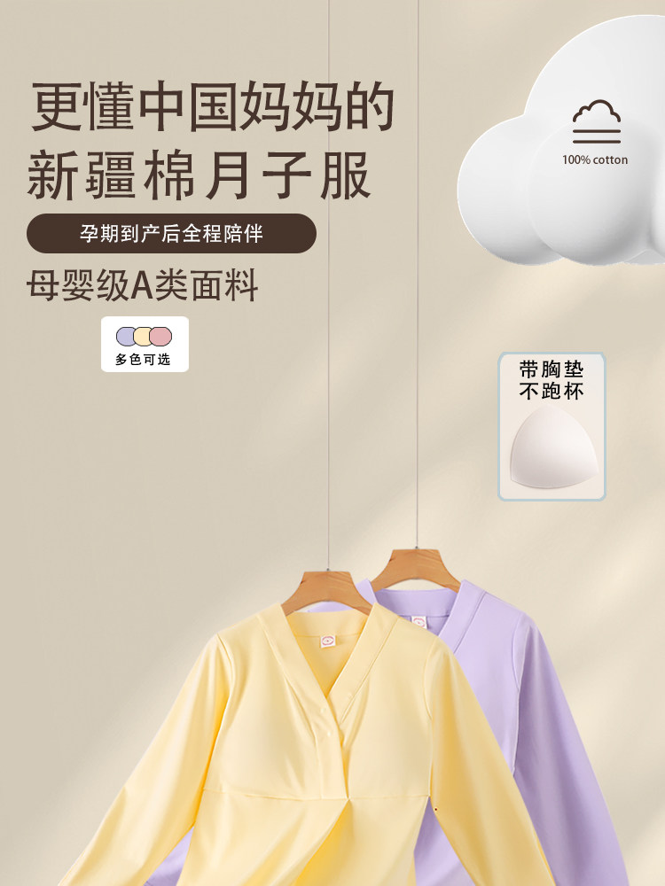 月子服秋冬产后纯棉哺乳衣春秋单件上衣孕妇睡衣带胸垫喂奶家居服