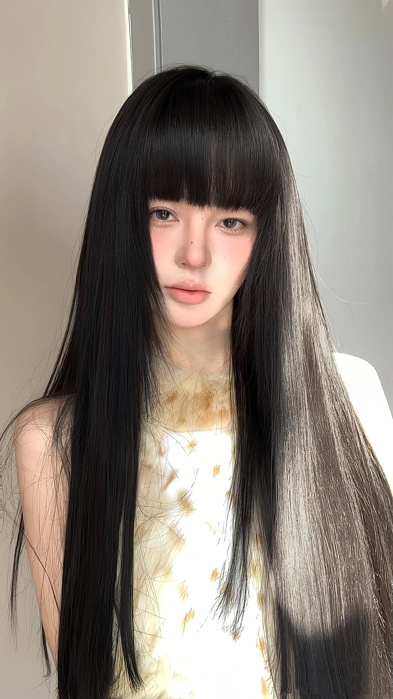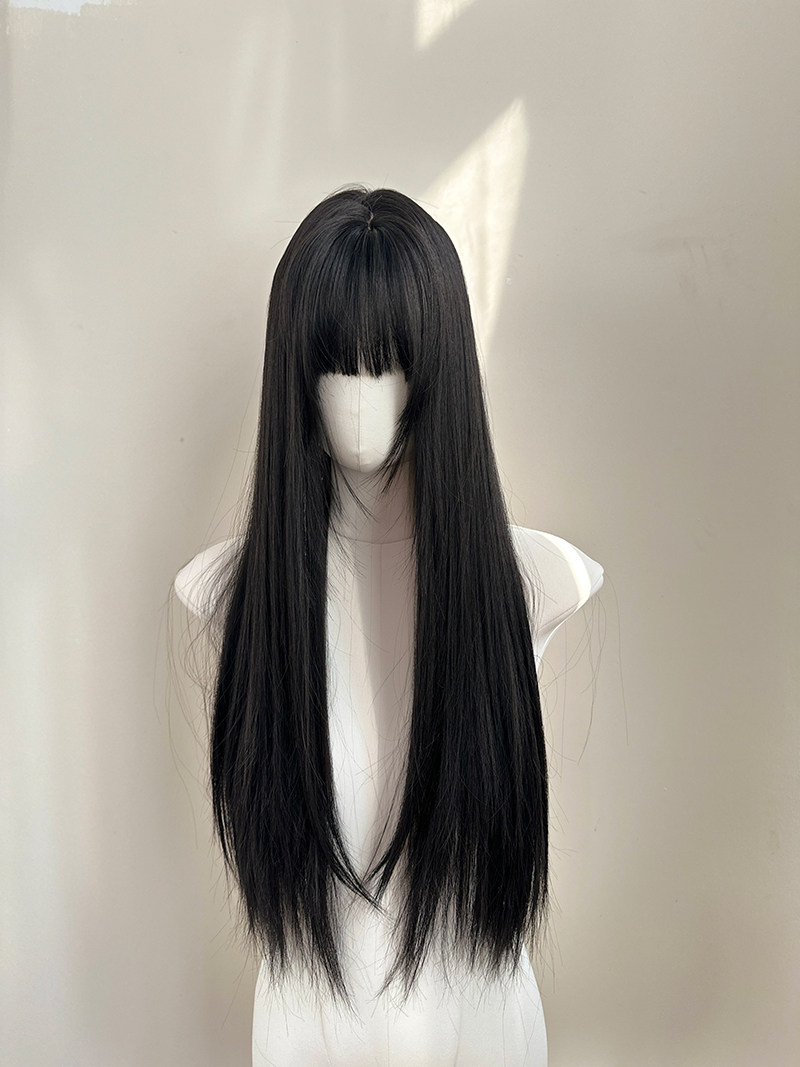 Forest Style Extra-Long Wig Lolita Wig Full Head Cover Long Straight Hair Realistic Long Natural Black Cosplay Wig