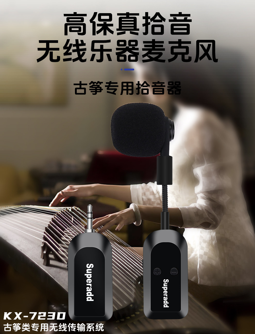 Wireless Microphone for Guzheng, Specialized Ethnic Instrument Pickup for Stage Performance, with Adhesive Fastener for Performance Use