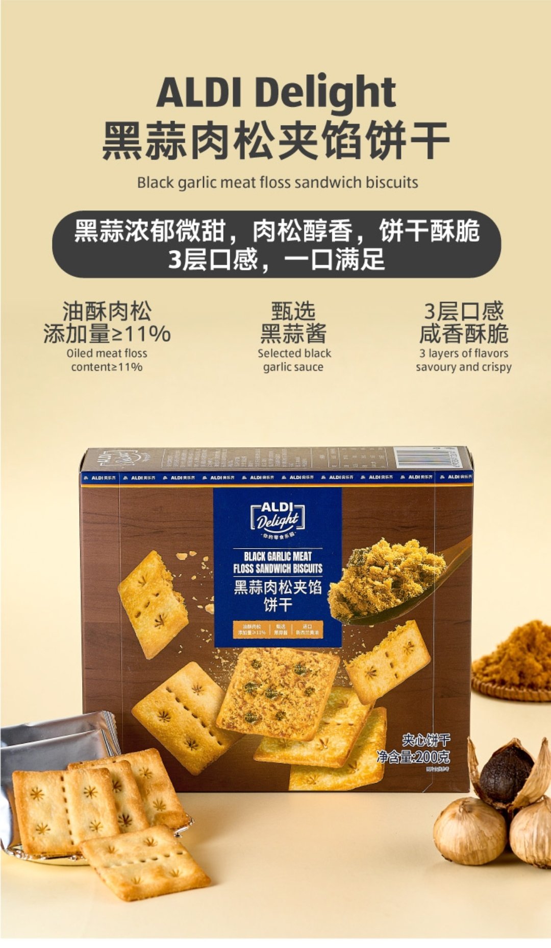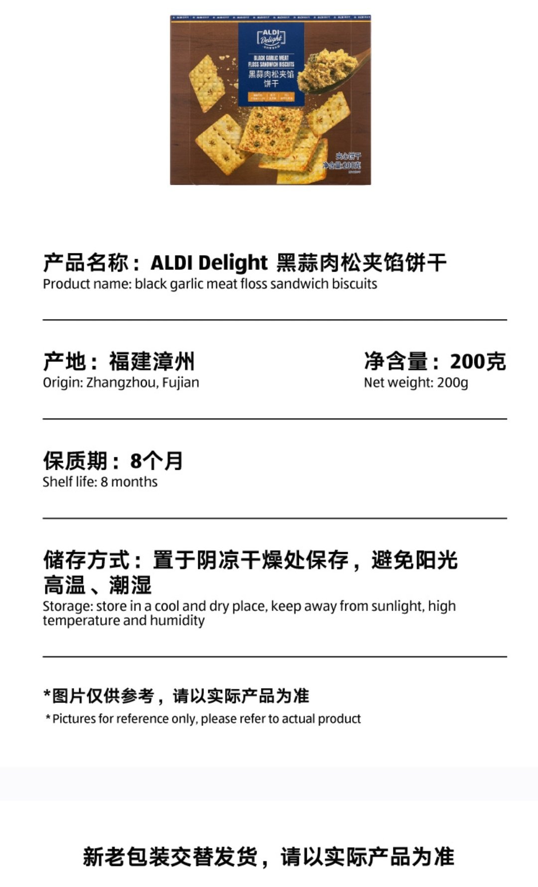 上海奥乐齐Aldi黑蒜肉松馅饼干200g 休闲零食夹心馅网红国内代购