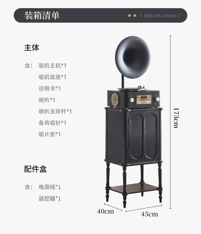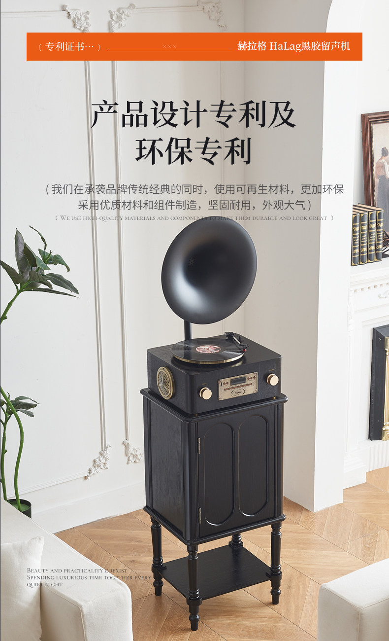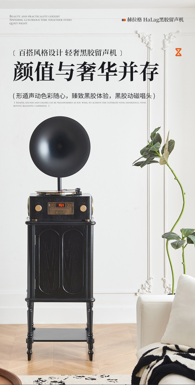 轻奢复古留声机客厅家用中古风黑胶唱片机仿古电唱机蓝牙音响摆件