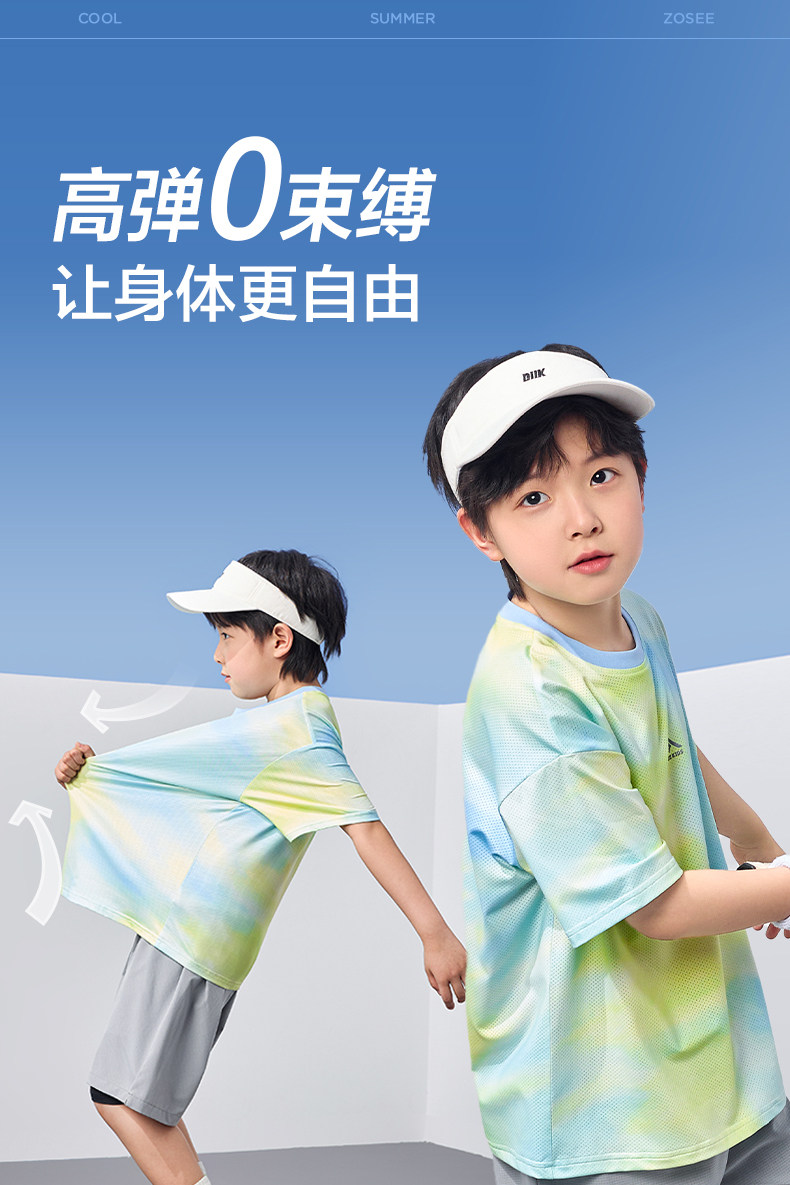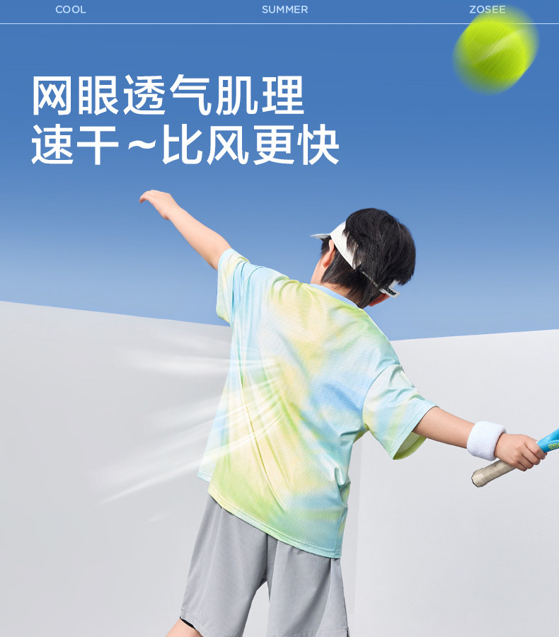 Zuoxi ropa para niños ropa de secado rápido para niños camiseta de manga corta para niños 2025 nuevo estilo para niños y tops de seda de hielo de verano para niños mayores de moda