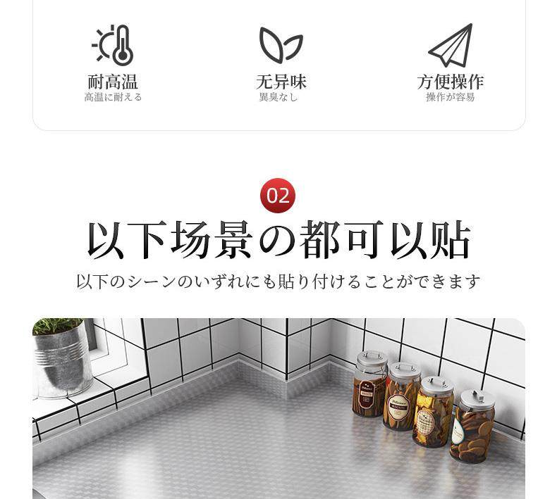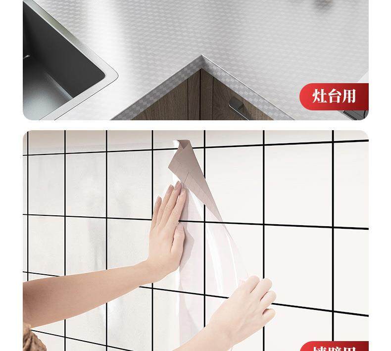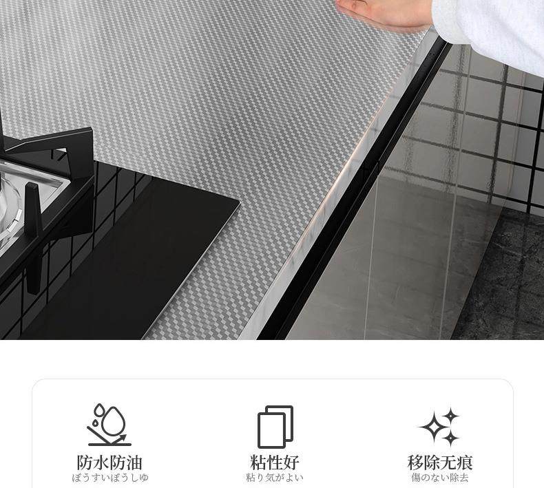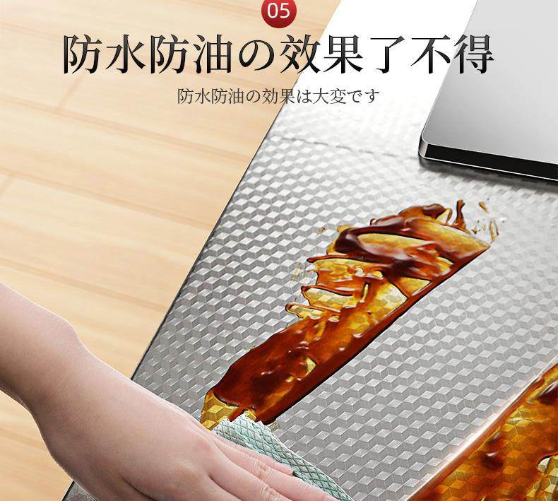 Ölbeständige japanische Küchenaufkleber, feuerfeste und hochtemperaturbeständige Schränke, wasser- und feuchtigkeitsbeständige Alufolie, selbstklebende Tapeten, verdicktes Aluminiumfolienpapier