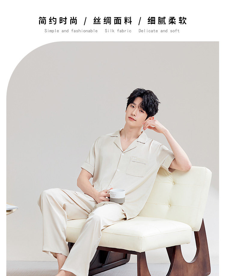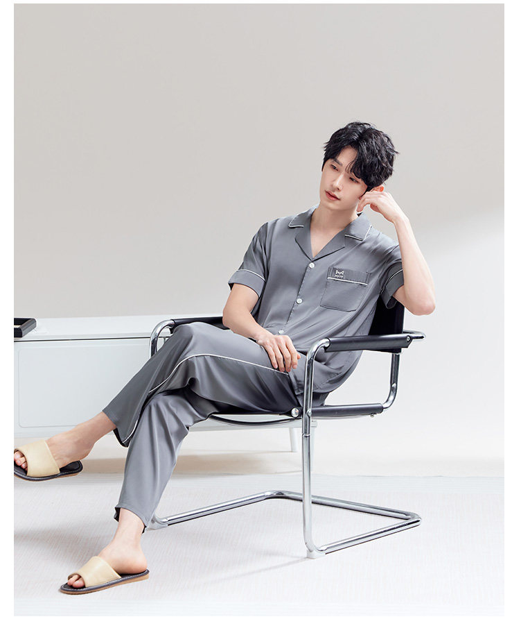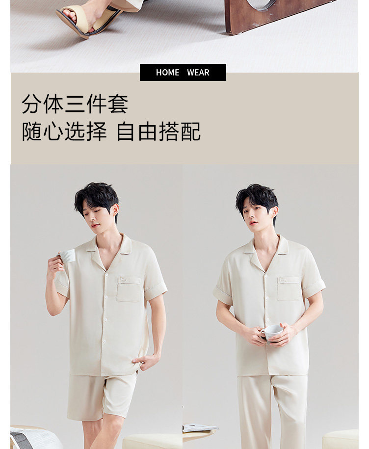 Catman – pyjama en soie glacée pour hommes, pantalon fin à manches courtes, vêtements de maison, costume trois pièces, printemps et automne, nouvelle collection été 2025