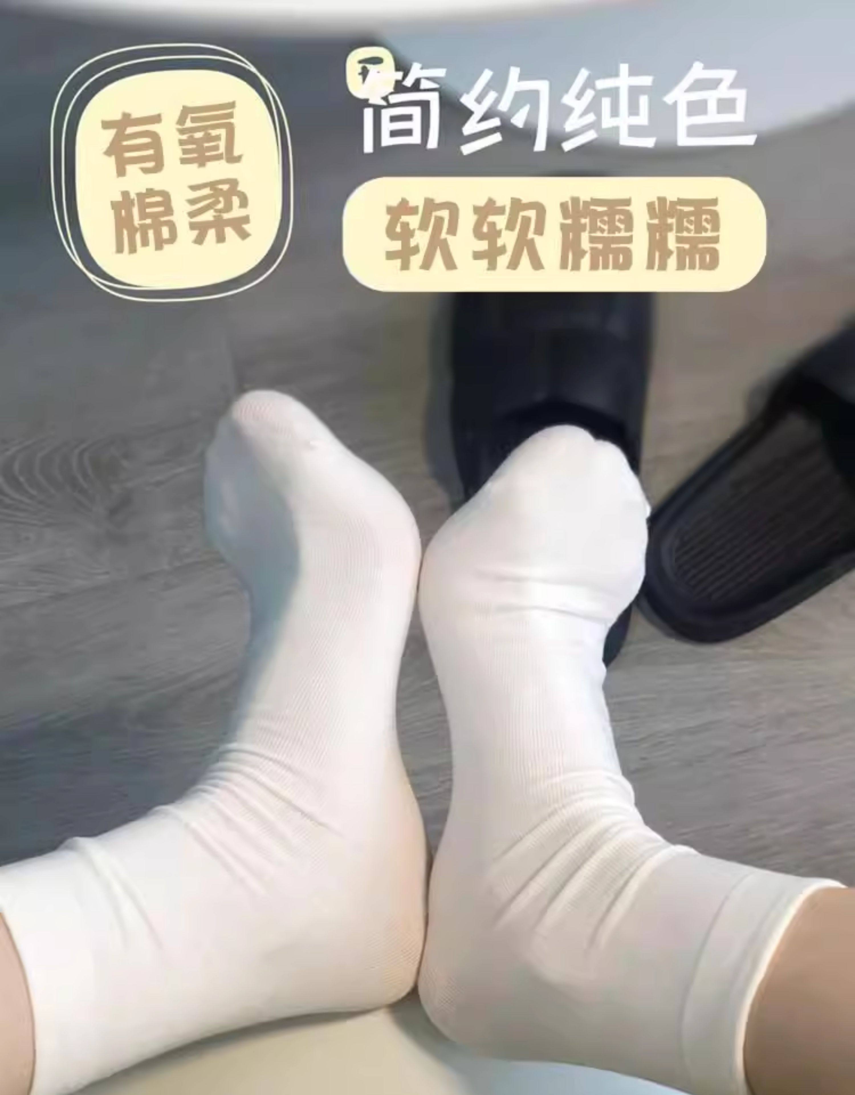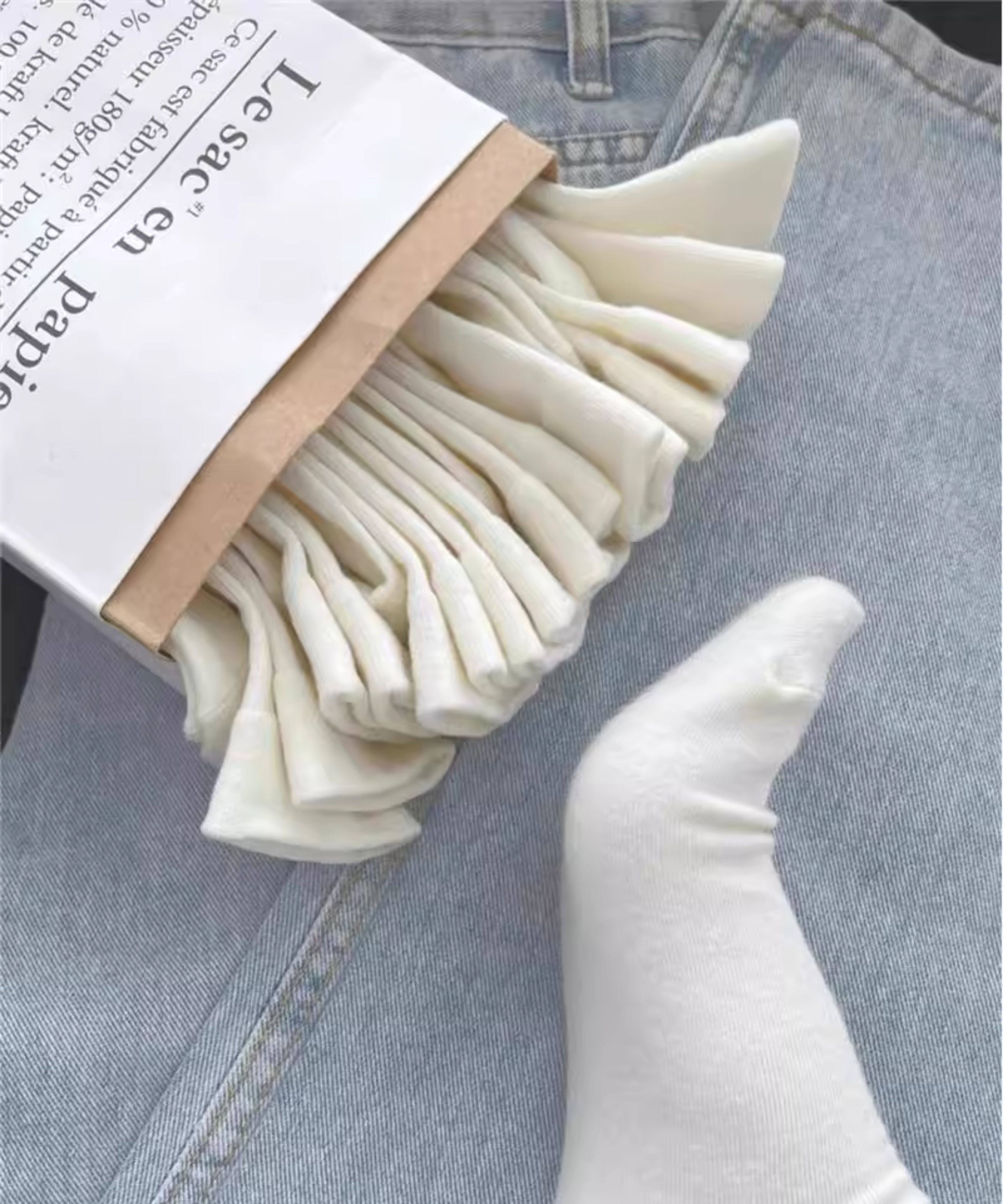 中筒袜棉质吸汗抗起球袜子女春季高弹白色乐福鞋无骨短袜夏天款
