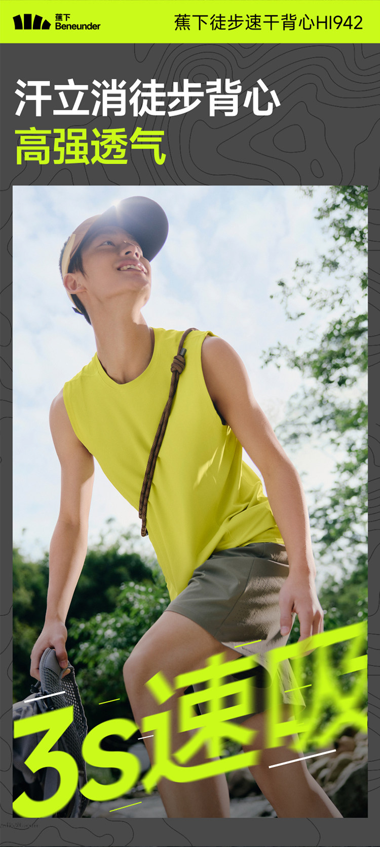 蕉下健身背心男款速干运动训练跑步马拉松冰丝凉感高弹无袖男t恤