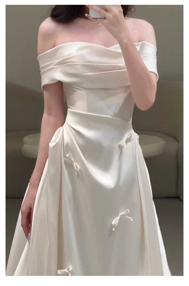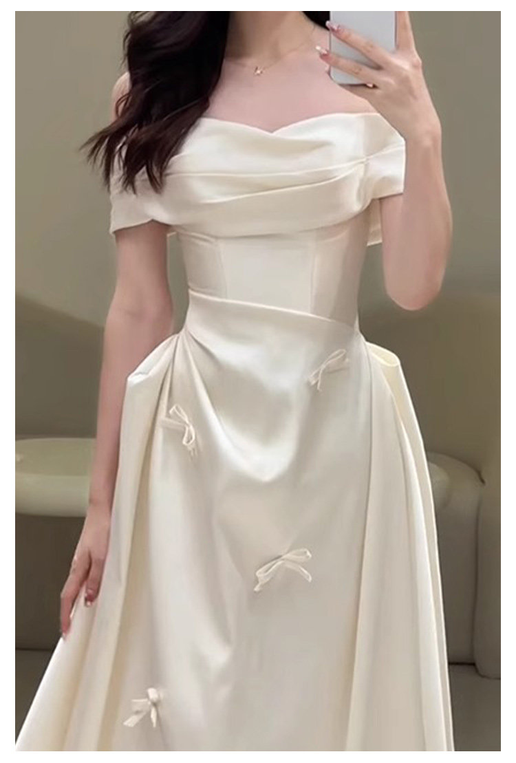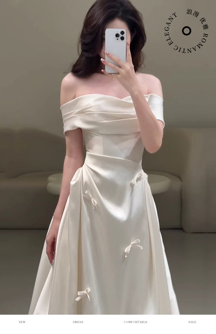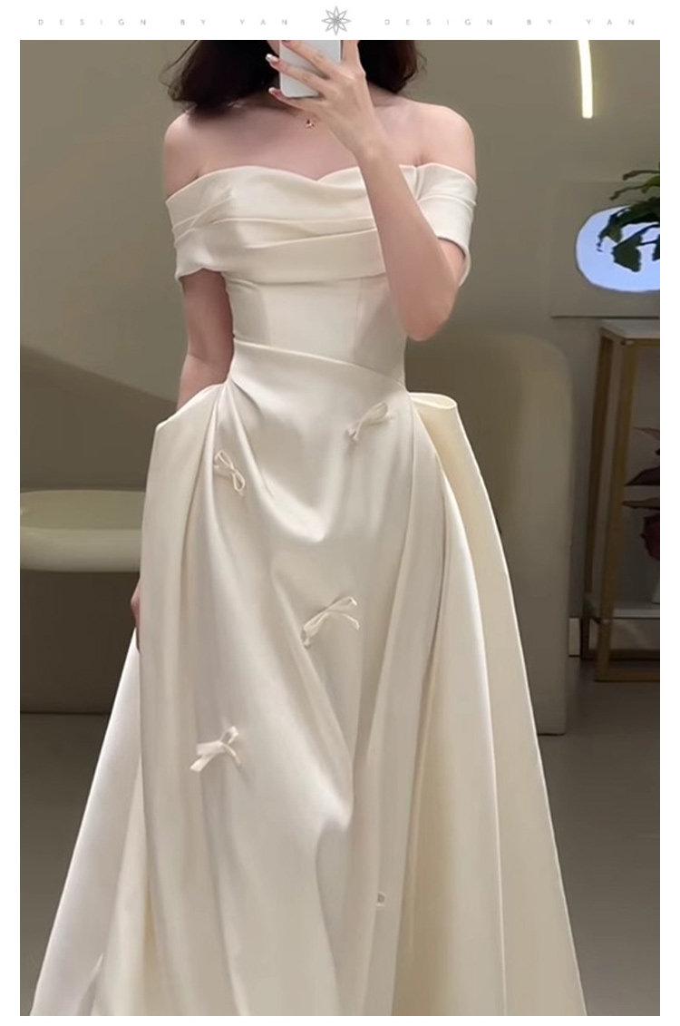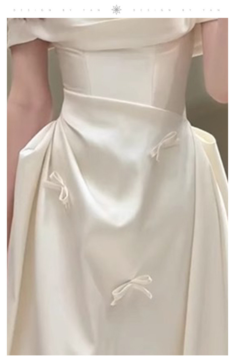法式缎面一字肩轻婚纱新娘2025新款高级感迎宾出门纱简约订婚礼服