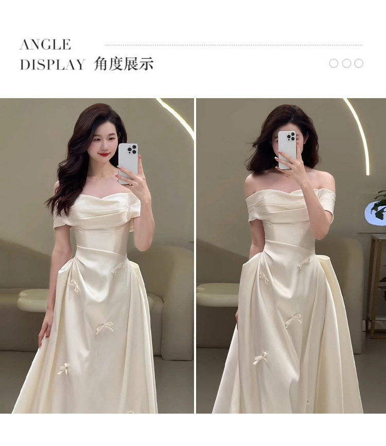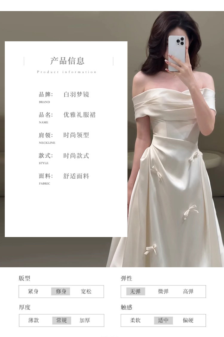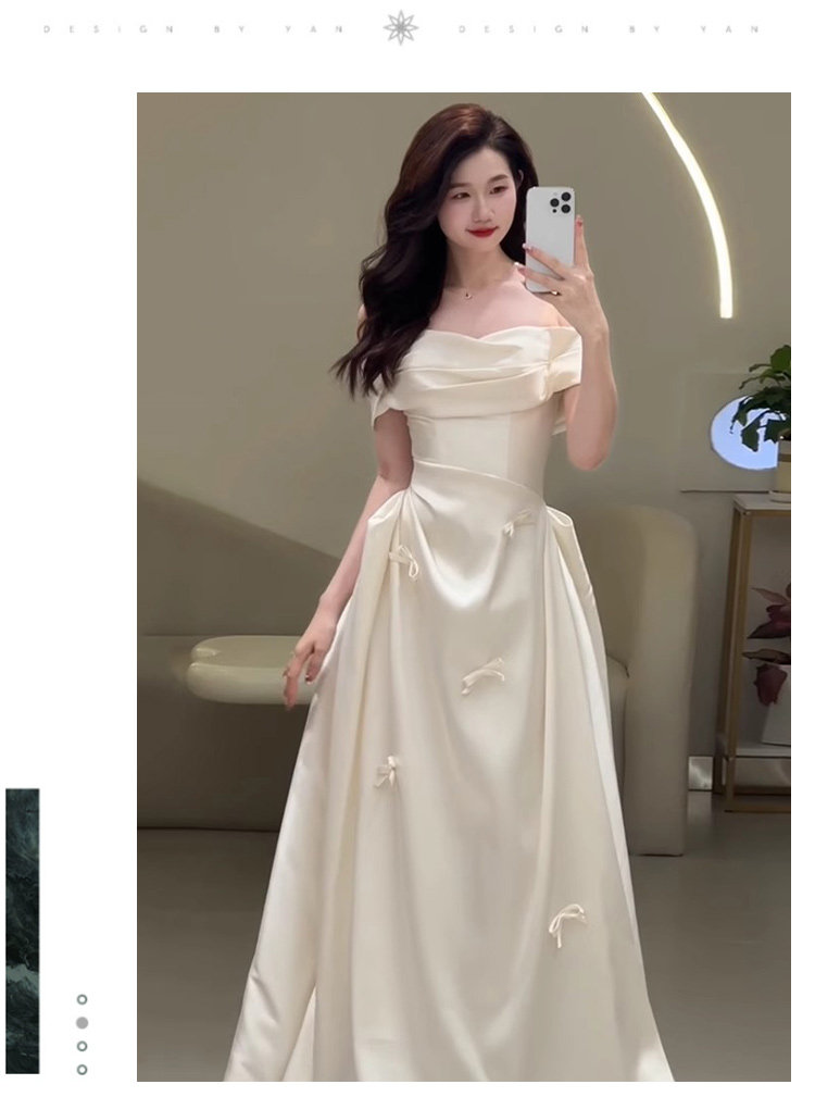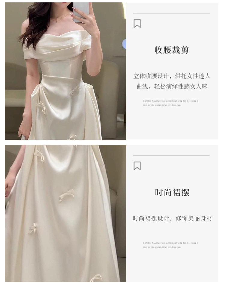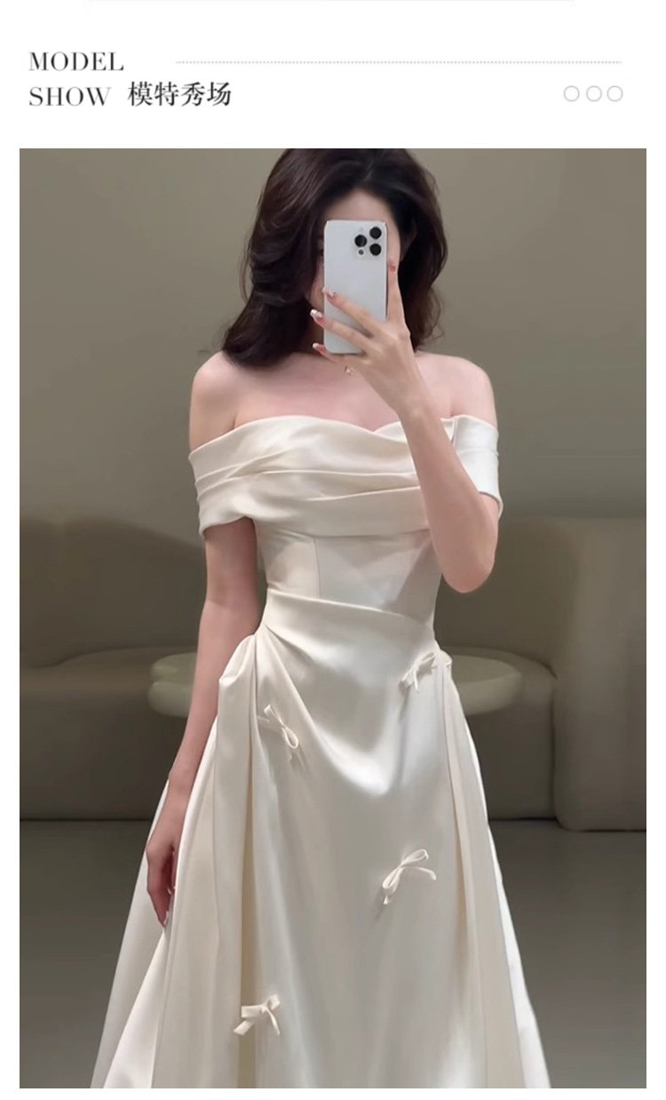 法式缎面一字肩轻婚纱新娘2025新款高级感迎宾出门纱简约订婚礼服