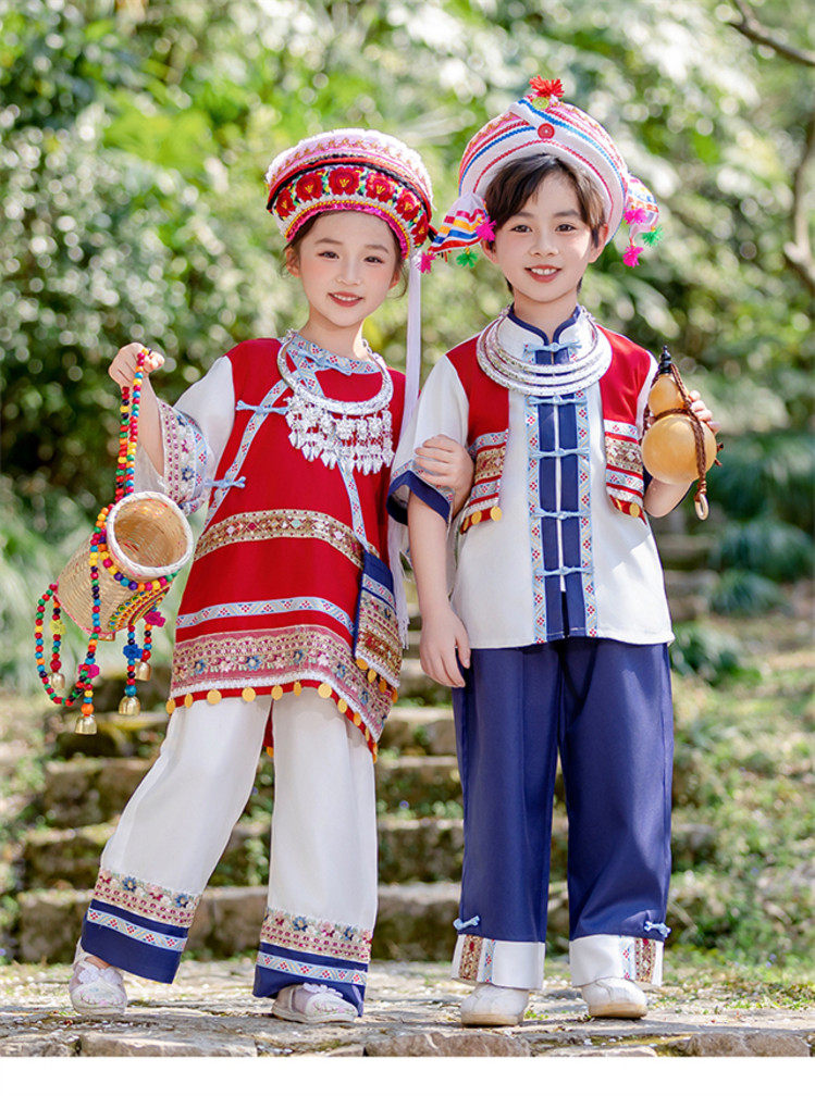 Kleidung im ethnischen Stil, Frühling und Sommer, neue Kleidung für Kinder, Yunnan Bai, Kindergarten, Kindertag, Tanzaufführungskleidung