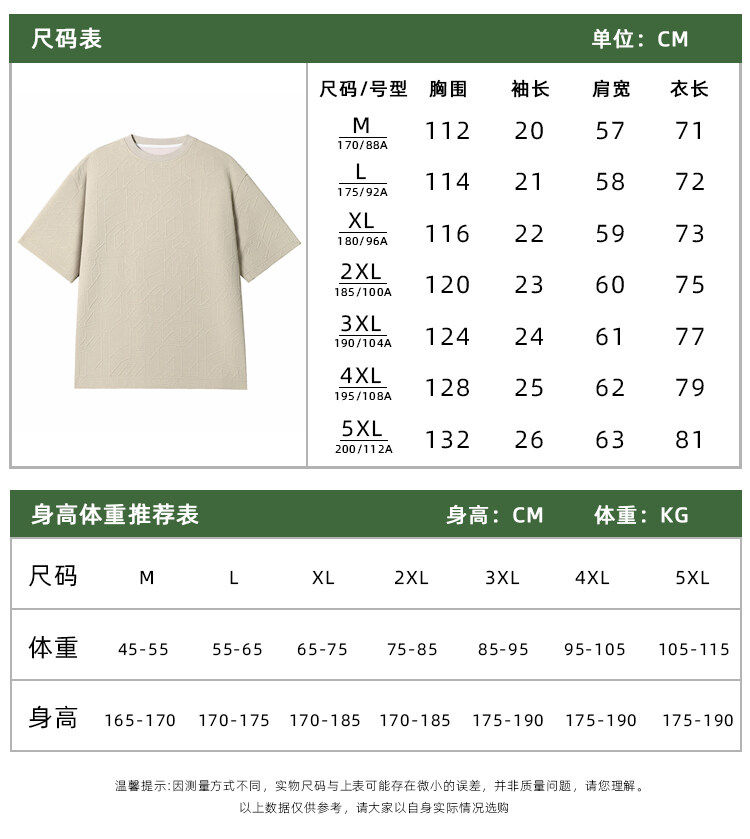 White Jacquard Oversized Regular Shoulder T-Shirt for Men, Summer Wear, Plus-Size Short-Sleeve, Loose, Casual Style, Heavyweight Half-Sleeve