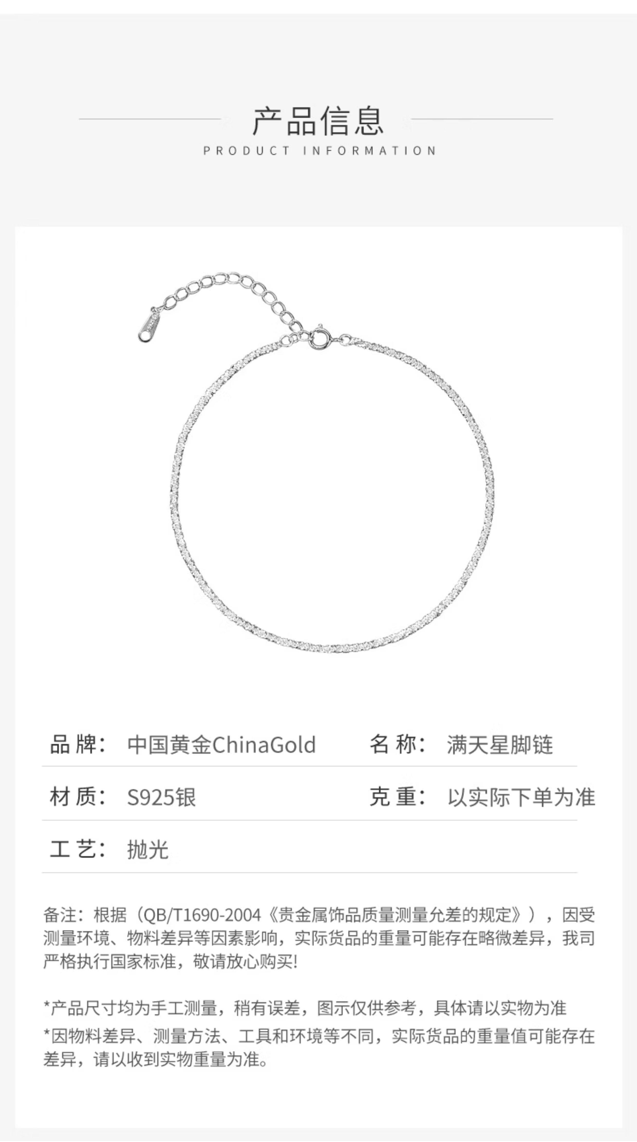 中国黄金925纯银满天星脚链女轻奢小众设计感足链生日礼物送女友