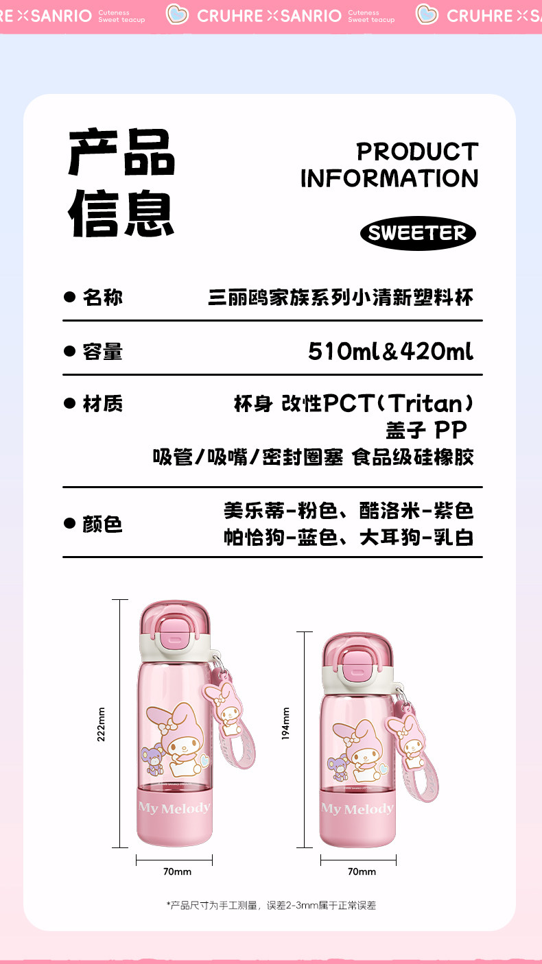 Классификация цветов Добавьте в избранное и корзину, получите бесплатную гравировку!,ИмпортТритан|Соломка и прямое питье и питье|Можно поместить в боковой карман школьной сумки.,(Модель класса люкс) Kuromi 420 мл (импортный Tritan + прямое питье и трубочка) поставляется с мультяшным брелоком + портативной ручкой + 3D-наклейками * 8 + щеткой для чашки и щеткой для трубочки,(Модель класса люкс) Kuromi 510 мл (импортный Tritan + прямой питьевой отверстие и трубочка) в комплекте с мультяшным брелоком + портативной ручкой + 3D-наклейками*8 + щеткой для чашки и щеткой для трубочки,(Модель класса люкс) Melody 420 мл (импортный Tritan + прямое питье и трубочка) поставляется с мультяшным брелоком + портативной ручкой + 3D-наклейками*8 + щеткой для чашки и щеткой для трубочки.,(Модель класса люкс) Melody 510 мл (импортный Tritan + прямое питье и трубочка) поставляется с мультяшным брелоком + портативной ручкой + 3D-наклейками*8 + щеткой для чашки и трубочки.,(Модель класса люкс) Jade Gui Dog 420 мл (импортный тритан + прямое питье и соломинка) поставляется с мультяшным кулоном + портативной ручкой + 3D-наклейками * 8 + щеткой для чашки и щеткой для соломинки,(Модель класса люкс) Jade Gui Dog 510 мл (импортированный тритан + прямой напиток и соломинка) поставляется с мультяшным кулоном + портативной ручкой + 3D-наклейками * 8 + щеткой для чашки и щеткой для соломинки,(Модель класса люкс) Pacha Dog 420 мл (импортный Tritan + прямое питье и трубочка) поставляется с мультяшным брелоком, портативной ручкой, 3D-наклейками (8 шт.) и щеткой для чашки и трубочки.,(Модель класса люкс) Pacha Dog 510 мл (импортный Tritan + прямой питьевой режим и трубочка) поставляется с мультяшным брелоком, портативной ручкой, 3D-наклейками (8 шт.) и щеткой для чашки и трубочки.,(Набор роскошных чашек) Kuromi 420 мл (импортированный тритан + прямой напиток и соломинка) Бесплатный мультяшный кулон + портативная ручка + 3D-наклейка * 8 + щетка для чашки и щетка для соломинки,(Набор роскошных чашек) Kuromi 510 мл (импортированный тритан + прямой напиток и соломинка) поставляется с мультяшным кулоном + портативной ручкой + 3D-наклейками * 8 + щеткой для чашки и щеткой для соломинки,(Набор роскошных чашек) Melody 420 мл (импортированный тритан + прямой напиток и соломинка) В комплект входит подвеска с героями мультфильмов + портативная ручка + 3D-наклейка * 8 + щетка для чашки и щетка для соломинки,(Набор роскошных чашек) Melody 510 мл (импортированный тритан + прямой напиток и соломинка) Бесплатный мультяшный кулон + портативная ручка + 3D-наклейки * 8 + щетка для чашек и щетка для соломинок,(Набор роскошных чашек) Cinnamoroll 420 мл (импортированный тритан + прямой напиток и соломинка) Включает в себя мультяшный шарм + портативную ручку + 3D-наклейки * 8 + щетку для чашки и щетку для соломинки,(Набор роскошных чашек) Cinnamoroll 510 мл (импортированный тритан + прямой напиток и соломинка) Включает в себя мультяшный шарм + портативную ручку + 3D-наклейки * 8 + щетка для чашки и щетка для соломинки,(Набор роскошных чашек) Pochacco 420 мл (импортированный тритан + прямой напиток и соломинка) В комплект входит мультяшный брелок + портативная ручка + 3D-наклейки * 8 + щетка для чашки и щетка для соломинки,(Набор роскошных чашек) Pacha Dog 510 мл (импортированный тритан + прямой напиток и соломинка) В комплект входит подвеска с героями мультфильмов + портативная ручка + 3D-наклейка * 8 + щетка для чашки и щетка для соломинки
