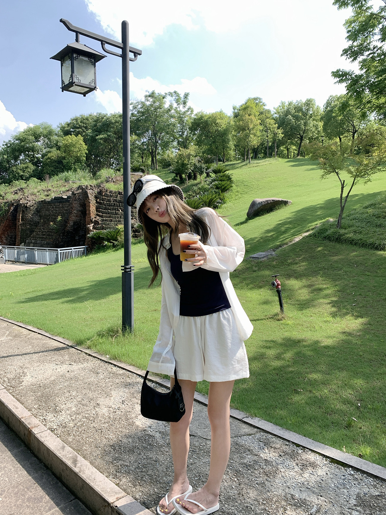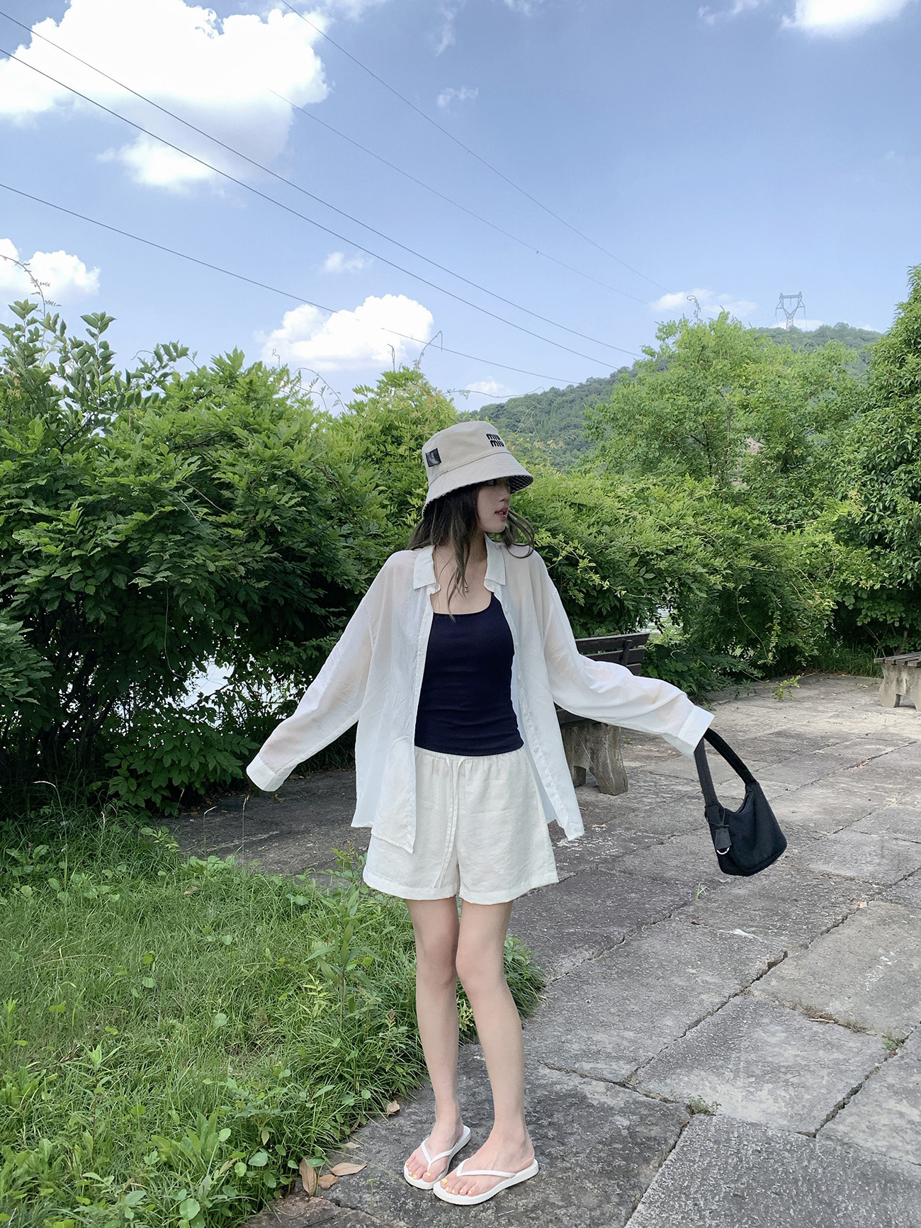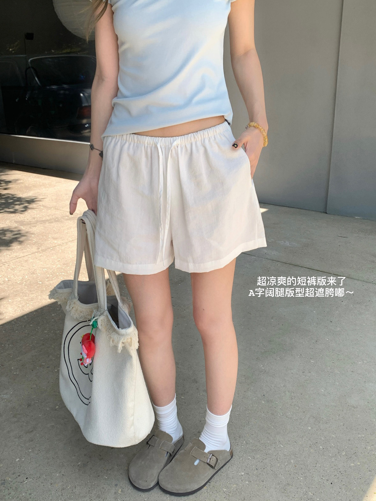 Farbklassifizierung Shorts Eiscremeweiß,Hosen aus rohem Reis,Hose Eiscremeweiß,Hose mattes Gazepulver,Hosen hängen schwarz