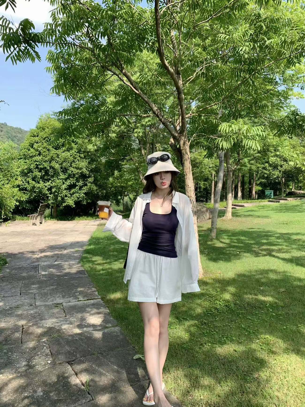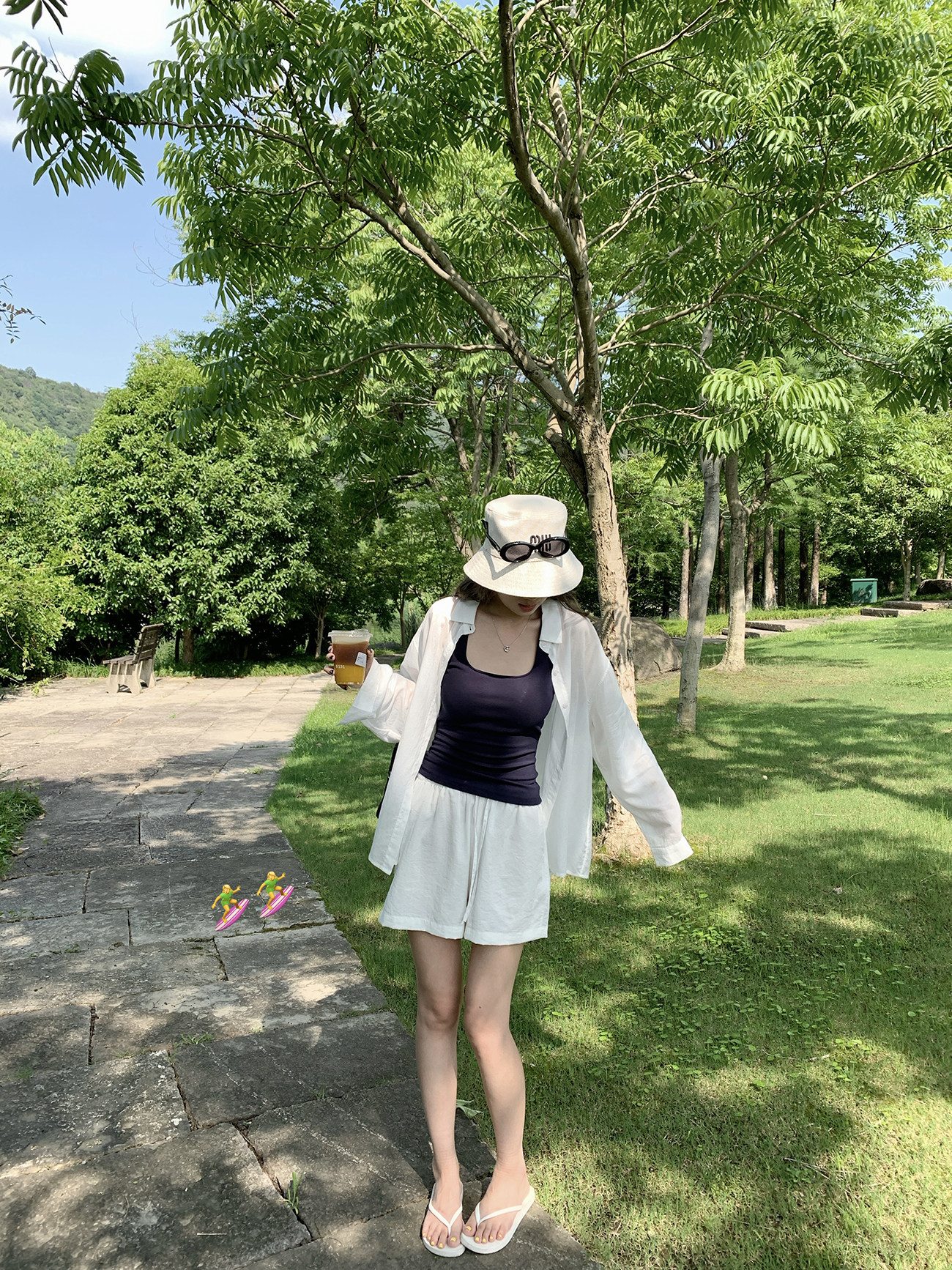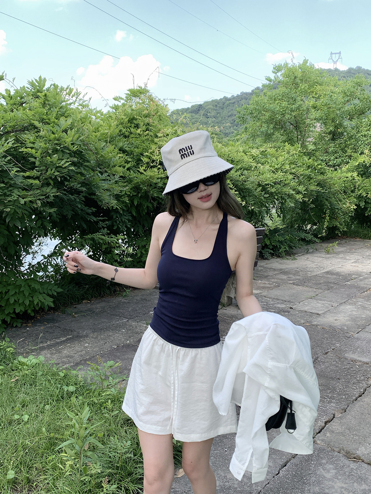Farbklassifizierung Shorts Eiscremeweiß,Hosen aus rohem Reis,Hose Eiscremeweiß,Hose mattes Gazepulver,Hosen hängen schwarz