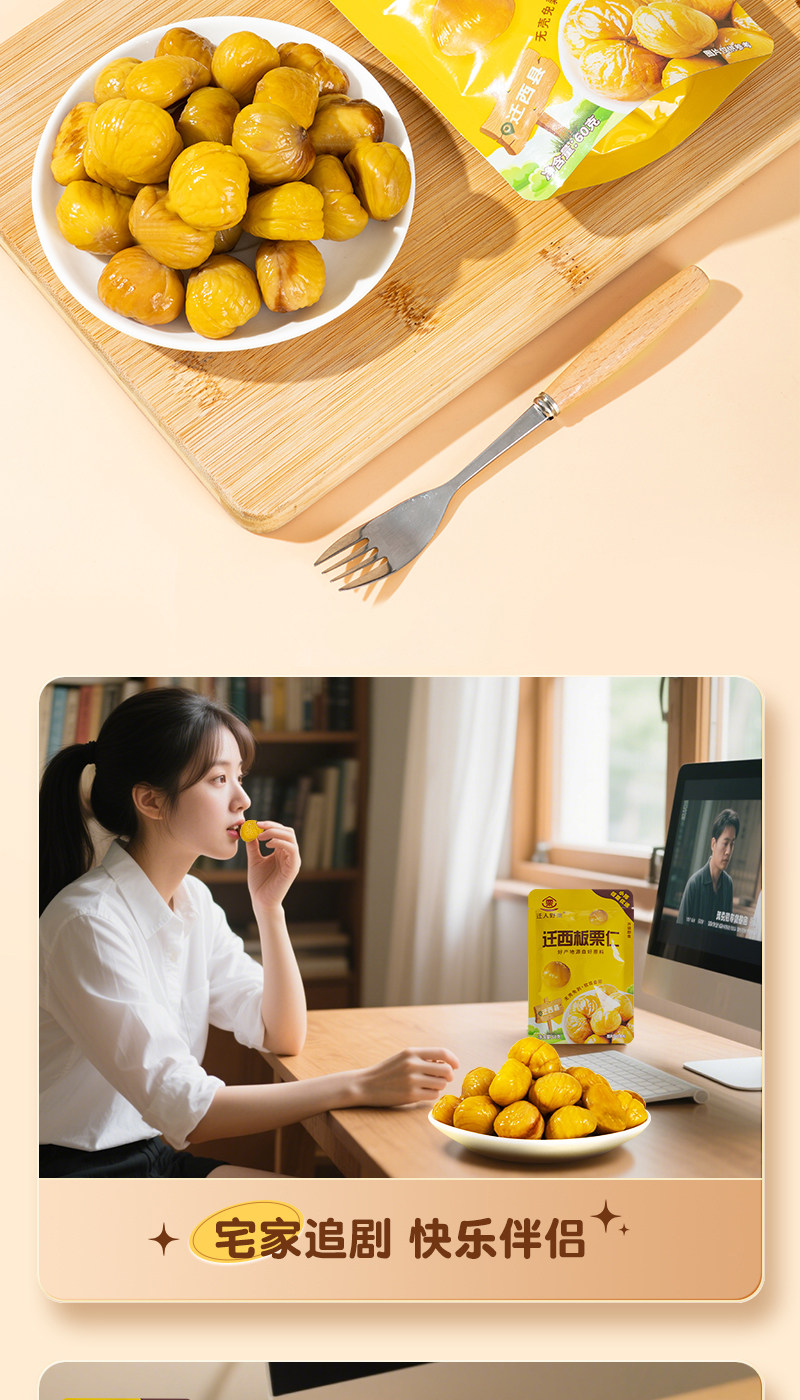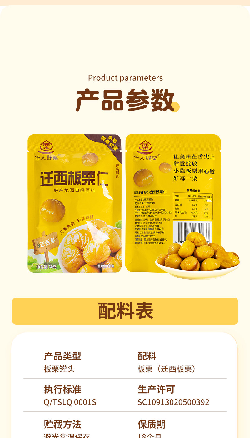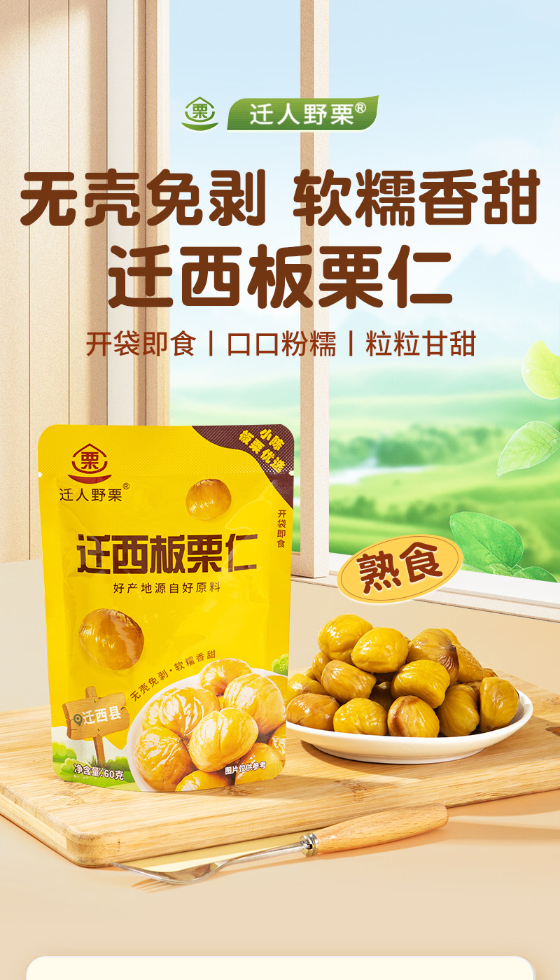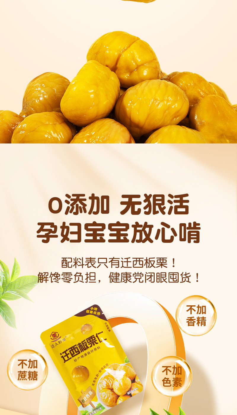 Gekochte Qianxi-Kastanienkerne, verzehrfertige kleine Packung, Öl-Kastanienkerne, Deli-Kastanienkerne, ohne Zusatzstoffe, Edelkastanienkerne, Qianren Yeli