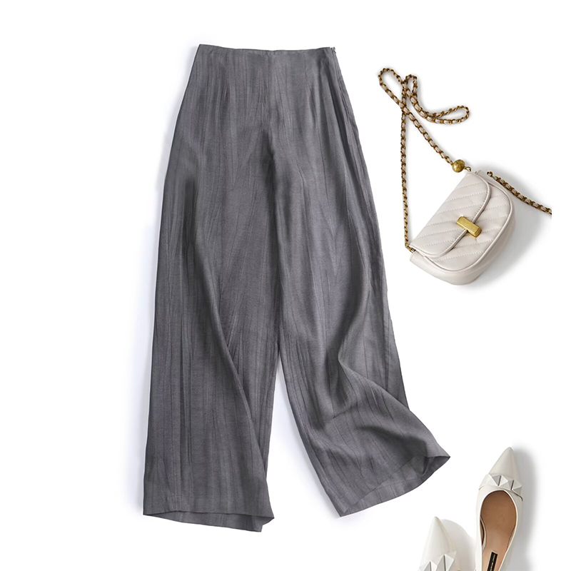 Md Women's Clothing 2025 Spring/Summer New Style Mature and Professional Ol Style Gray Wide-Leg Long Pants for Women 05021659818