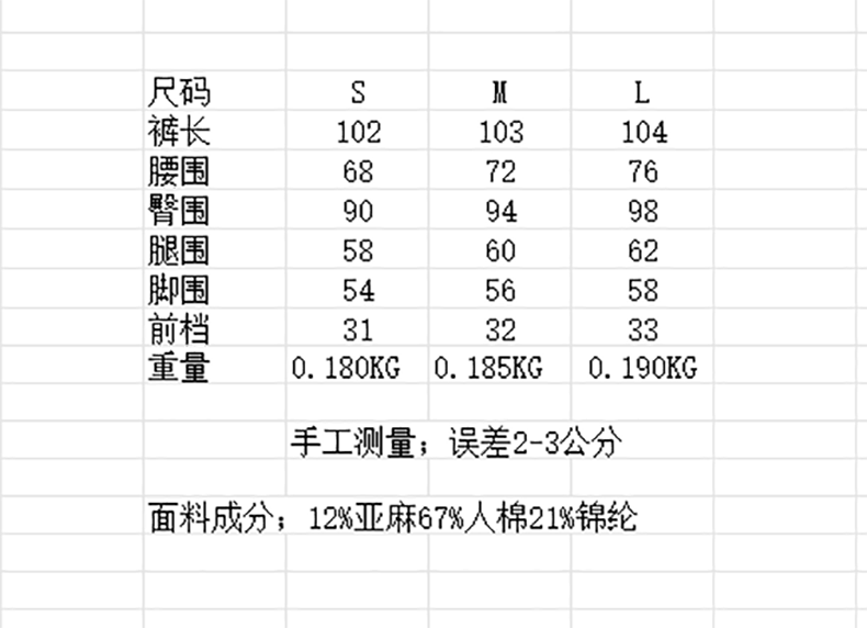 Outseam (cm) 99 cm 101.5 cm 104 cm 106.5 cm 109 cm