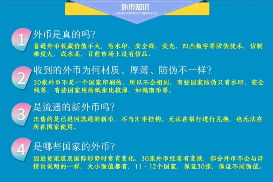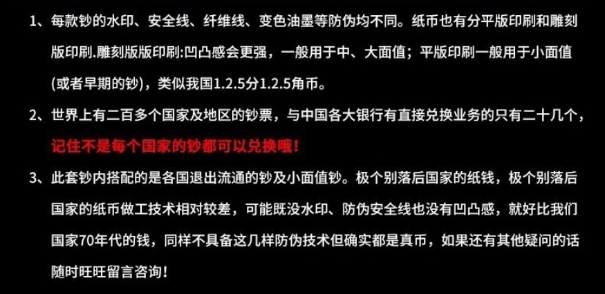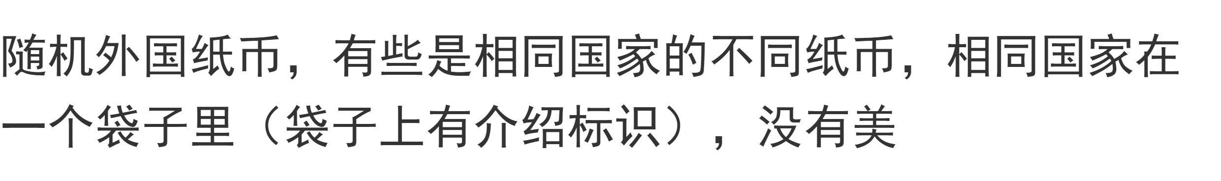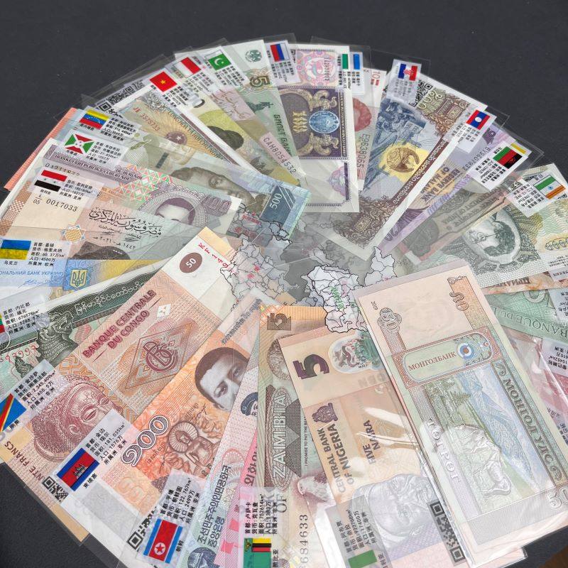 颜色分类 随机一张外国纸币,随机5张外国纸币,随机10张外国纸币,随机20张外国纸币,随机52张外国纸币,100张(50国)外国纸币,100个外国硬币福袋,100个硬币+100张纸币(50国)