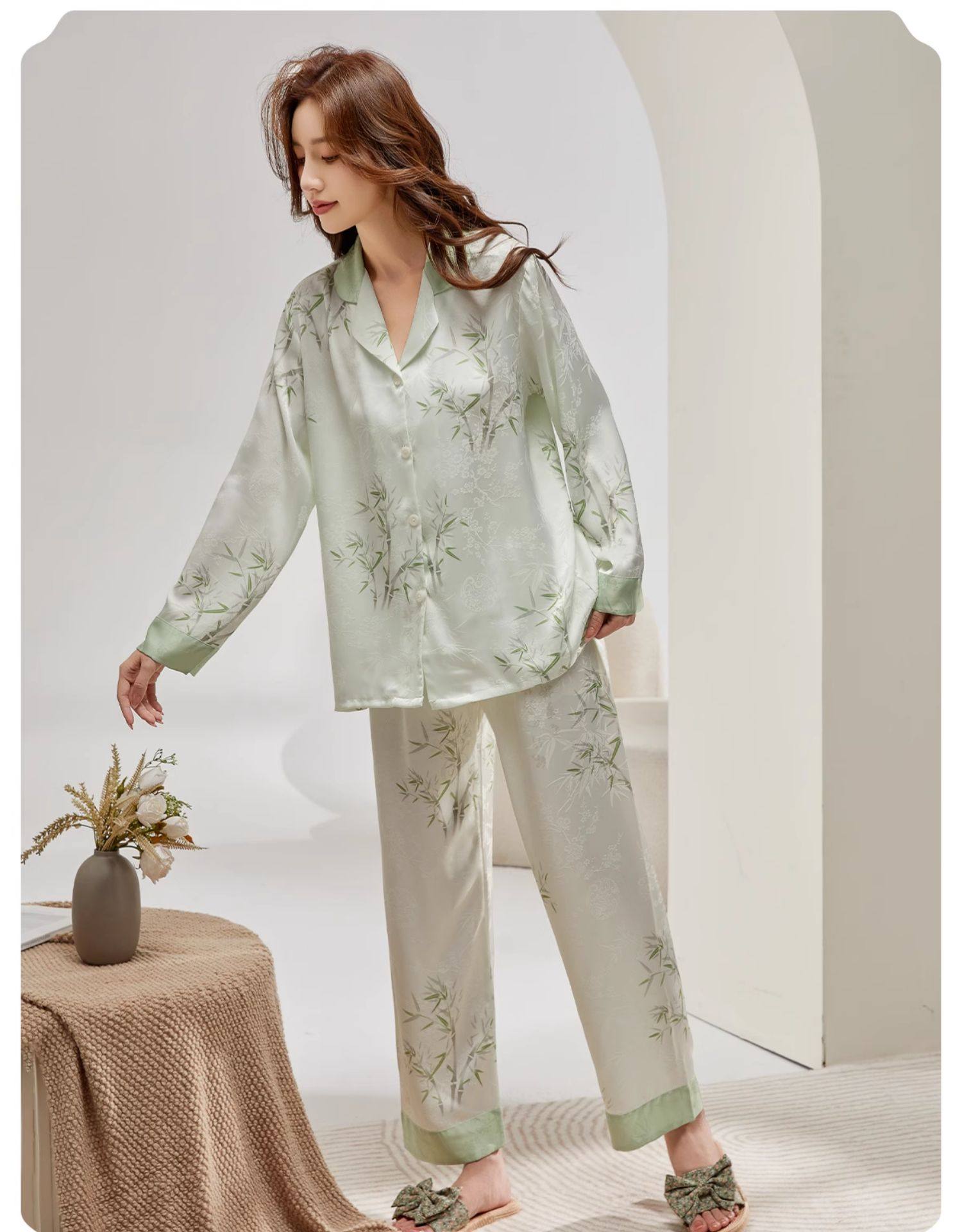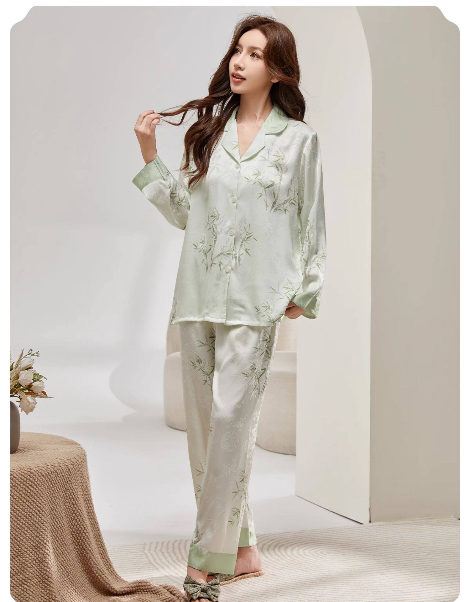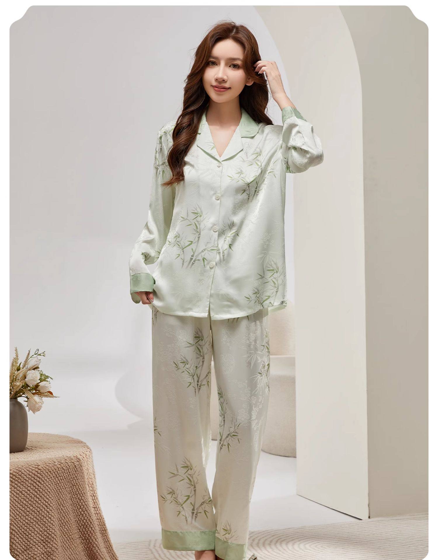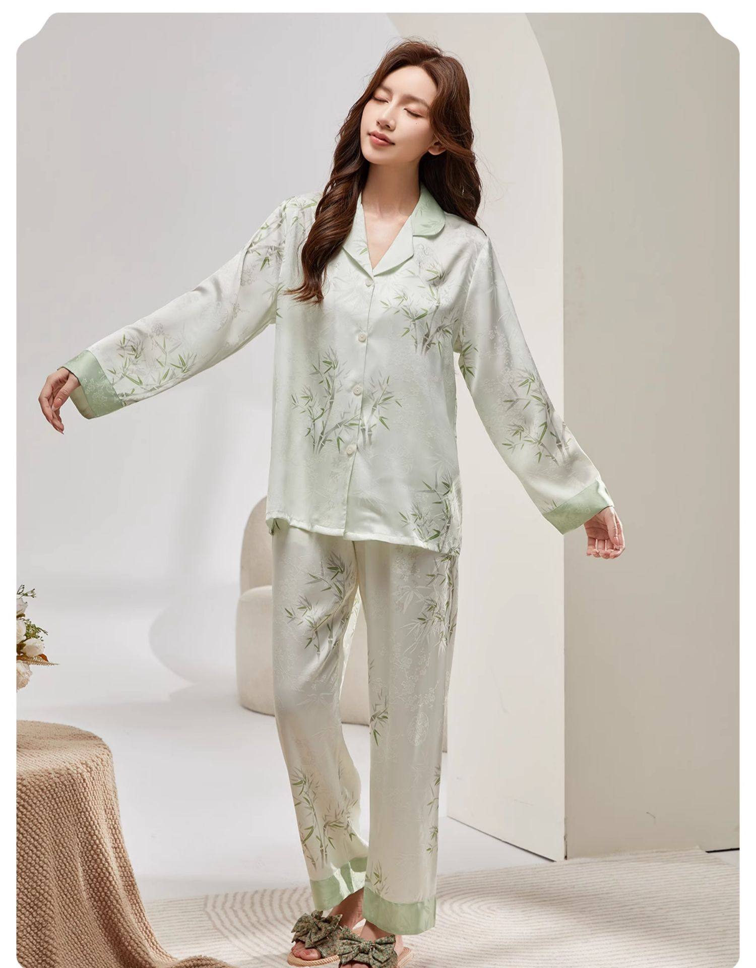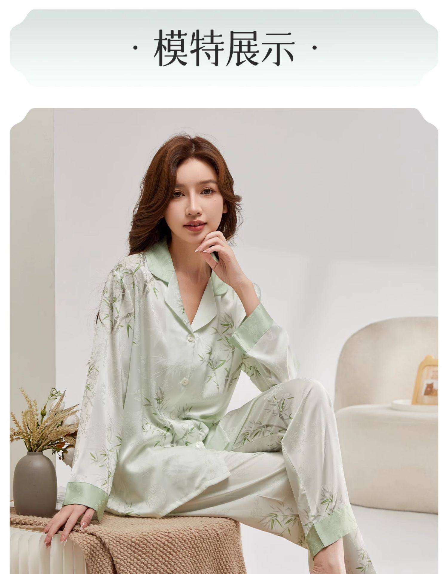 浪莎睡衣女款新中式冰丝绸春秋长袖薄款国风竹子女士家居服送妈妈