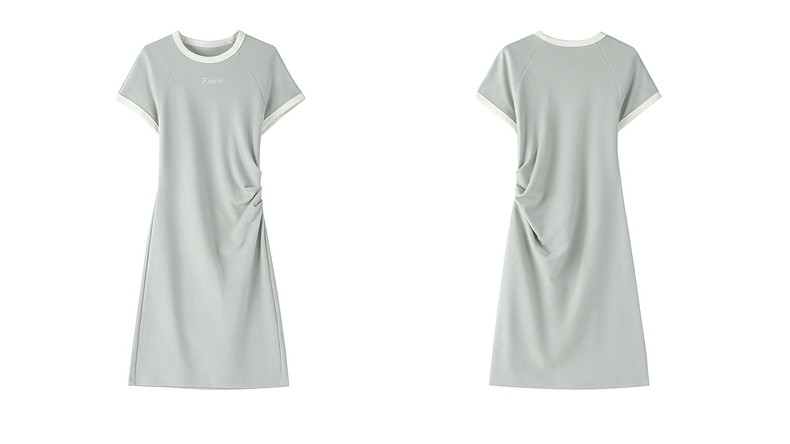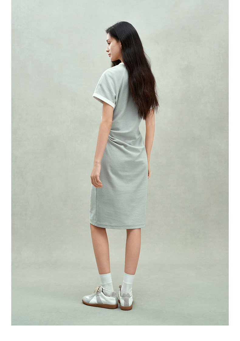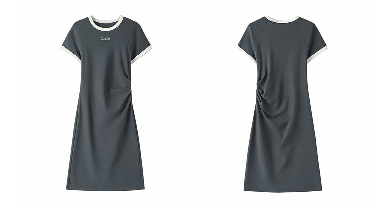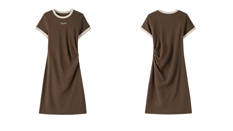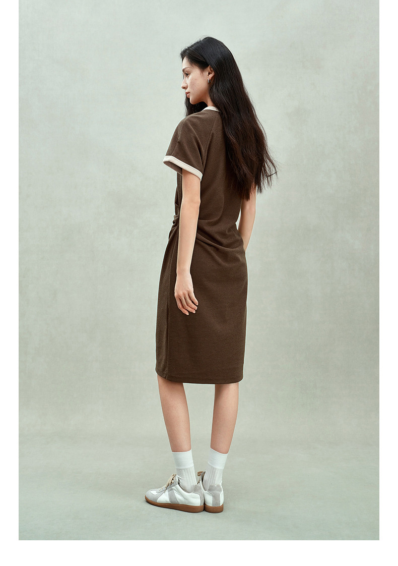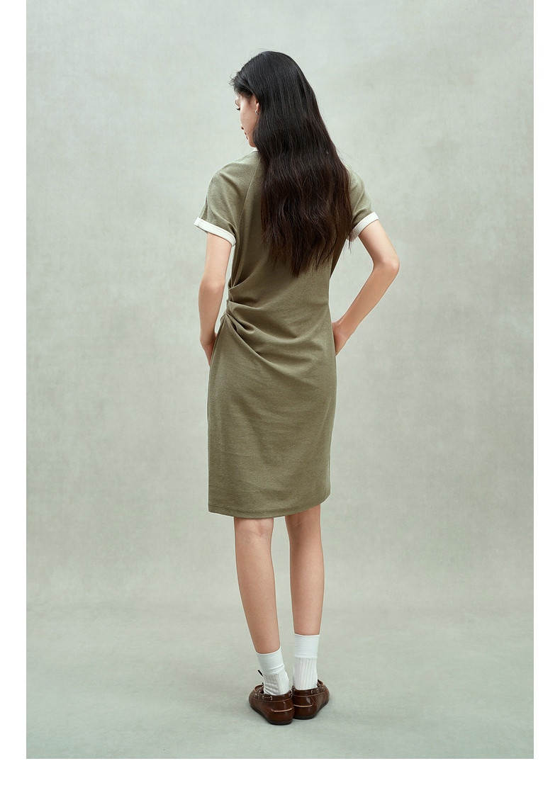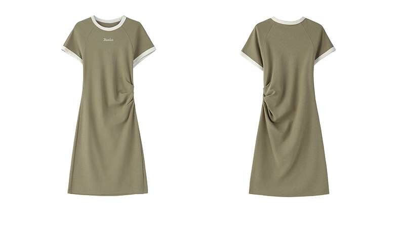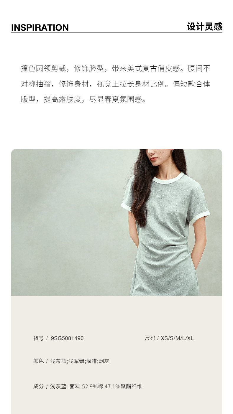 Ochirly oushili pleated rag-shoulder dress for women embroidery contrast color waist-hugging leisure 2025 spring new product