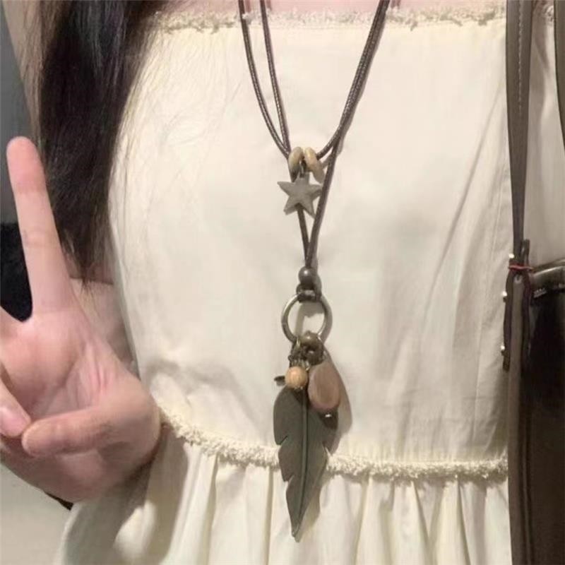 Bohemian Ethnic Style Necklace Women's Niche Design Necklace New Chinoiserie Retro Beaded Leaf Sweater Chain