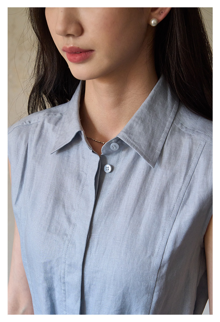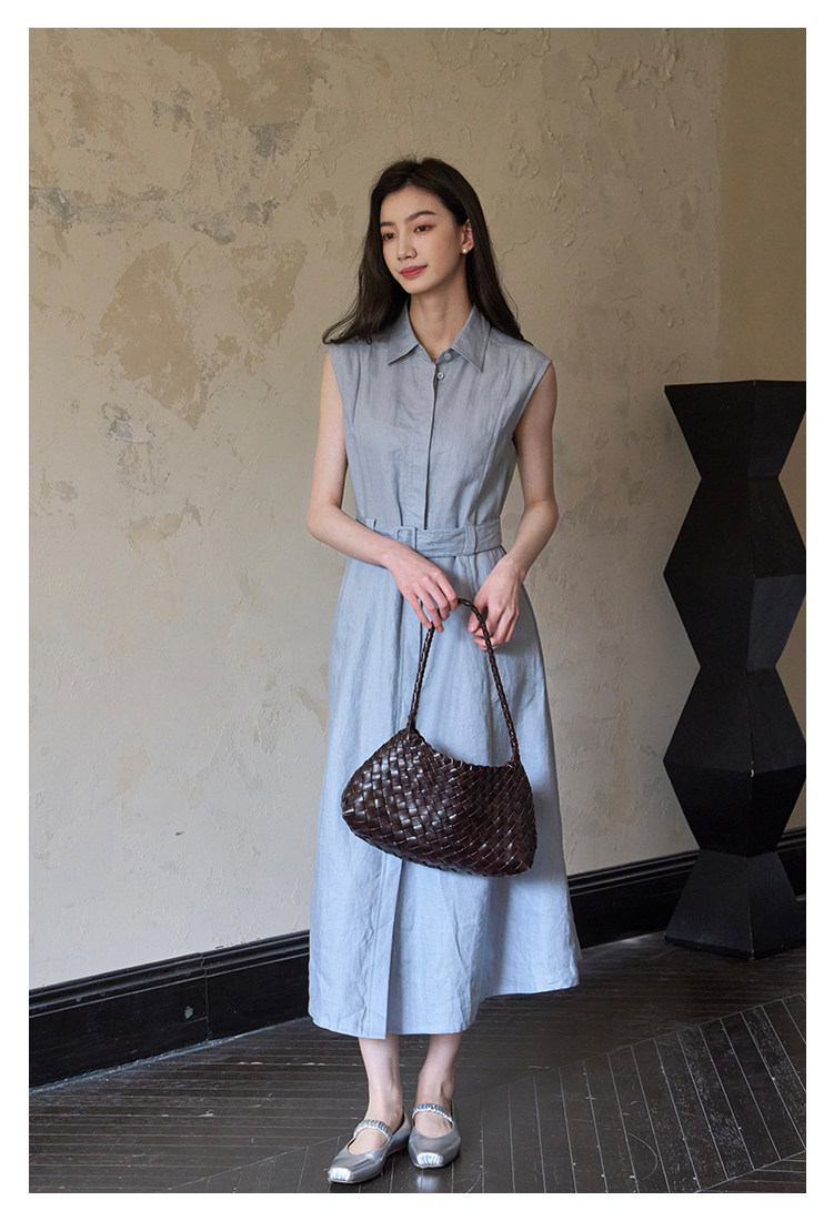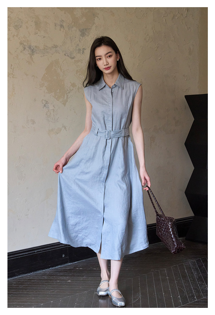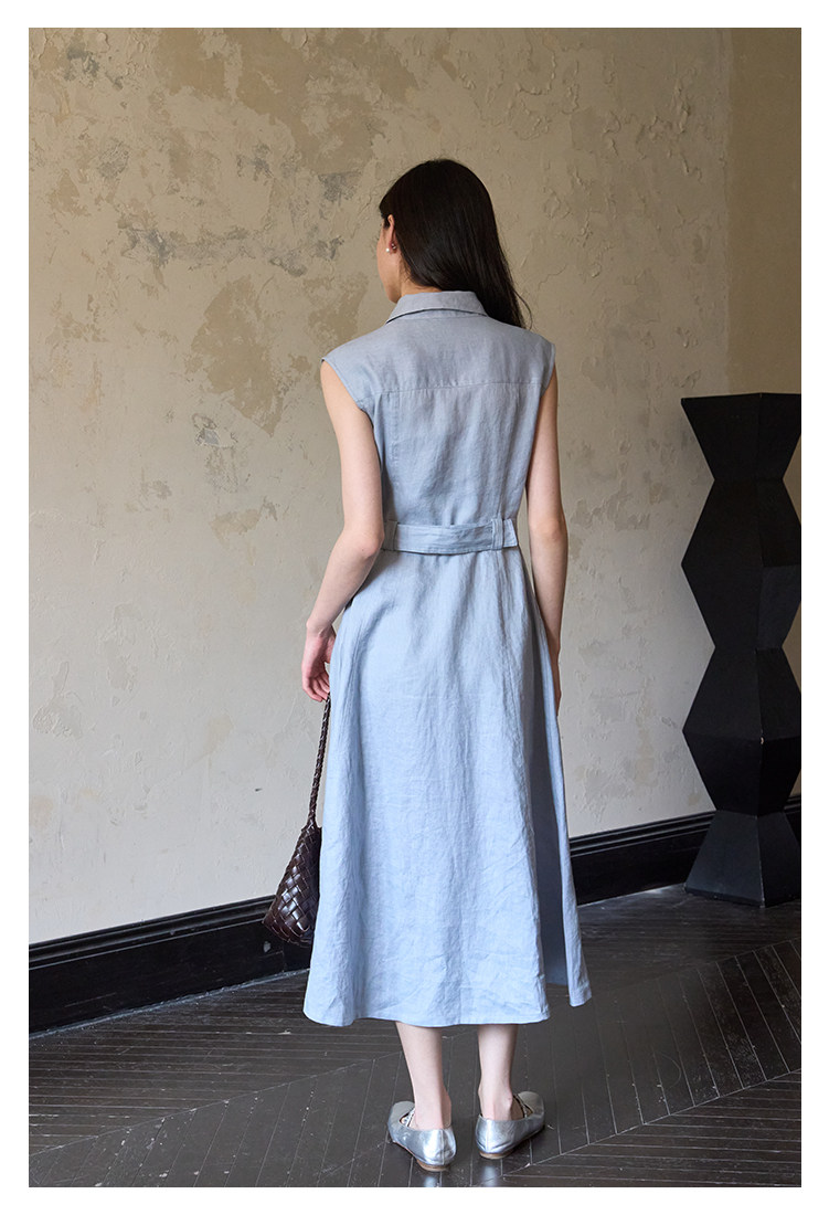 夏盐Summersalt 2025夏季新款100%亚麻蓝色简约舒适无袖连衣裙