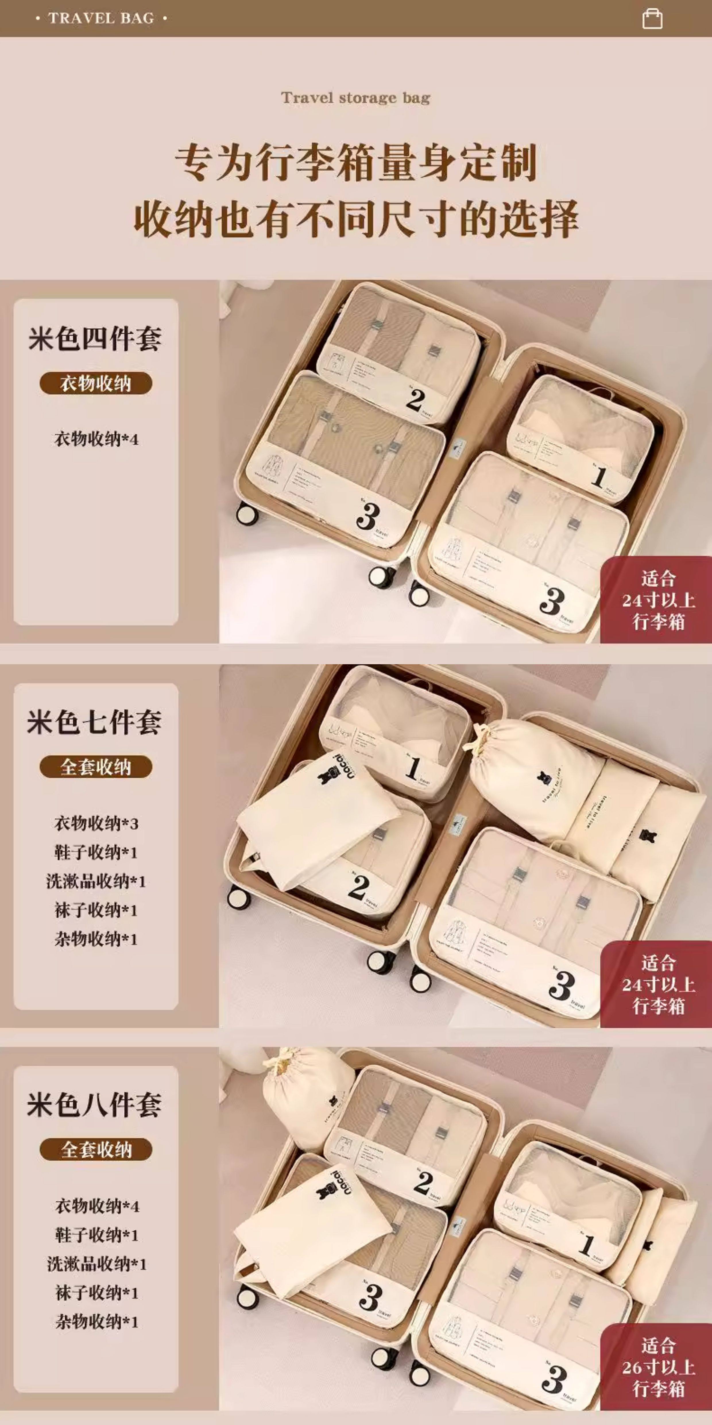 旅行神器必备短期旅游用品大全便携式衣物整理包八件套一次性外出