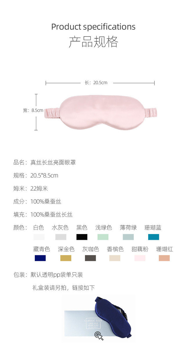 22Mumi S Typ schlafspezifische Seiden-Augenmaske Maulbeerseide doppelseitige Seiden-Augenmaske 8-lagiger gefüllter Seidenhersteller