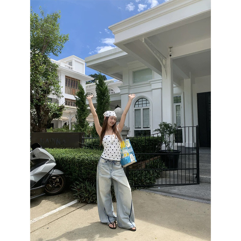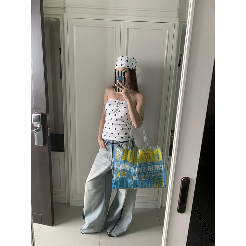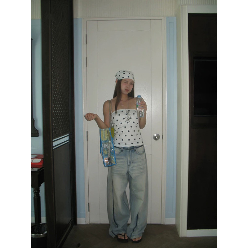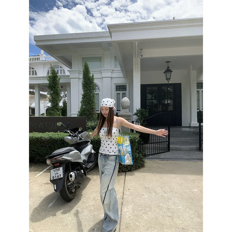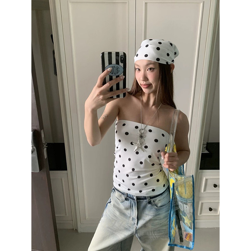 MosesQueen魔西女王白色波点抹胸吊带背心女夏季外穿内搭无袖上衣