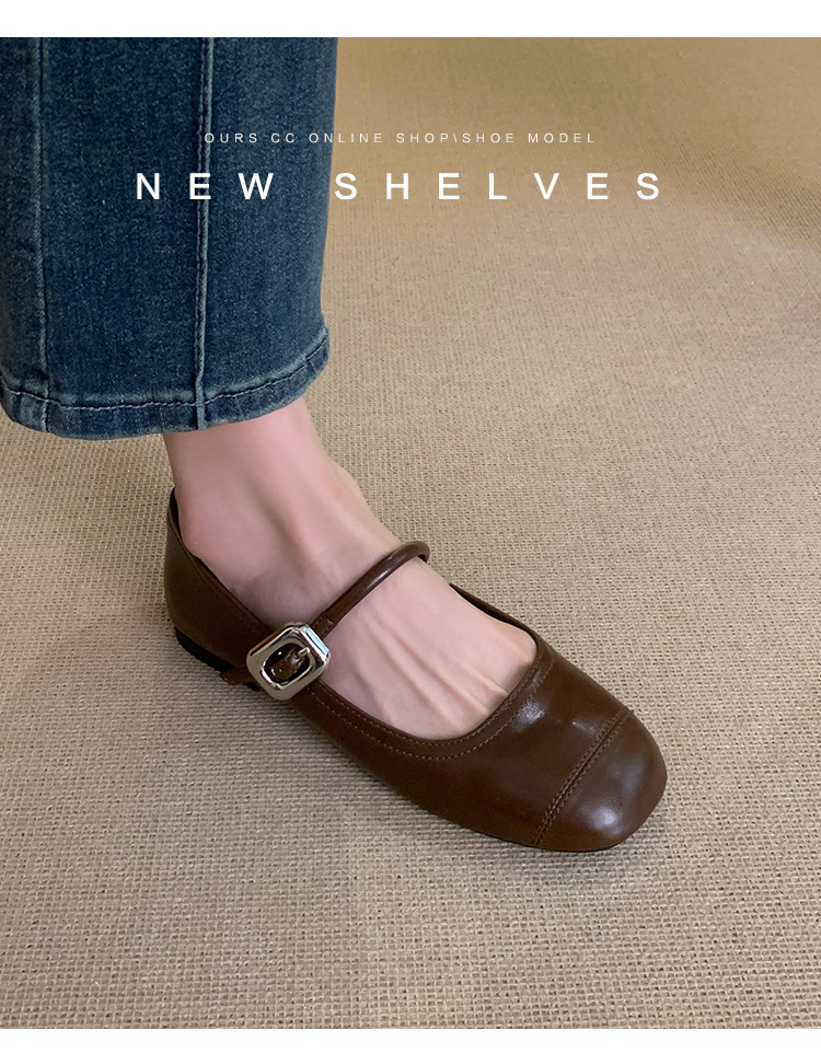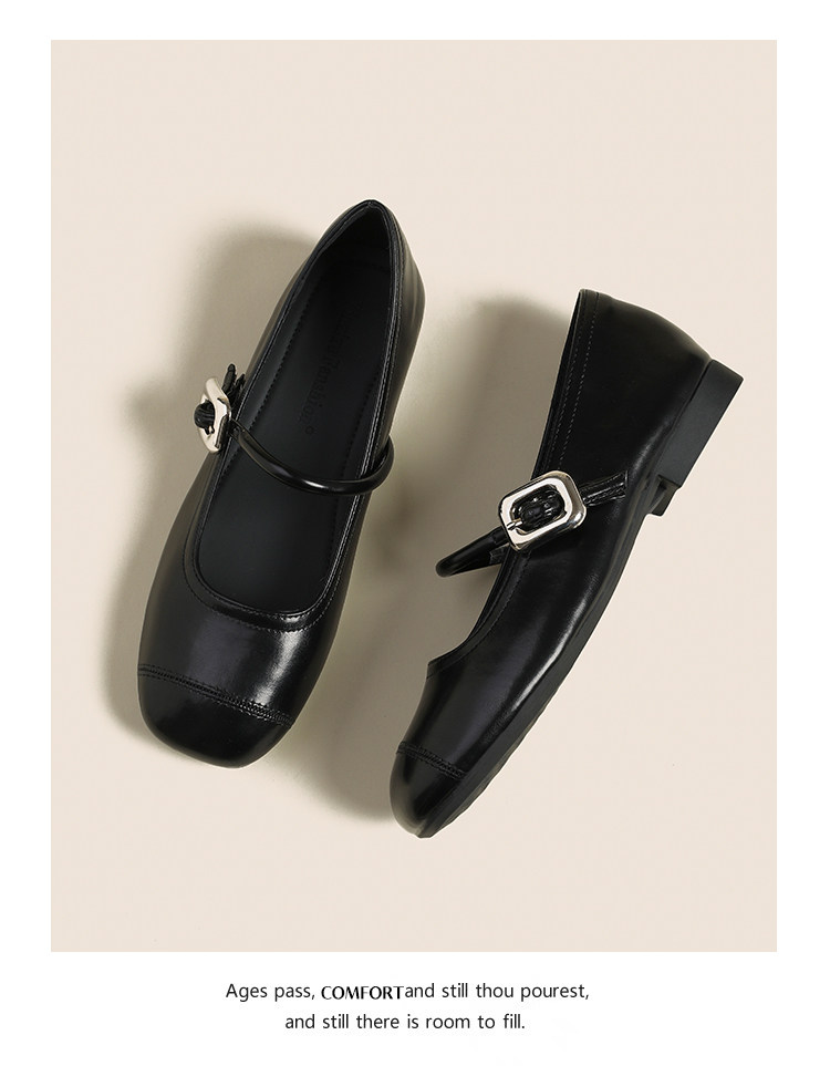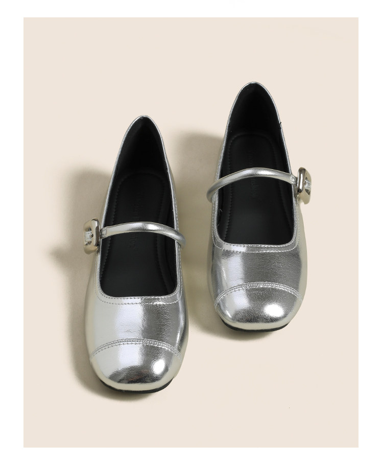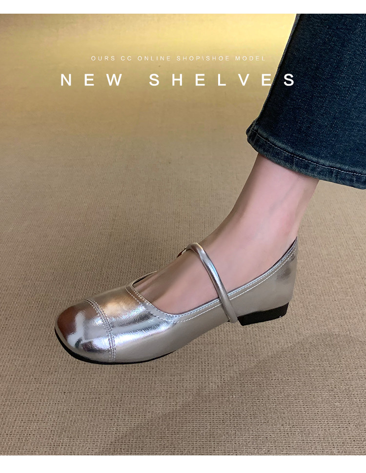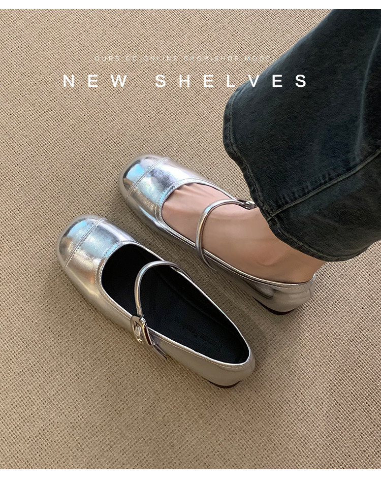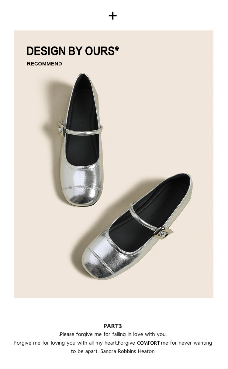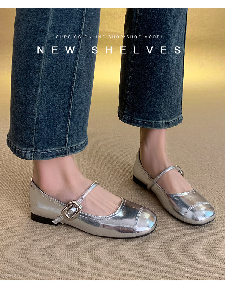 Sheepskin Edition ~ Silver Mary Jane Shoes Women's 2025 Summer New Leather Shoes Easiest for Match Shallow Mouth Flat Shoes with Skirt