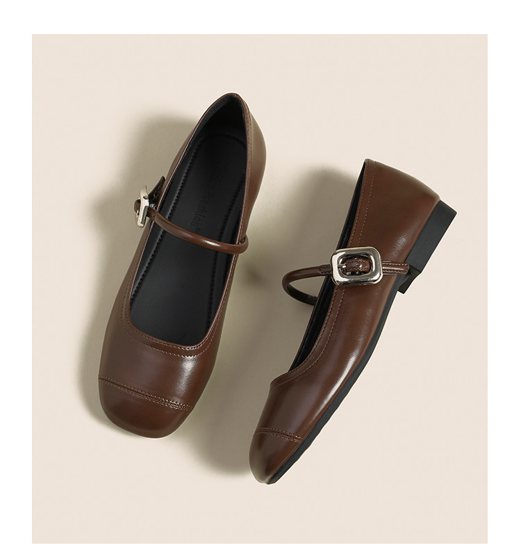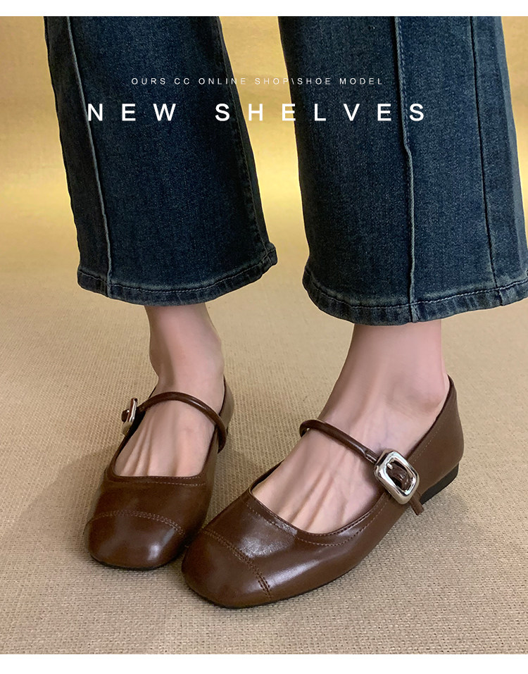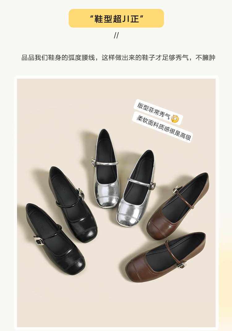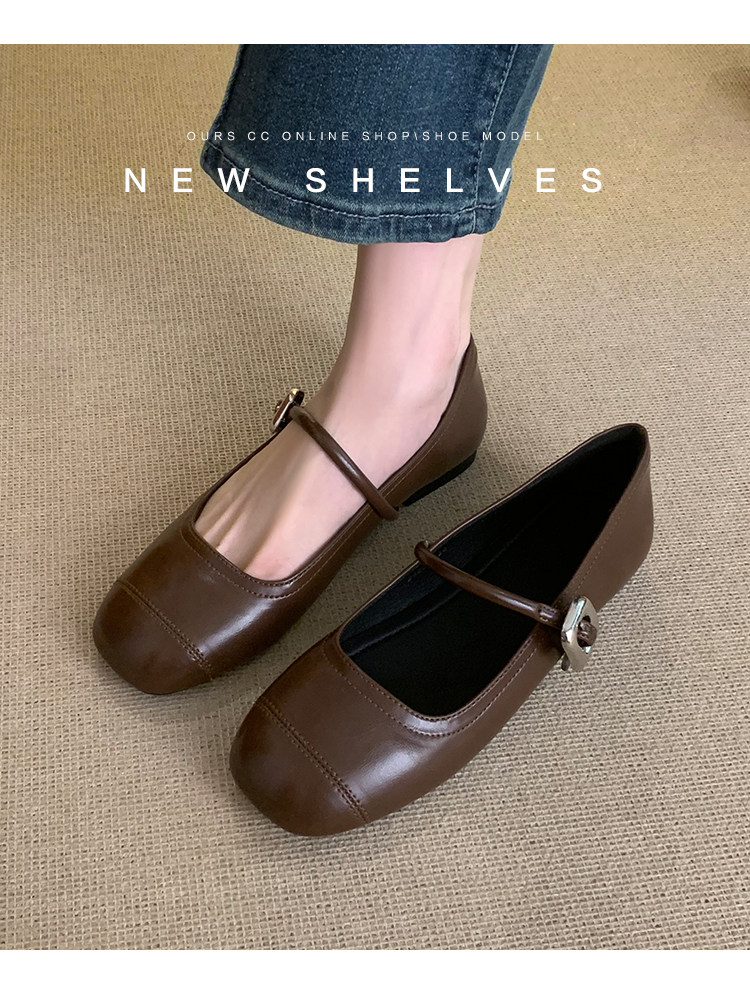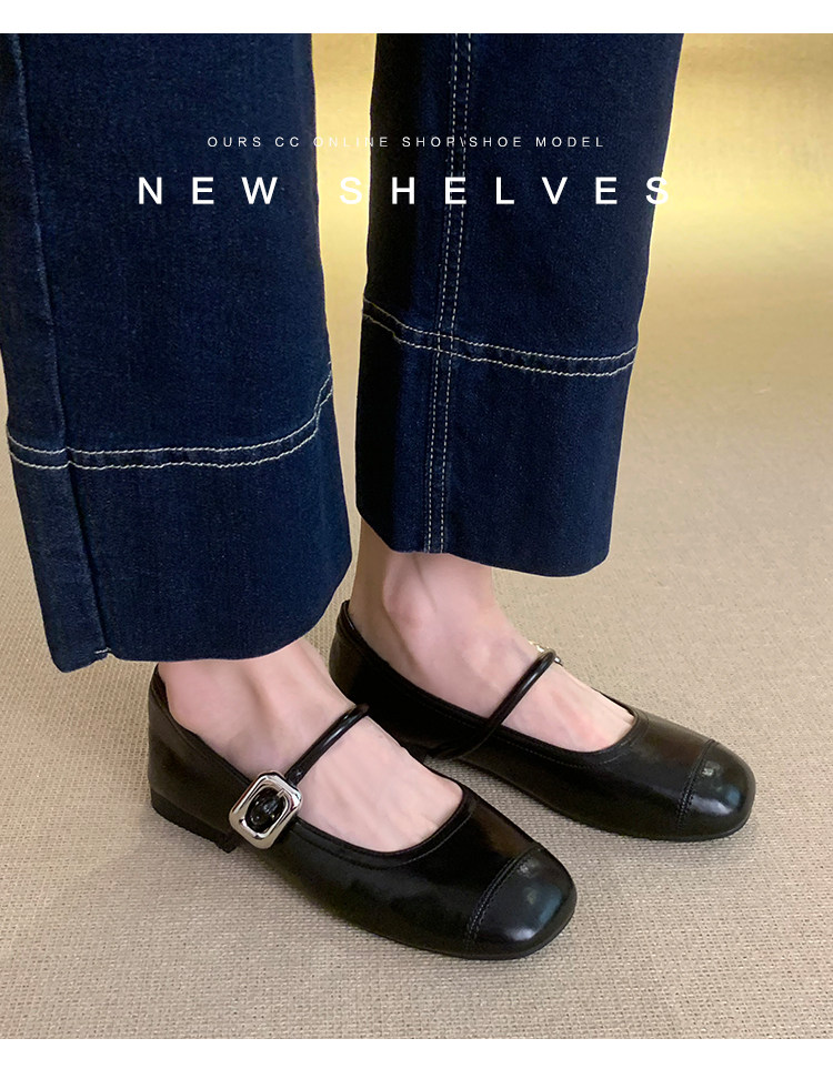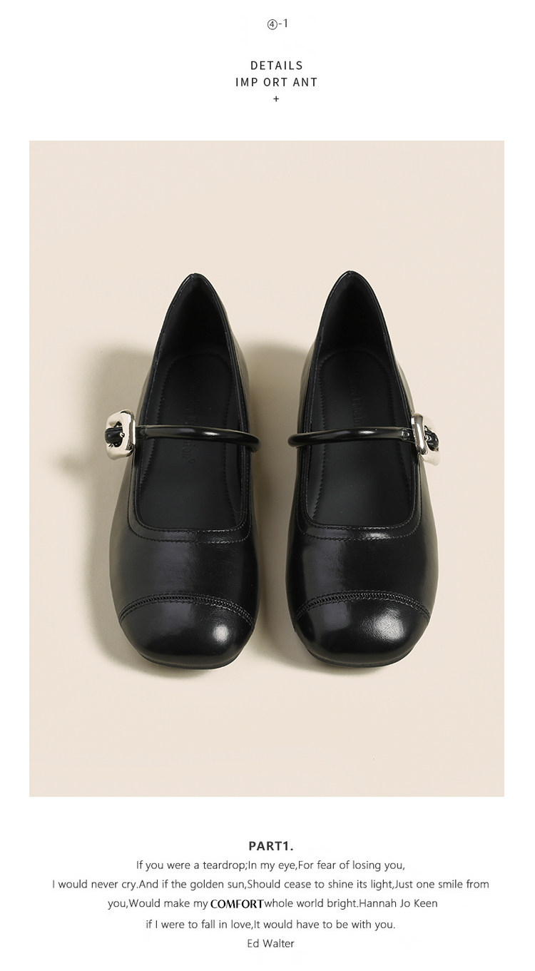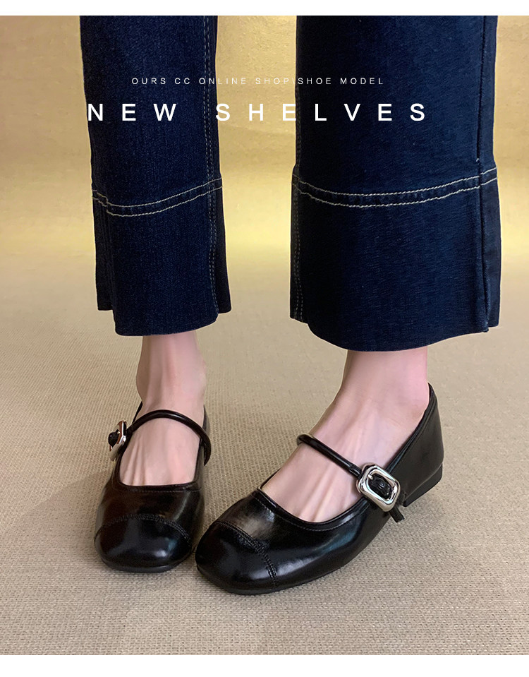 Sheepskin Edition ~ Silver Mary Jane Shoes Women's 2025 Summer New Leather Shoes Easiest for Match Shallow Mouth Flat Shoes with Skirt