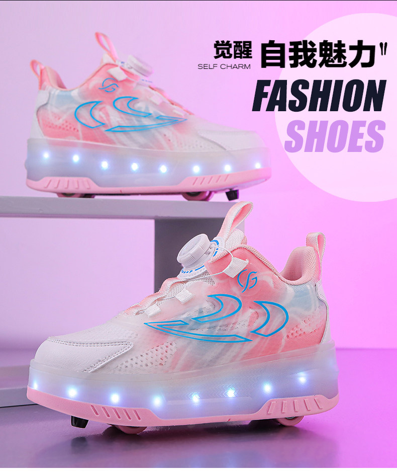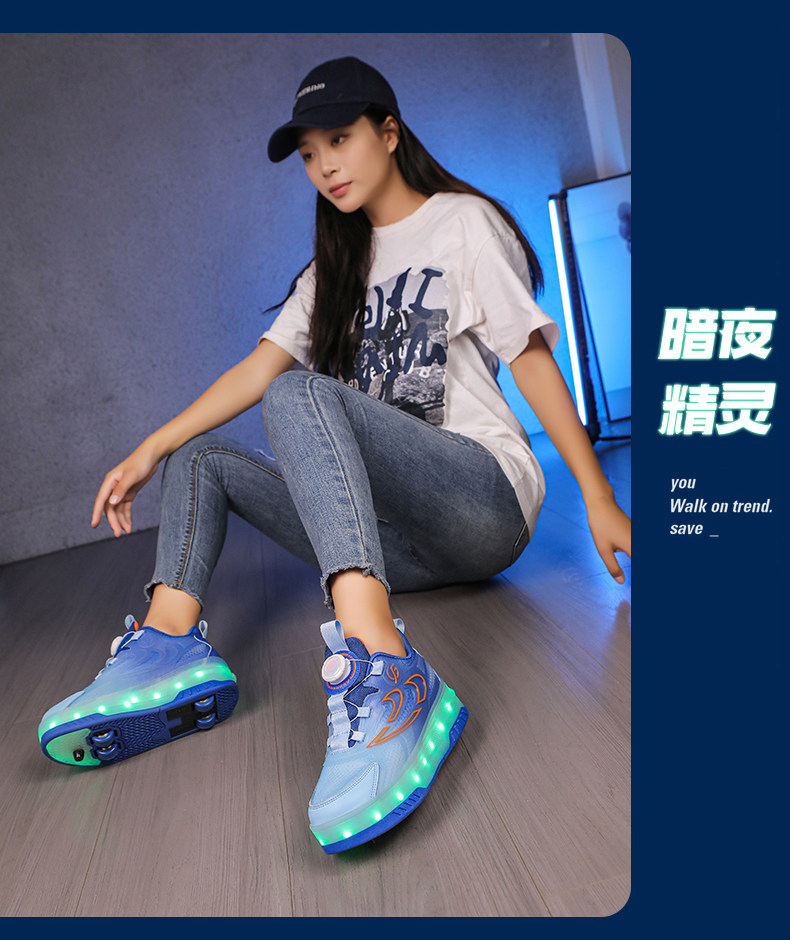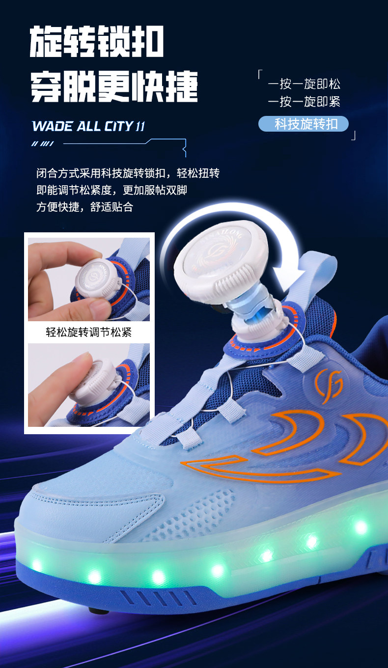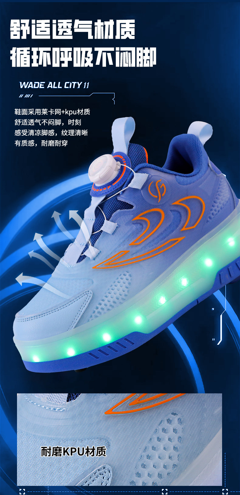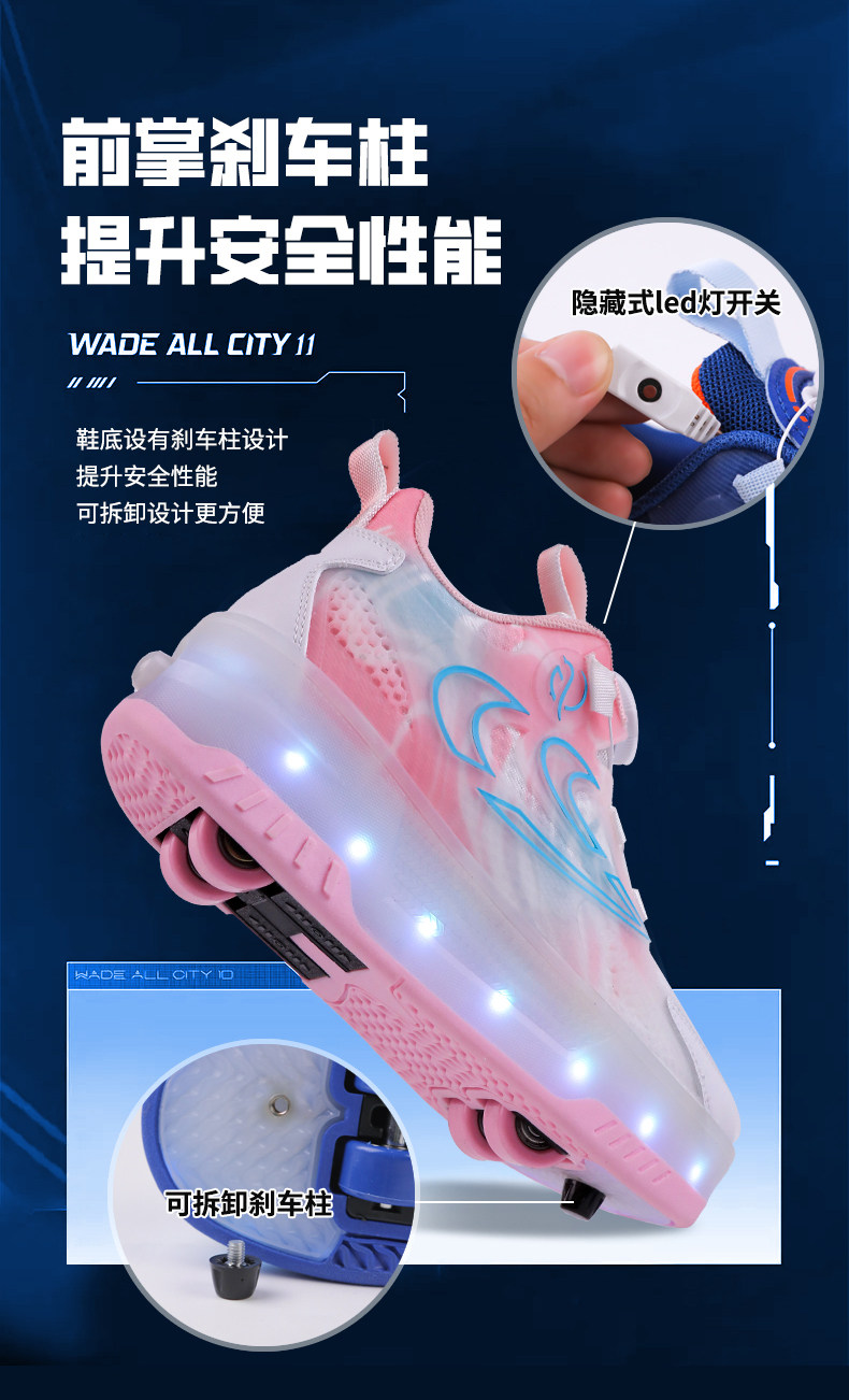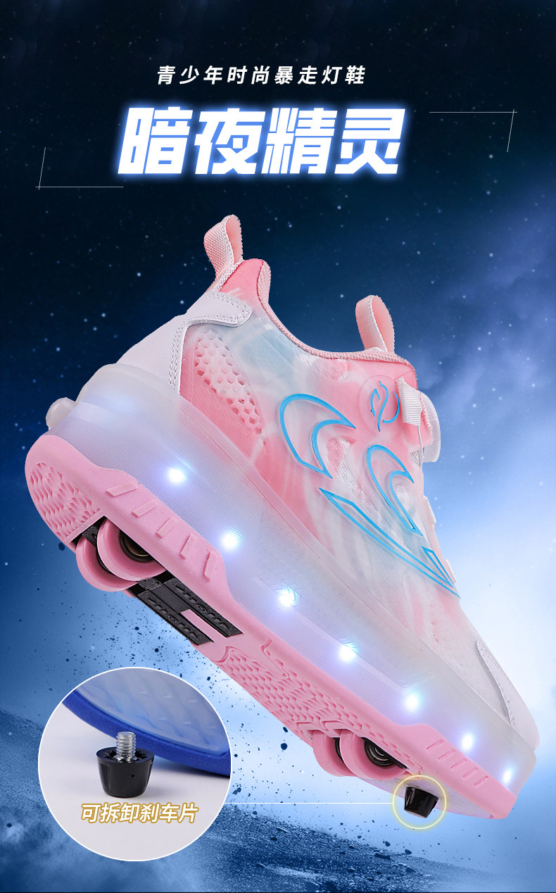 儿童暴走鞋女童夏季透气隐形四轮可收缩带刹车学生男童溜冰轮滑鞋