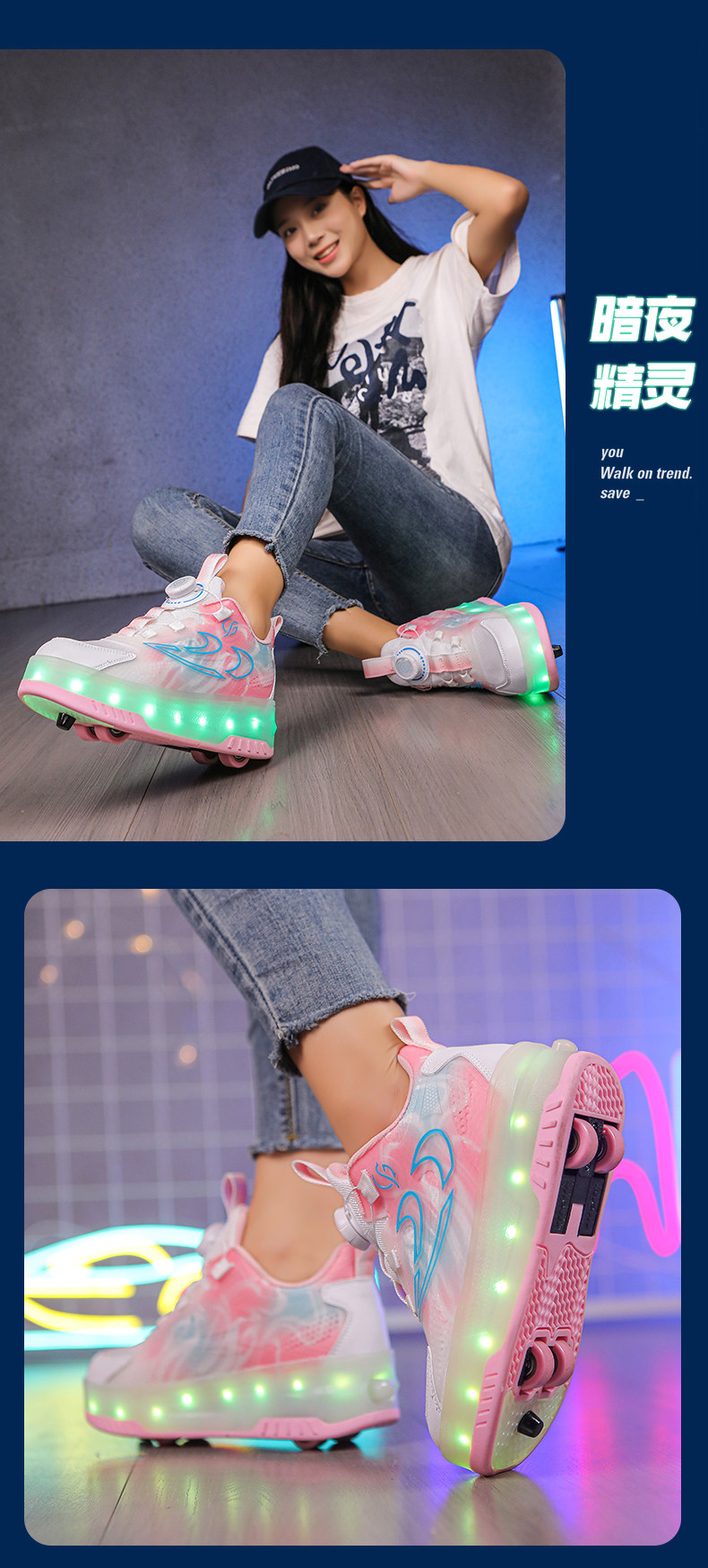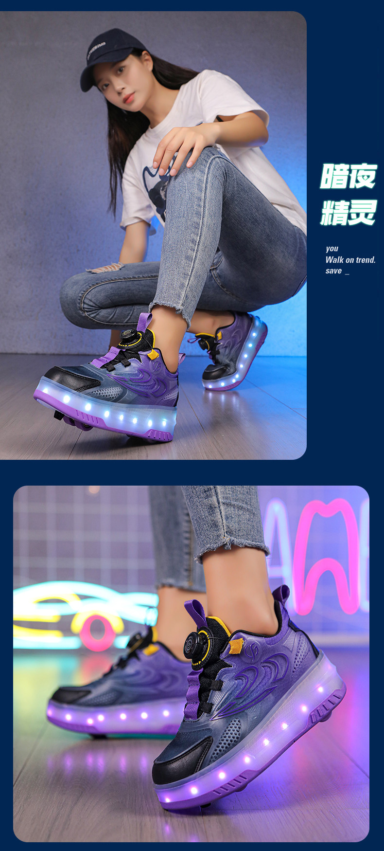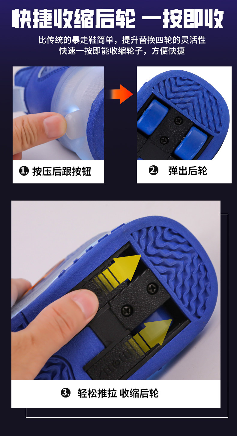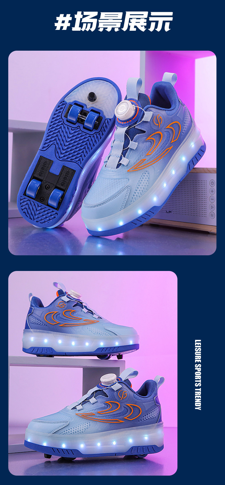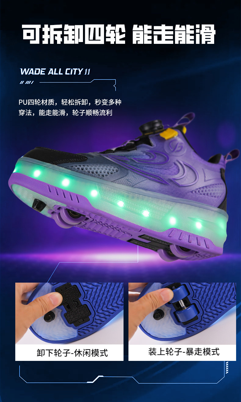 儿童暴走鞋女童夏季透气隐形四轮可收缩带刹车学生男童溜冰轮滑鞋