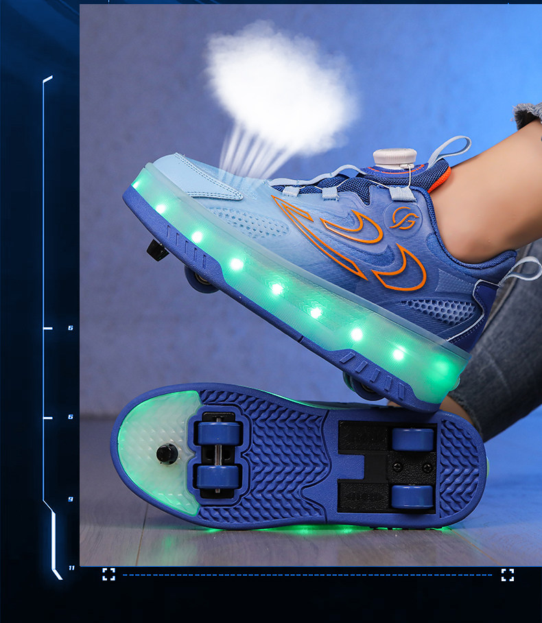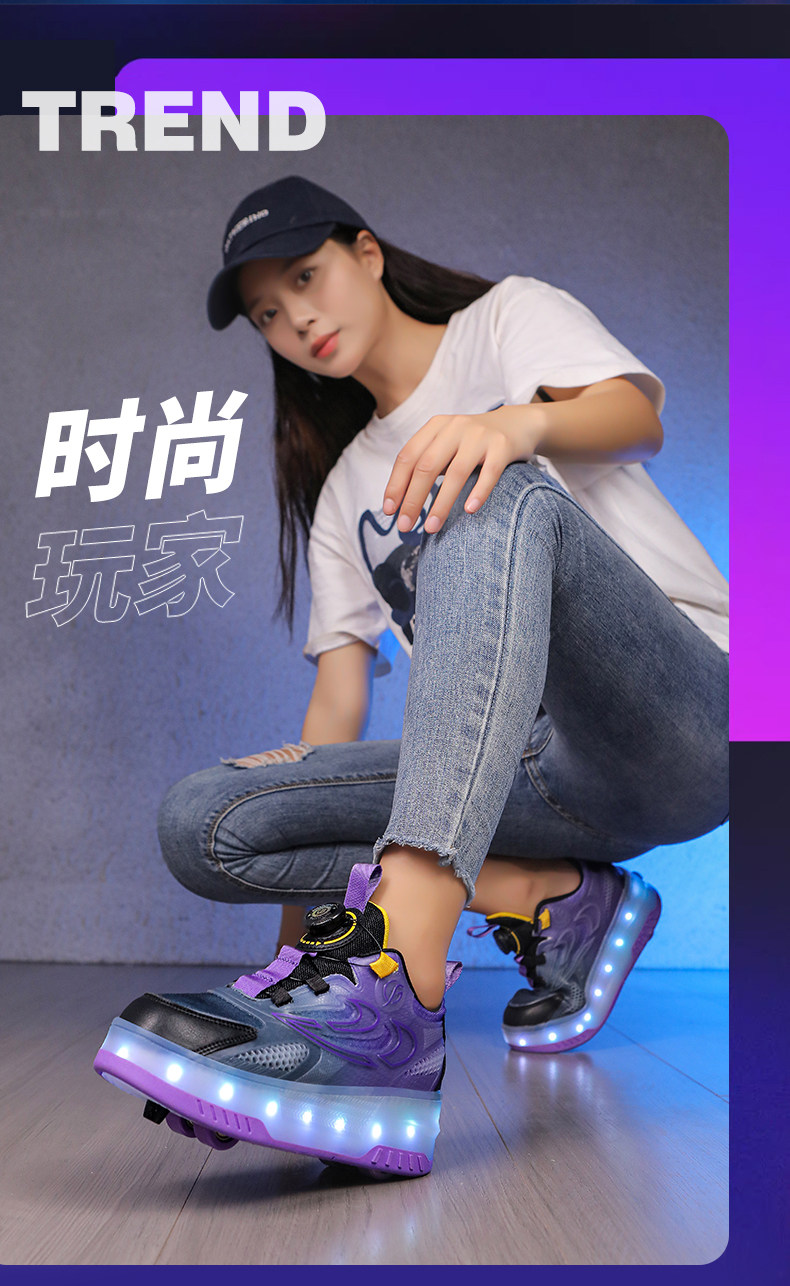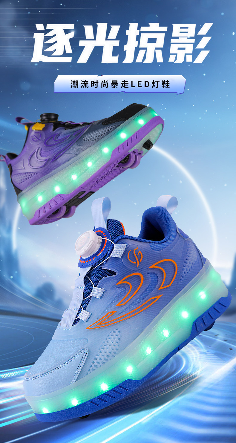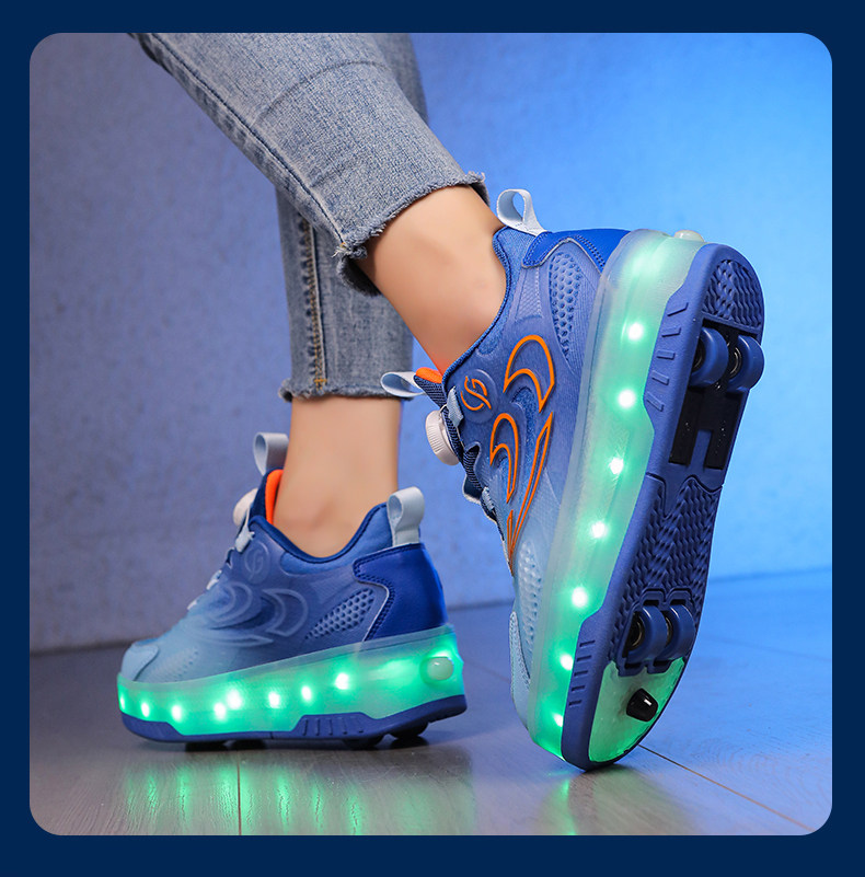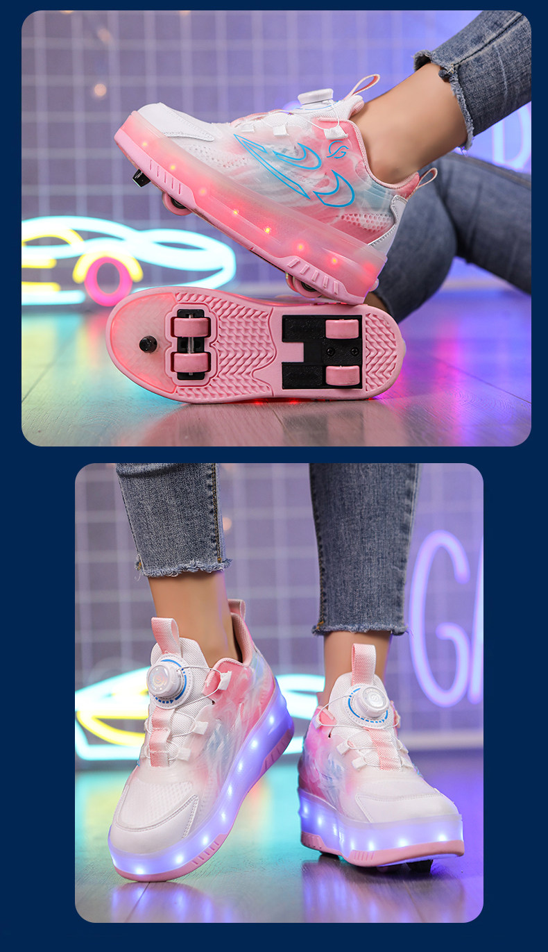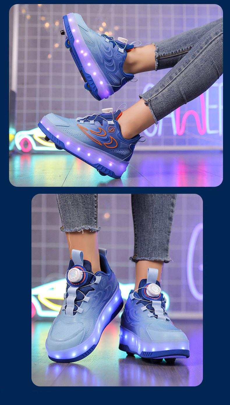 儿童暴走鞋女童夏季透气隐形四轮可收缩带刹车学生男童溜冰轮滑鞋