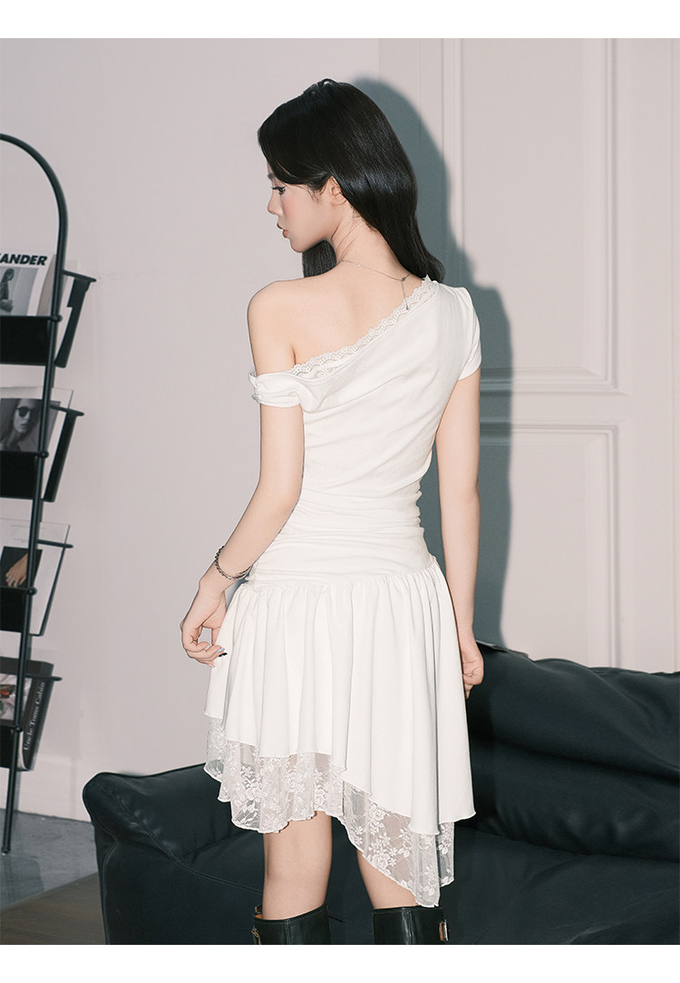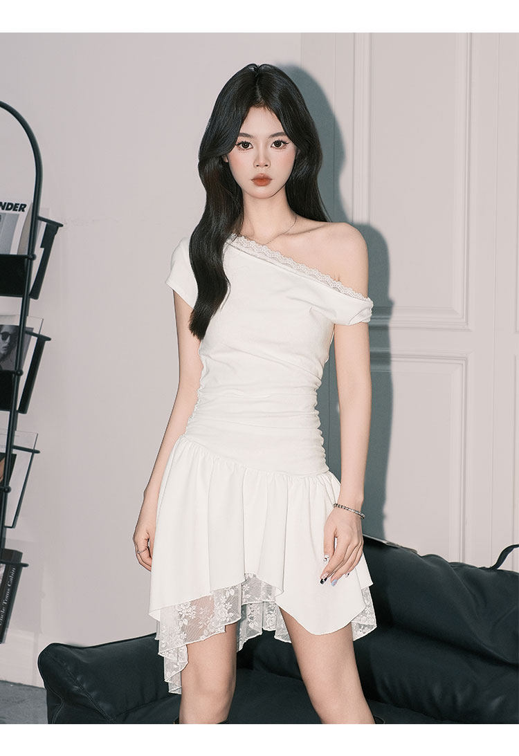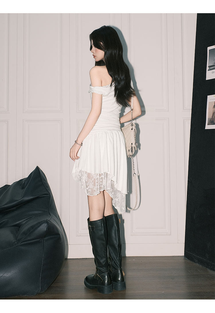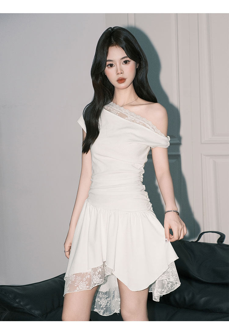 Forever21 Beautiful Pure Desire-vestido de encaje con hombros descubiertos para mujer, falda corta asimétrica de cintura blanca francesa, corte en A